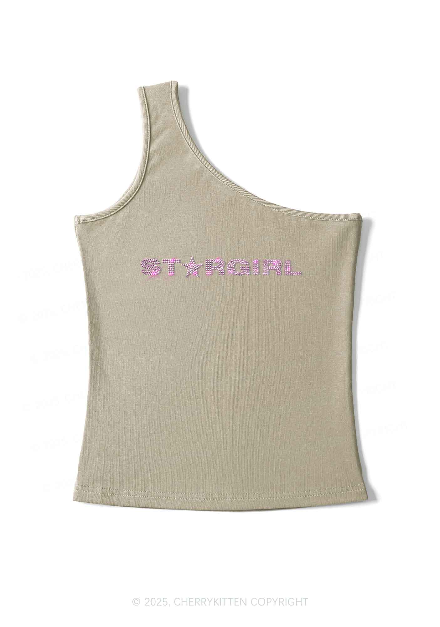 Rhinestone Red Stargirl Y2K One Shoulder Tank Top Cherrykitten