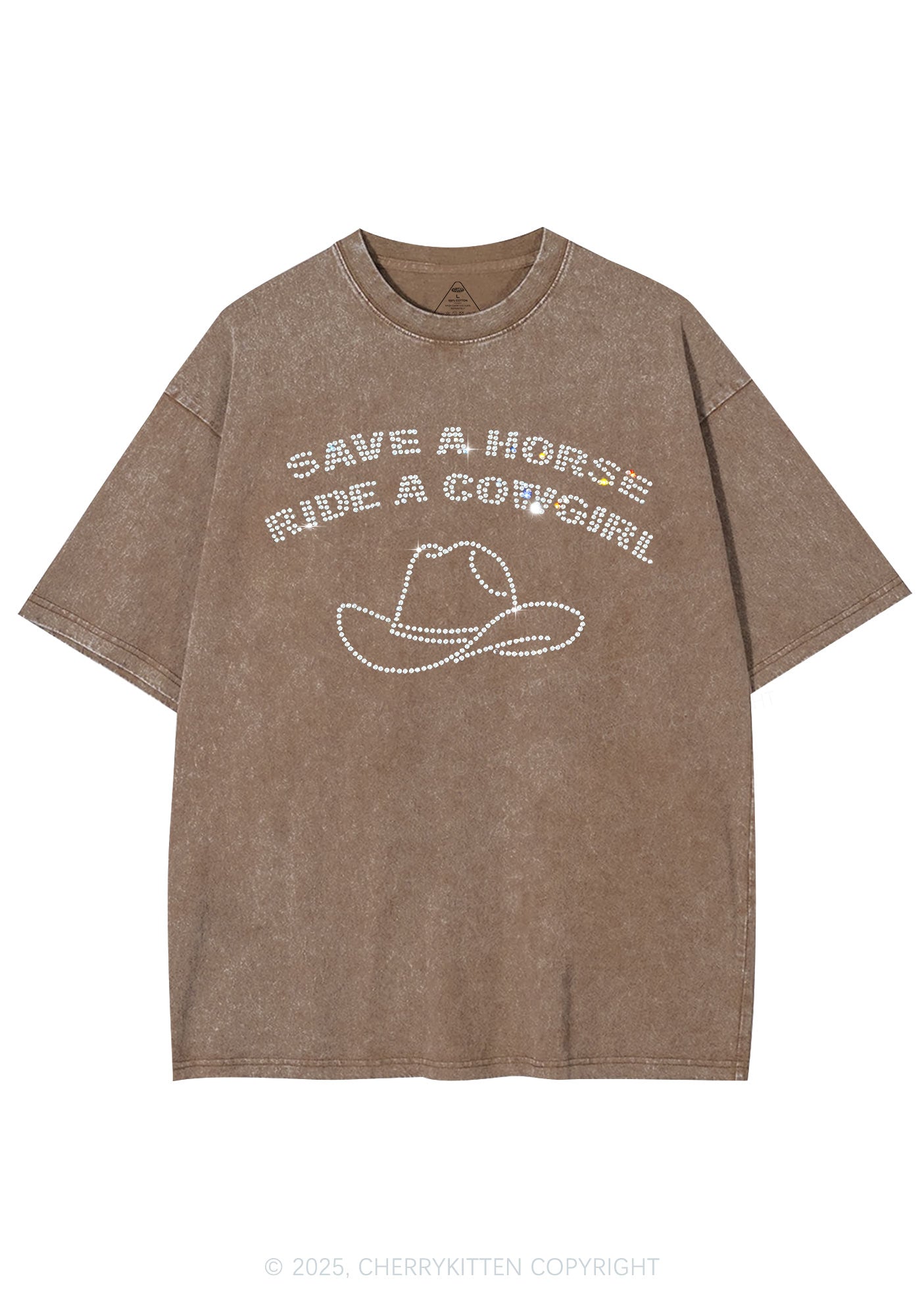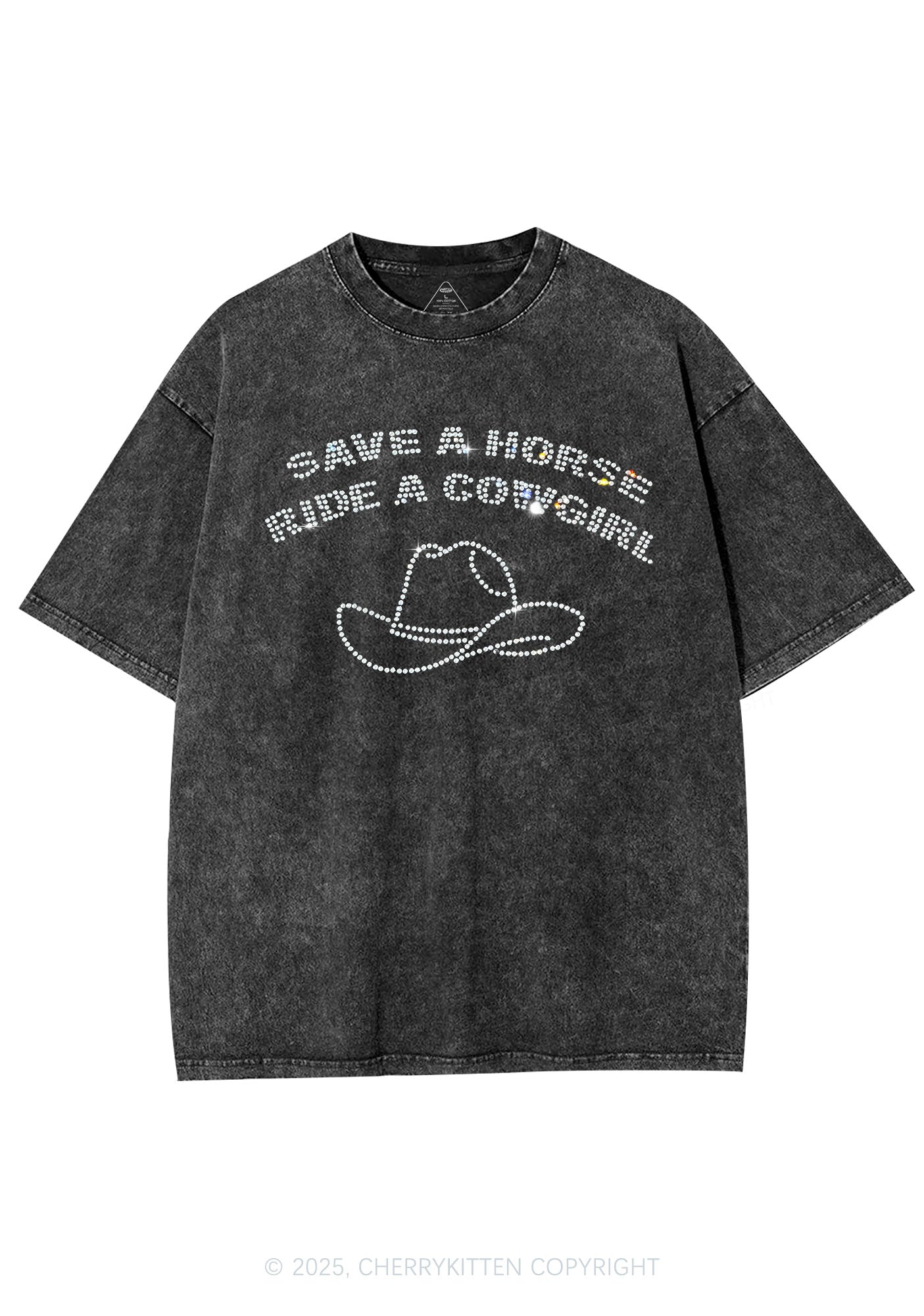 Rhinestone Save Horse Ride Cowgirl Y2K Shirts Washed Tee Cherrykitten