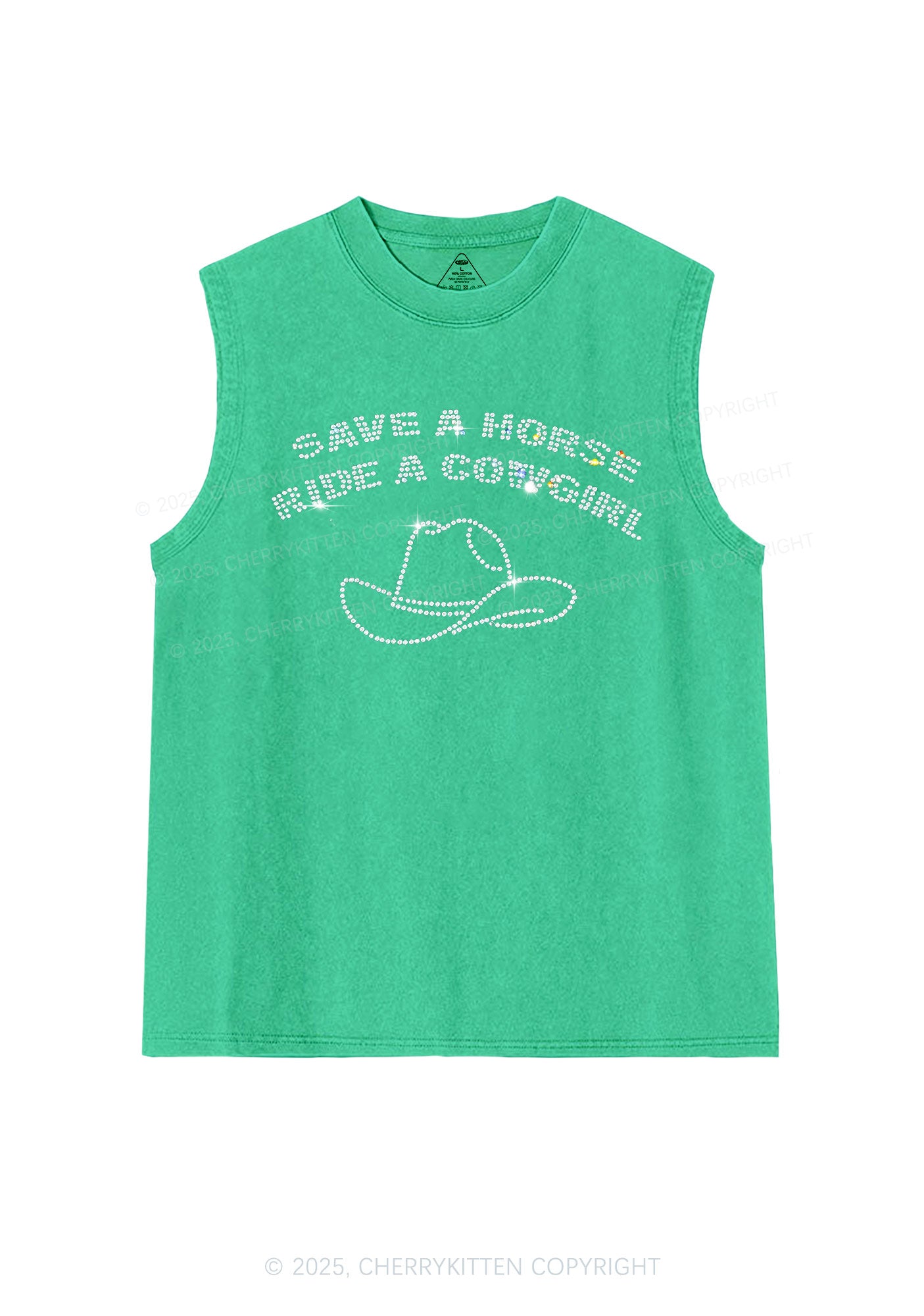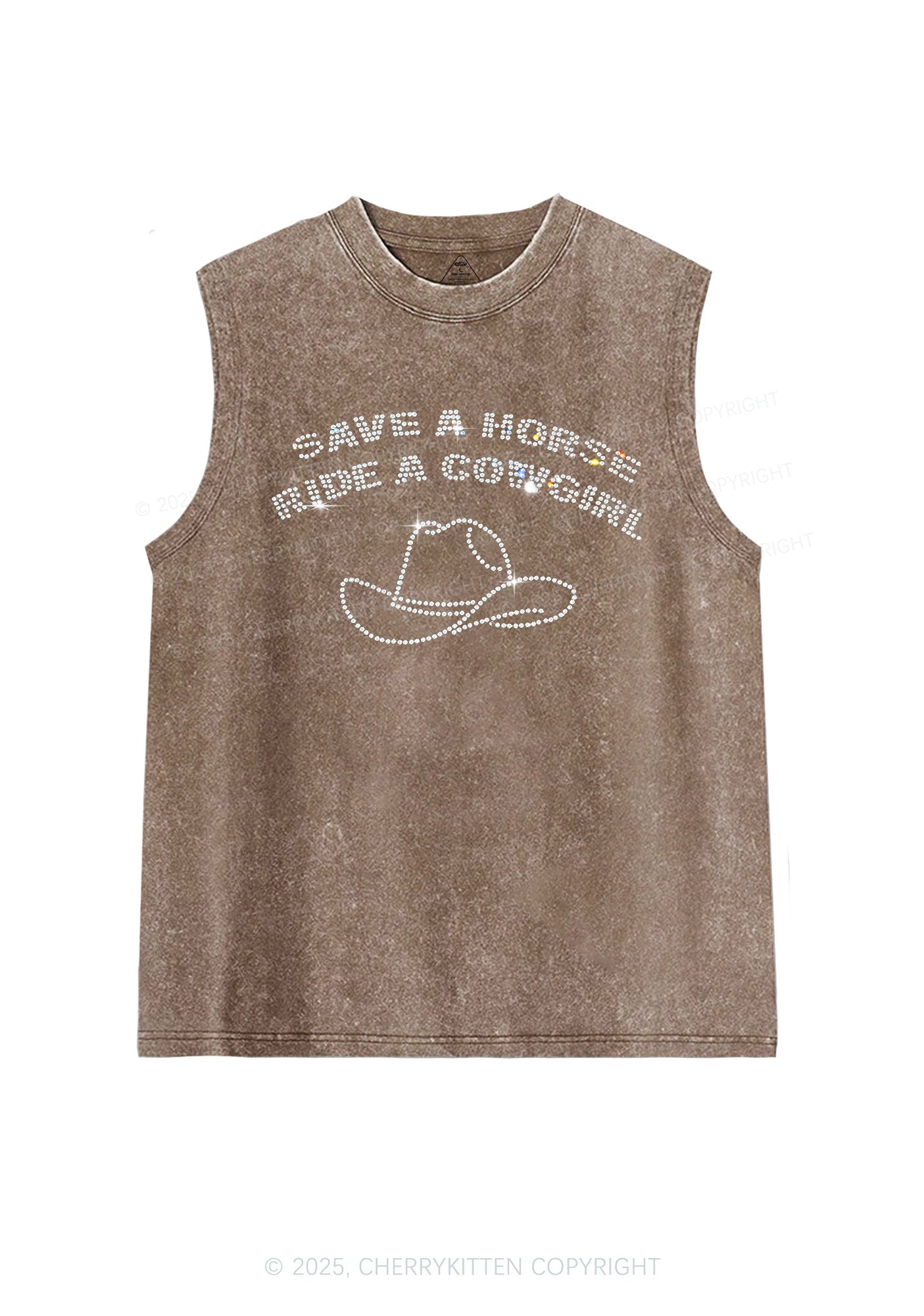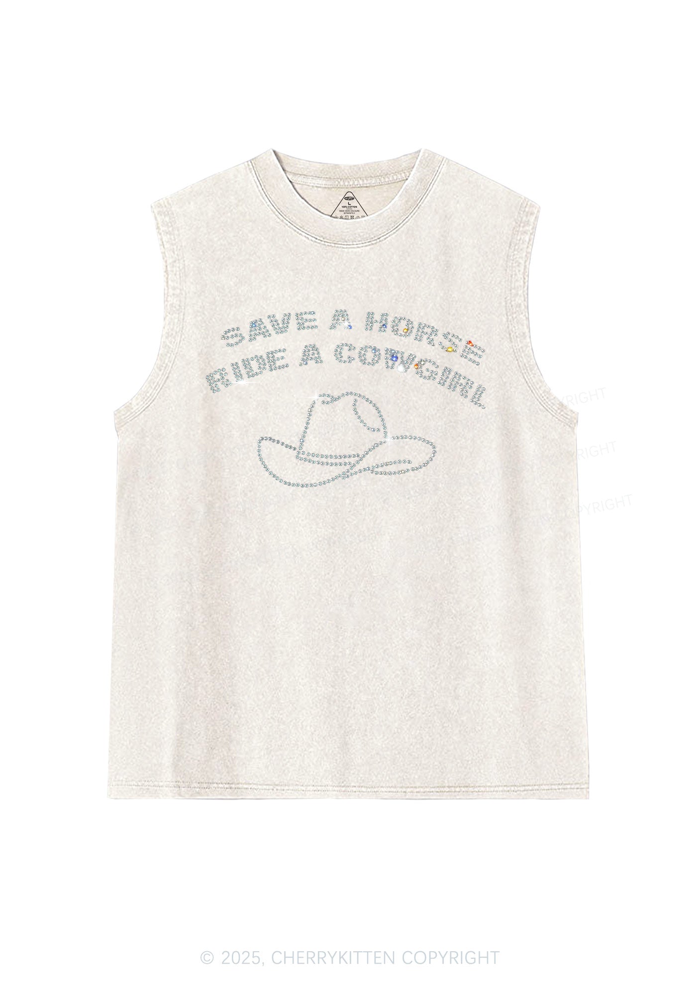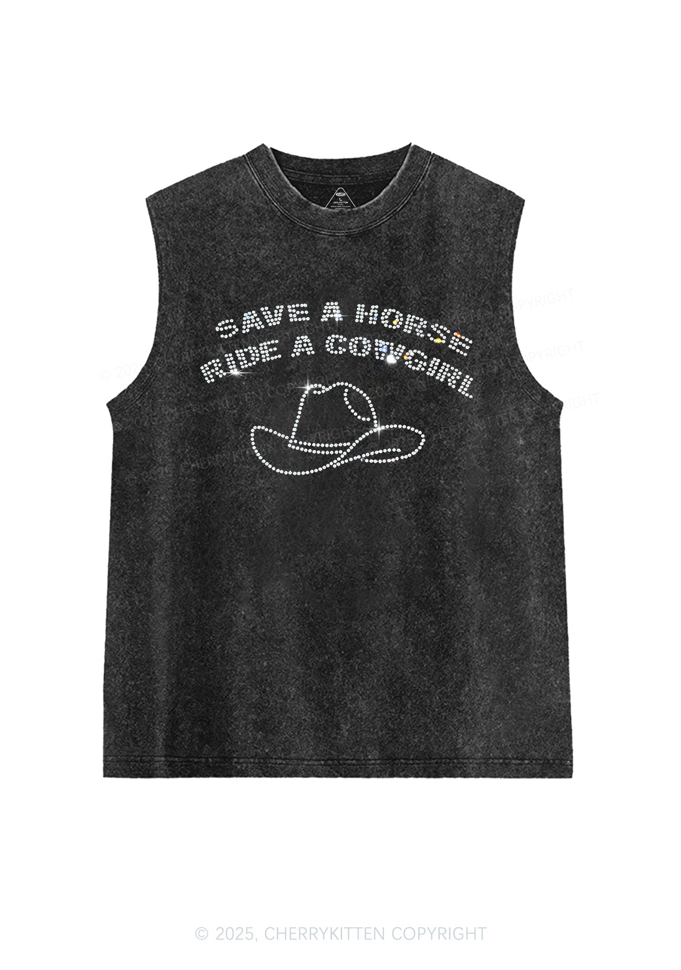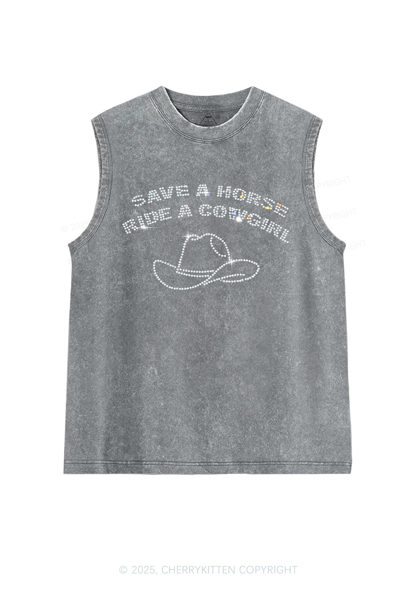 Rhinestone Save Horse Ride Cowgirl Y2K Washed Muscle Tank Cherrykitten