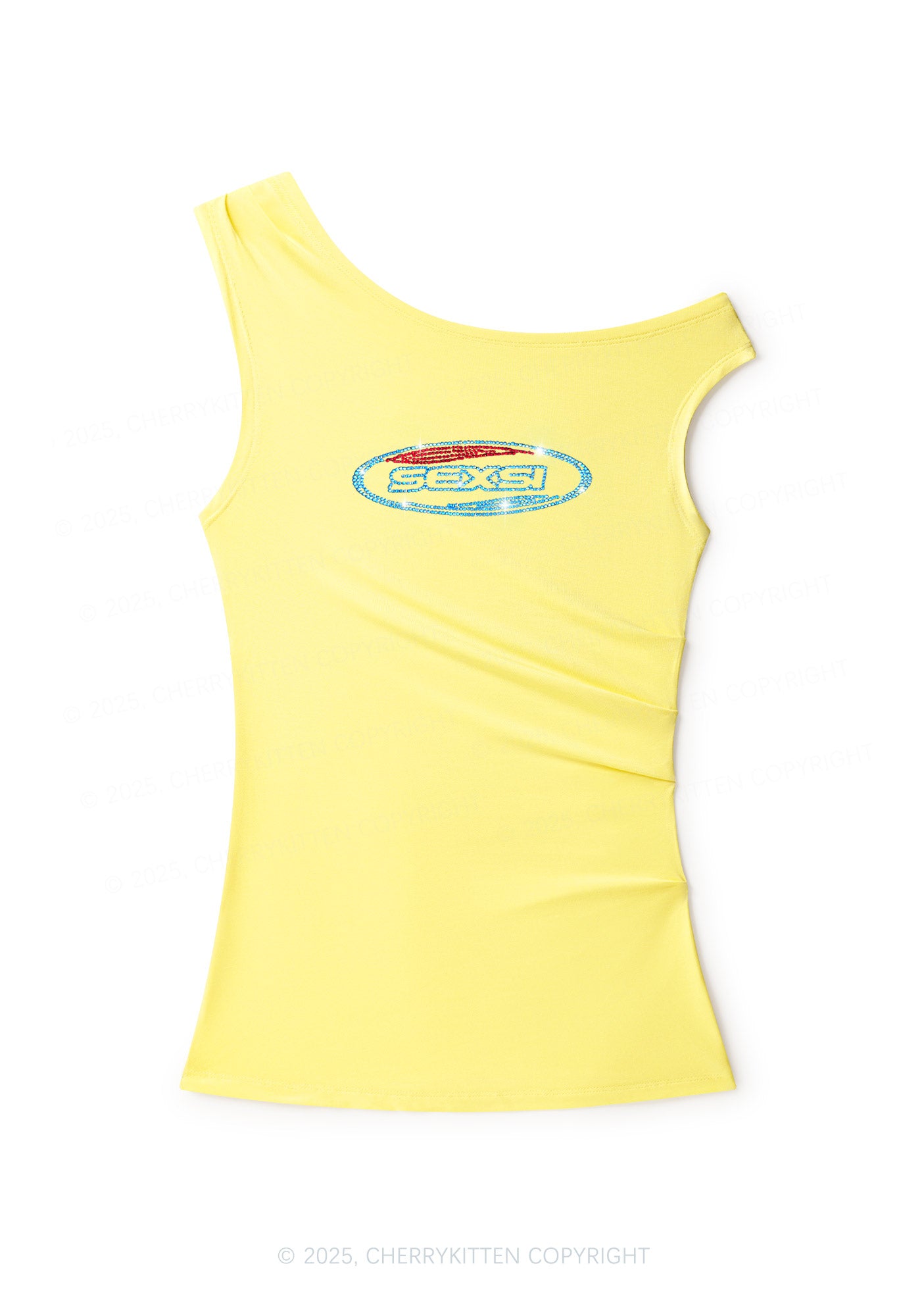 Rhinestone Sexsi Slogan Y2K Off Shoulder Tank Top Cherrykitten