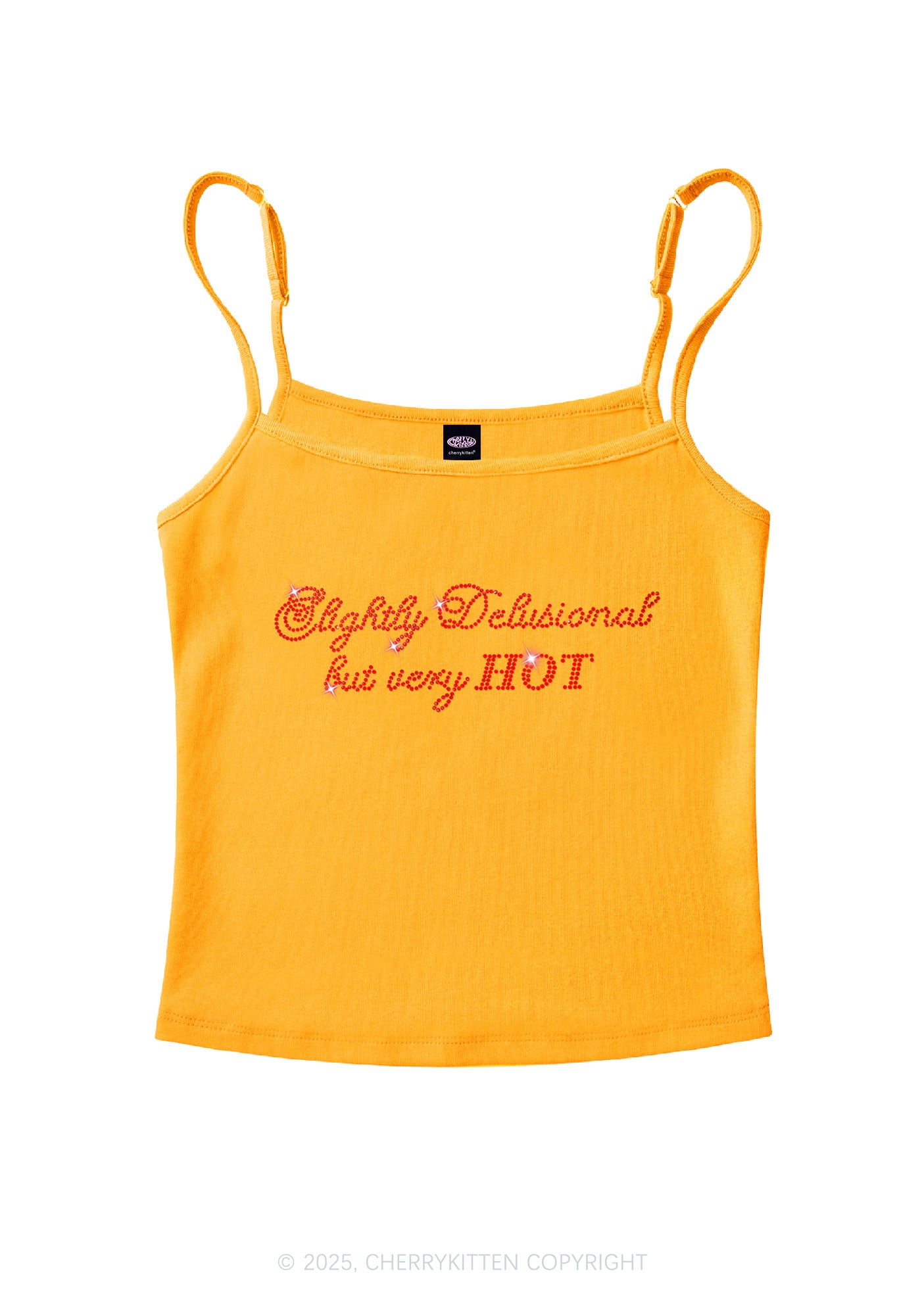 Rhinestone Slightly Delusional But Very Hot Y2K Spaghetti Strap Cami Cherrykitten