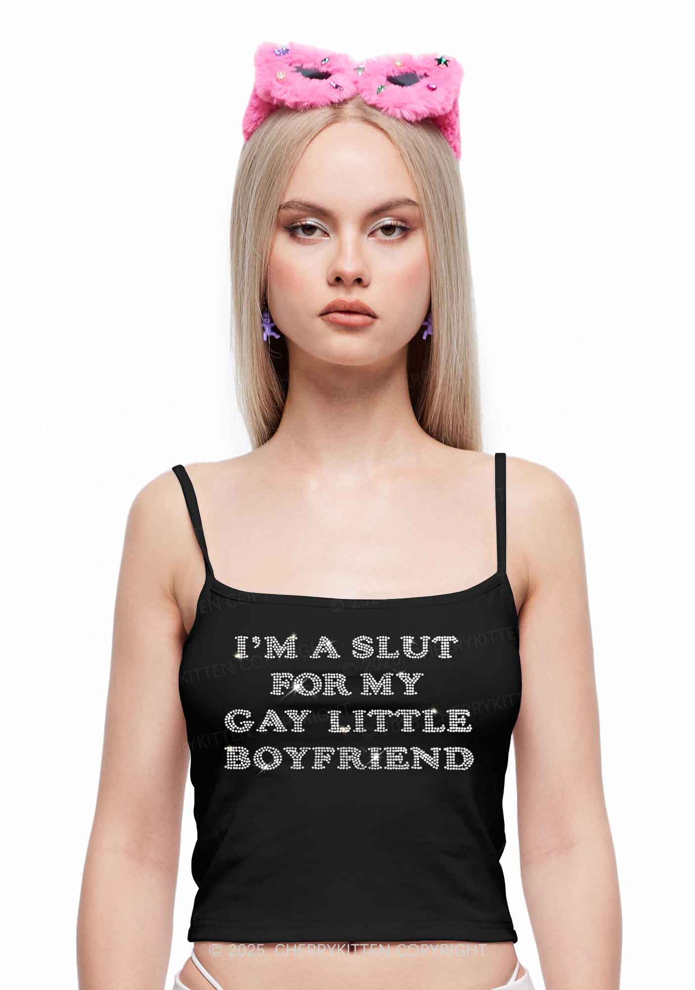 Rhinestone Slxt For My Gay BF Pride Y2K Spaghetti Strap Cami Cherrykitten