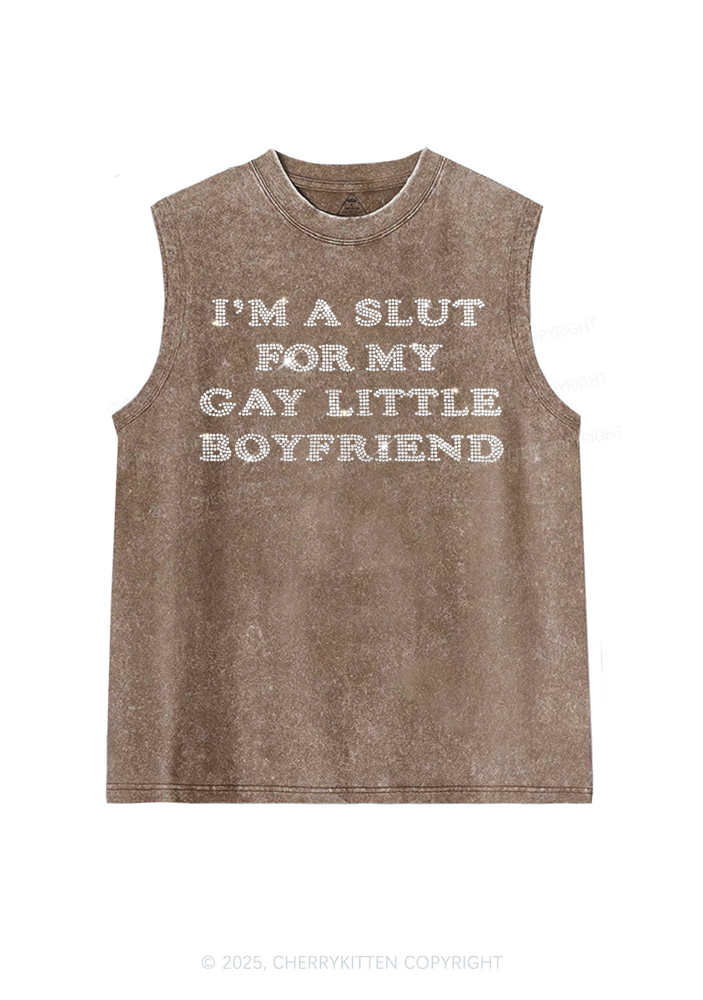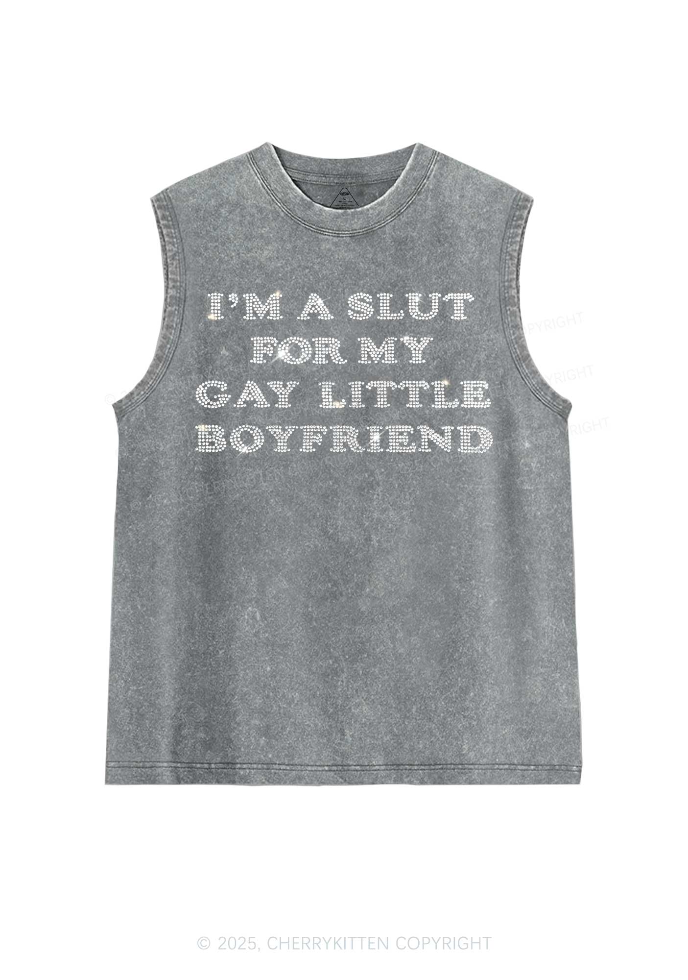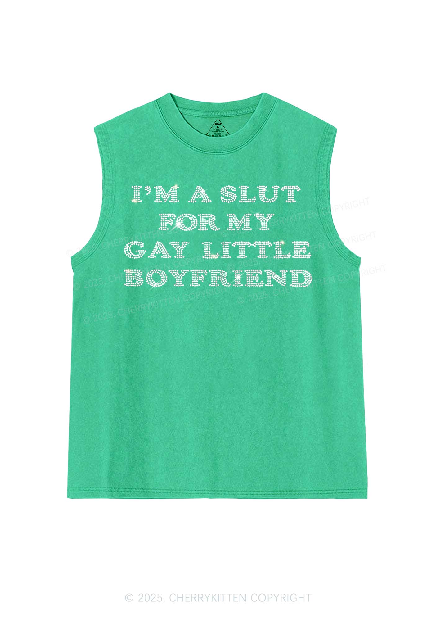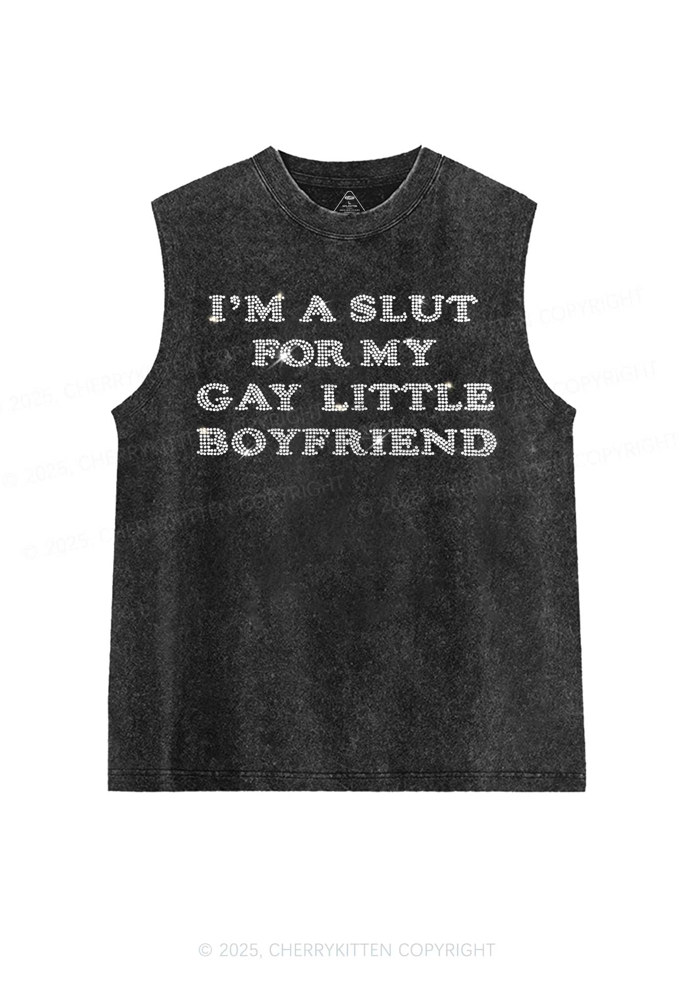 Rhinestone Slxt For My Gay BF Pride Y2K Washed Muscle Tank Cherrykitten