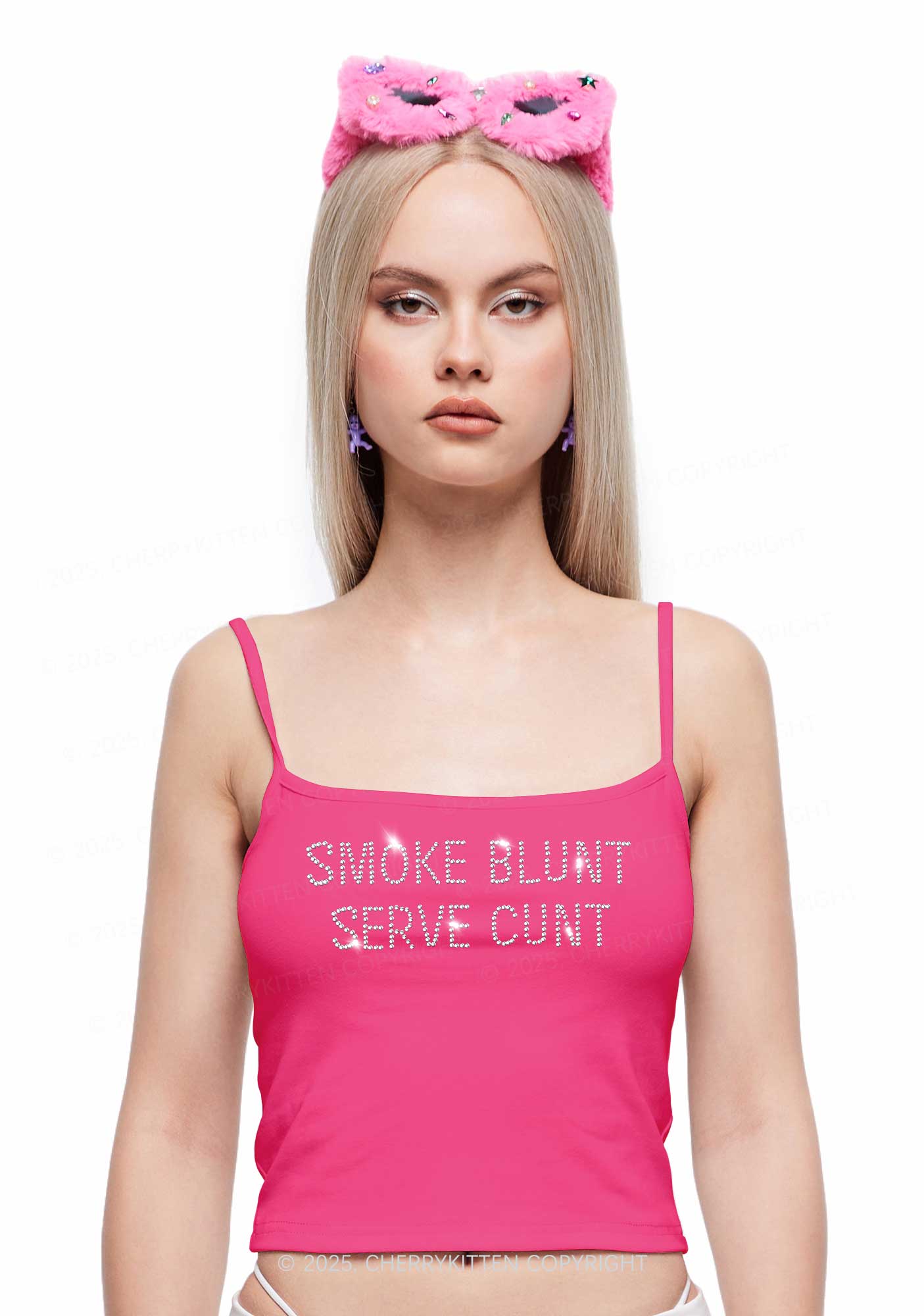 Rhinestone Smoke Blunt Y2K Spaghetti Strap Cami Cherrykitten