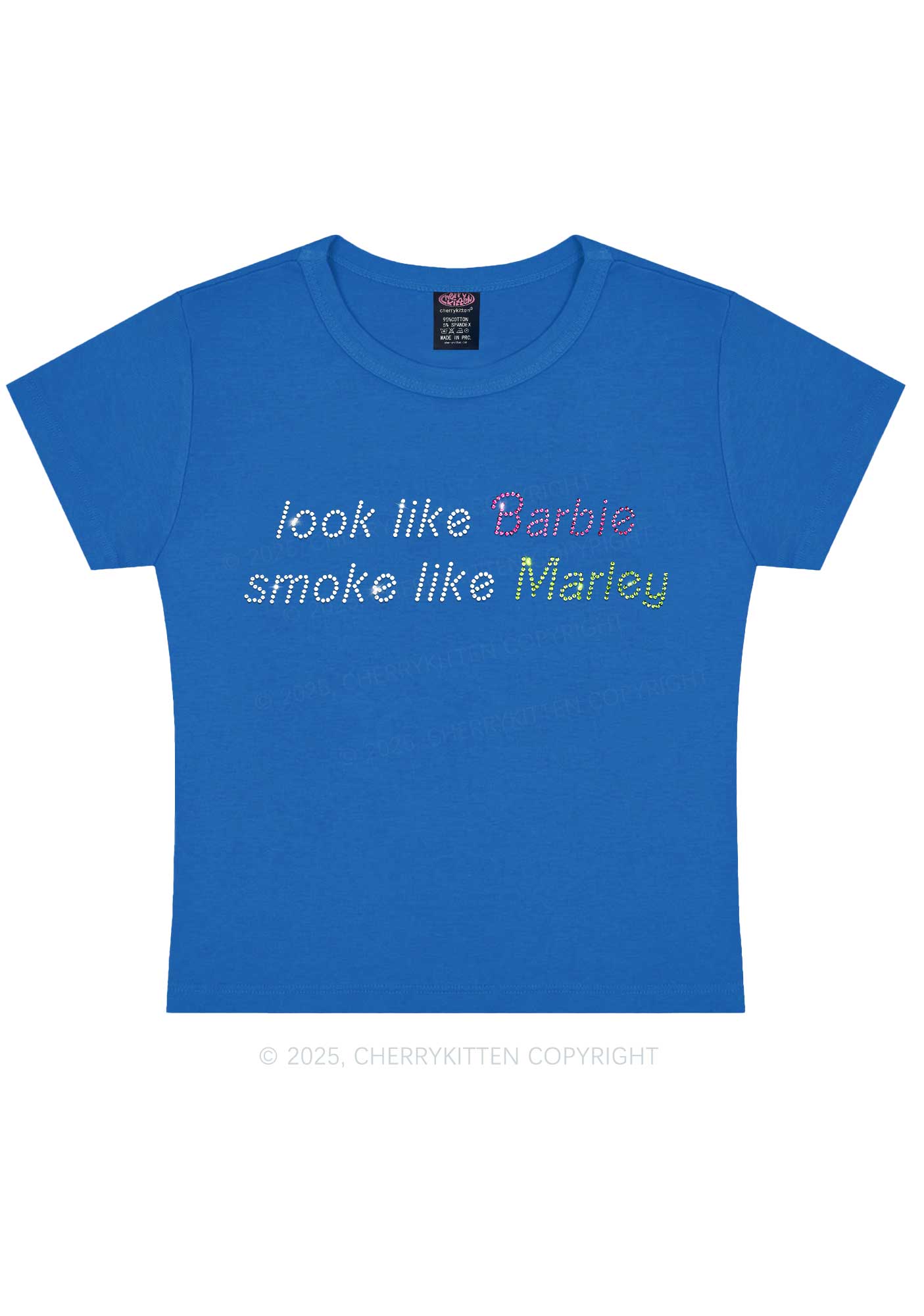 Rhinestone Smoke Like Marley Y2K Baby Tee Cherrykitten