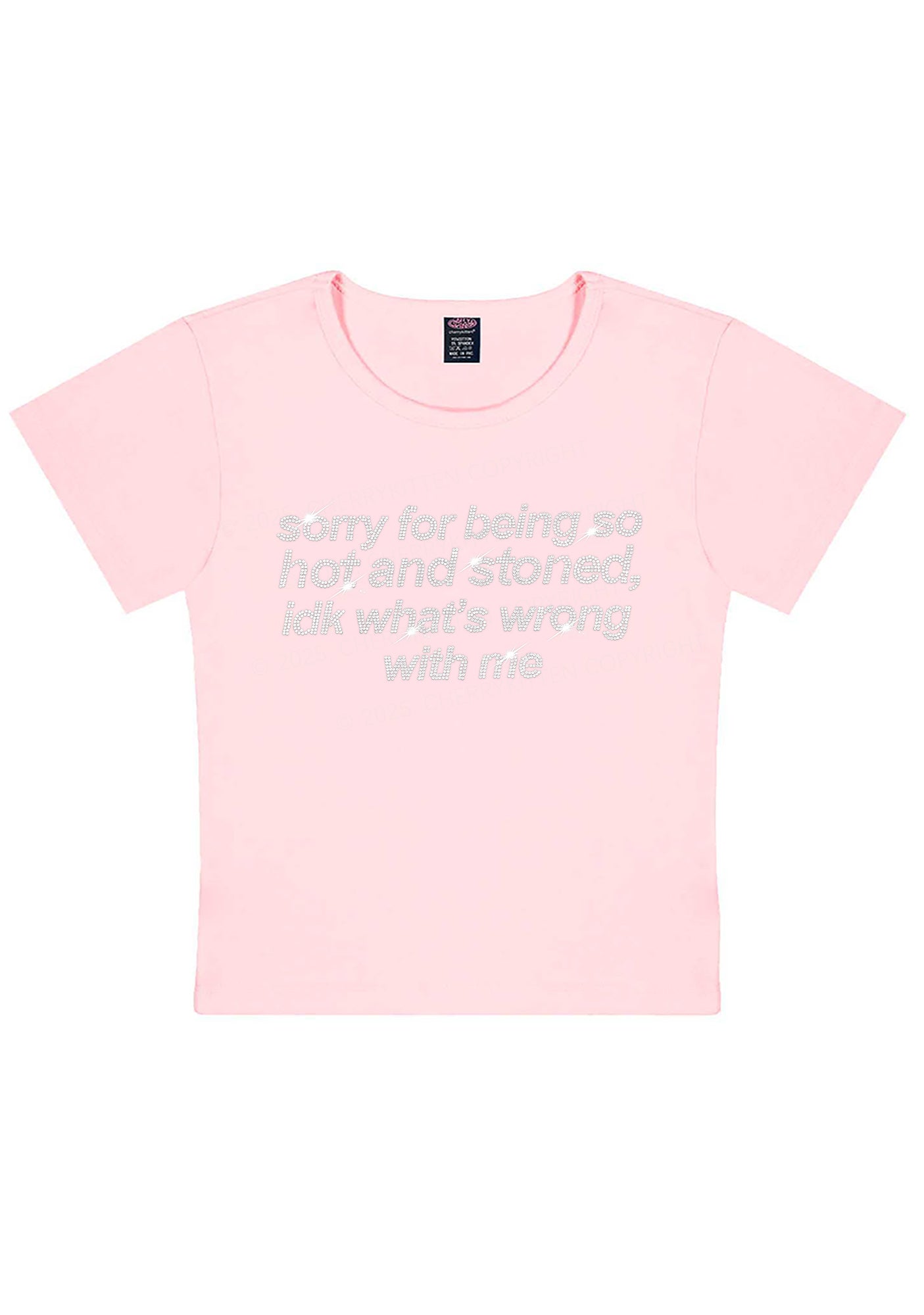 Rhinestone Sorry For Being Hot And Stoned Y2K Baby Tee Cherrykitten