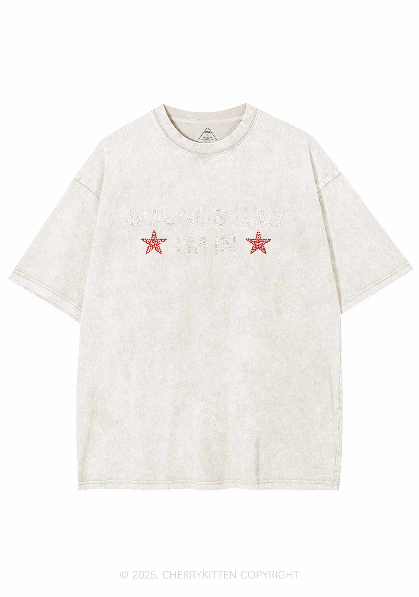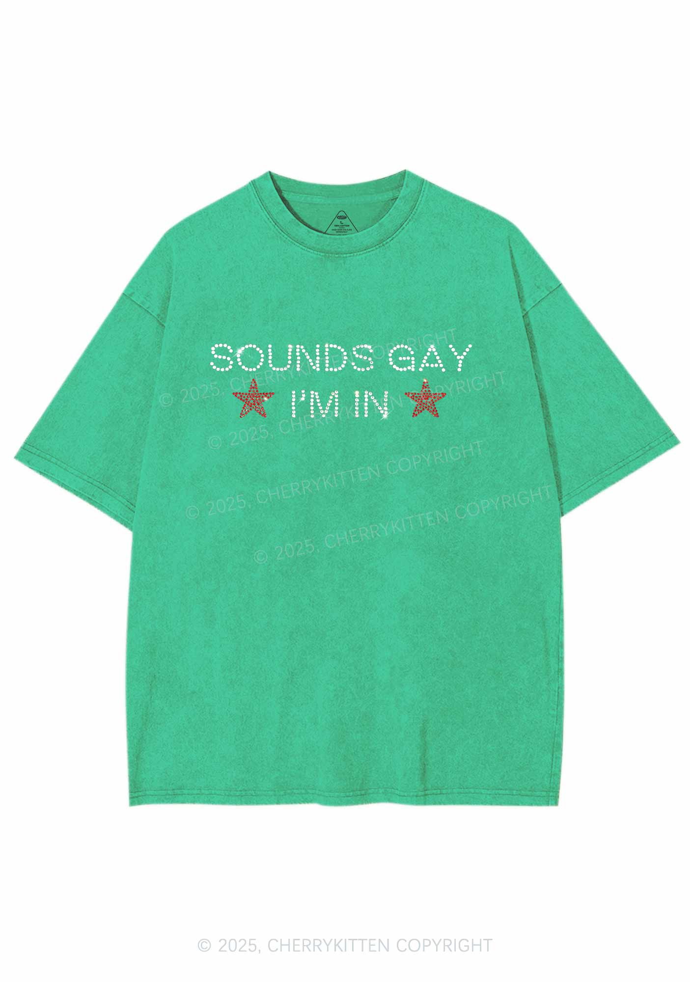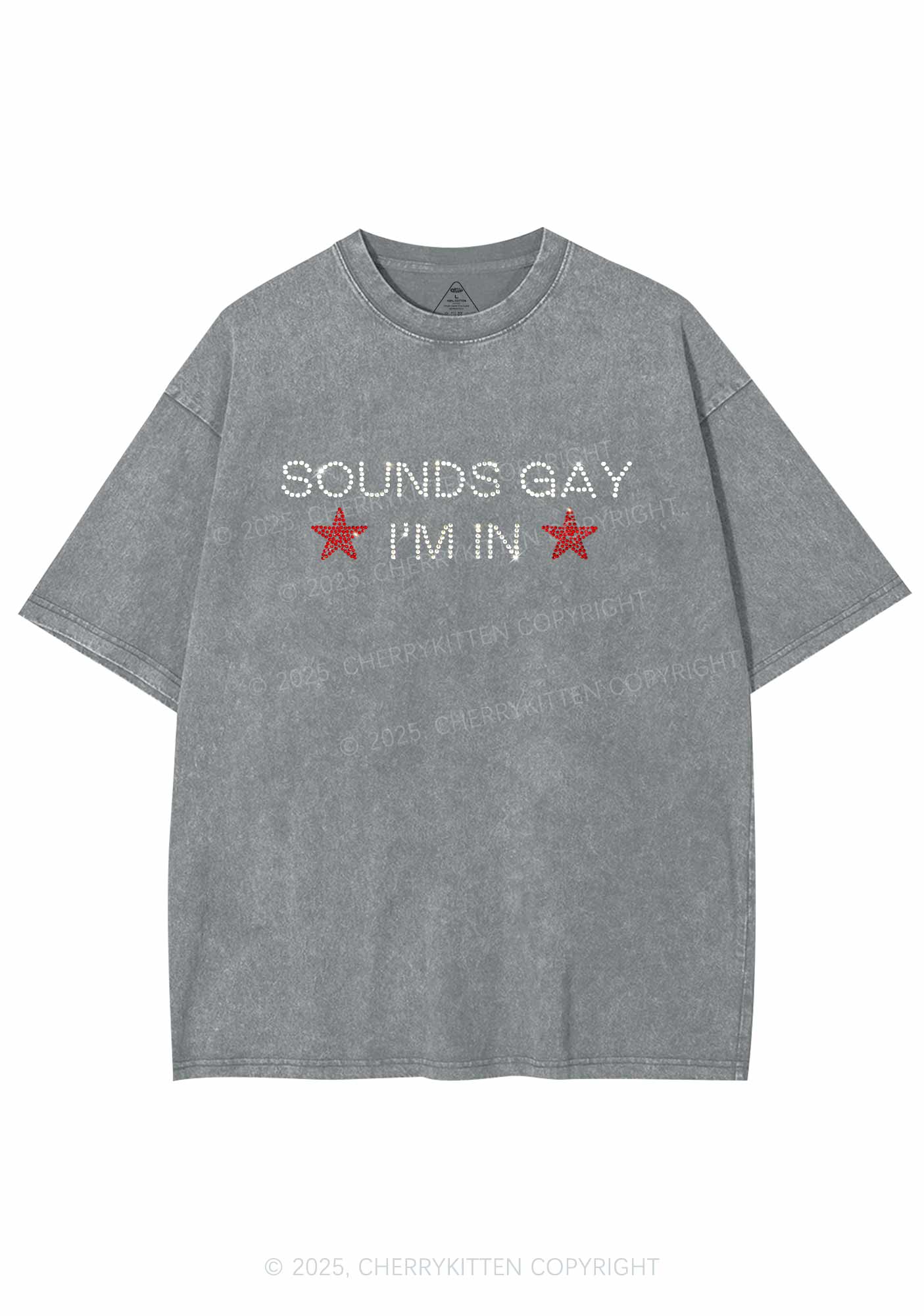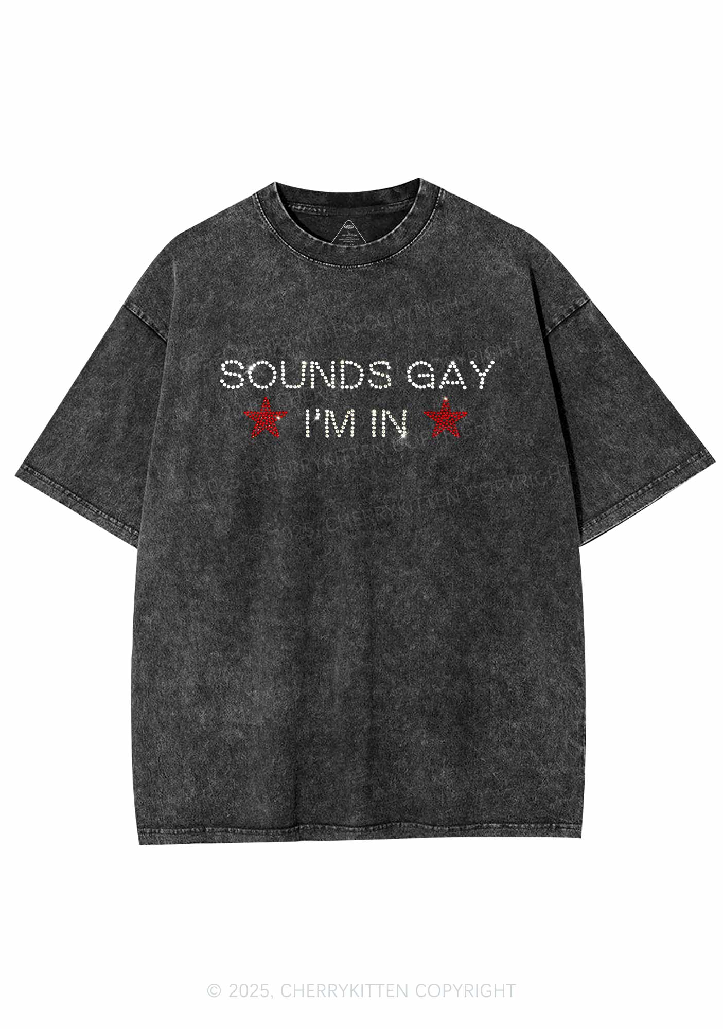 Rhinestone Sounds Gay Pride Y2K Shirts Washed Tee Cherrykitten