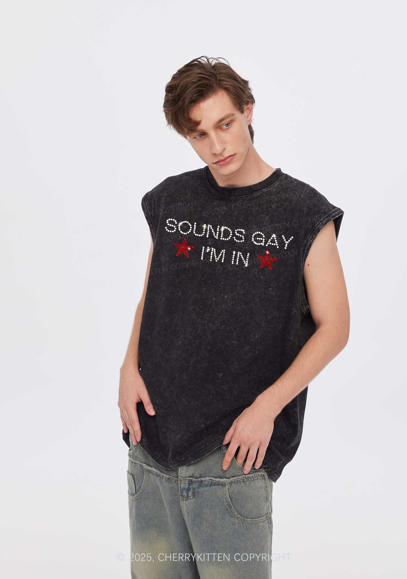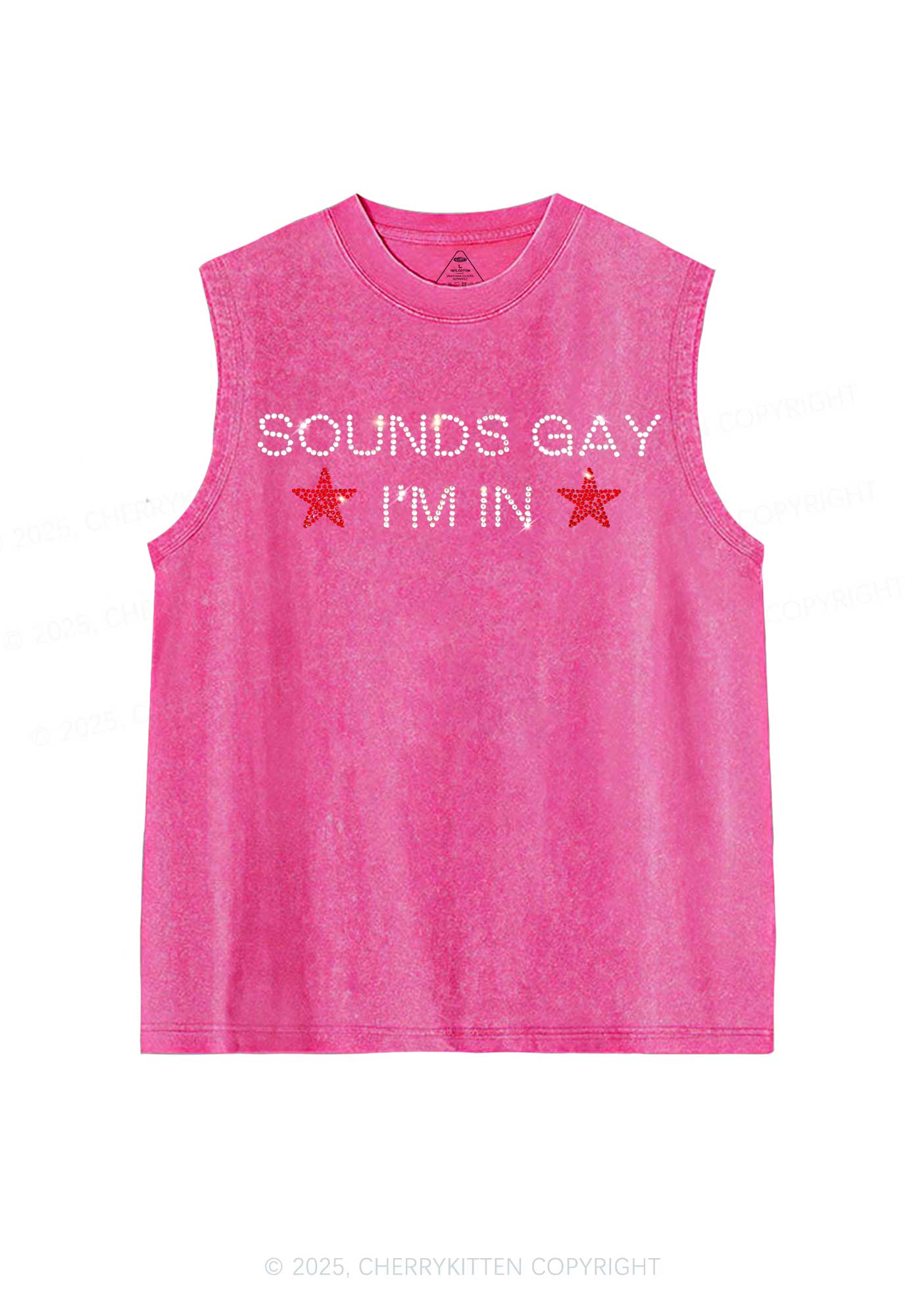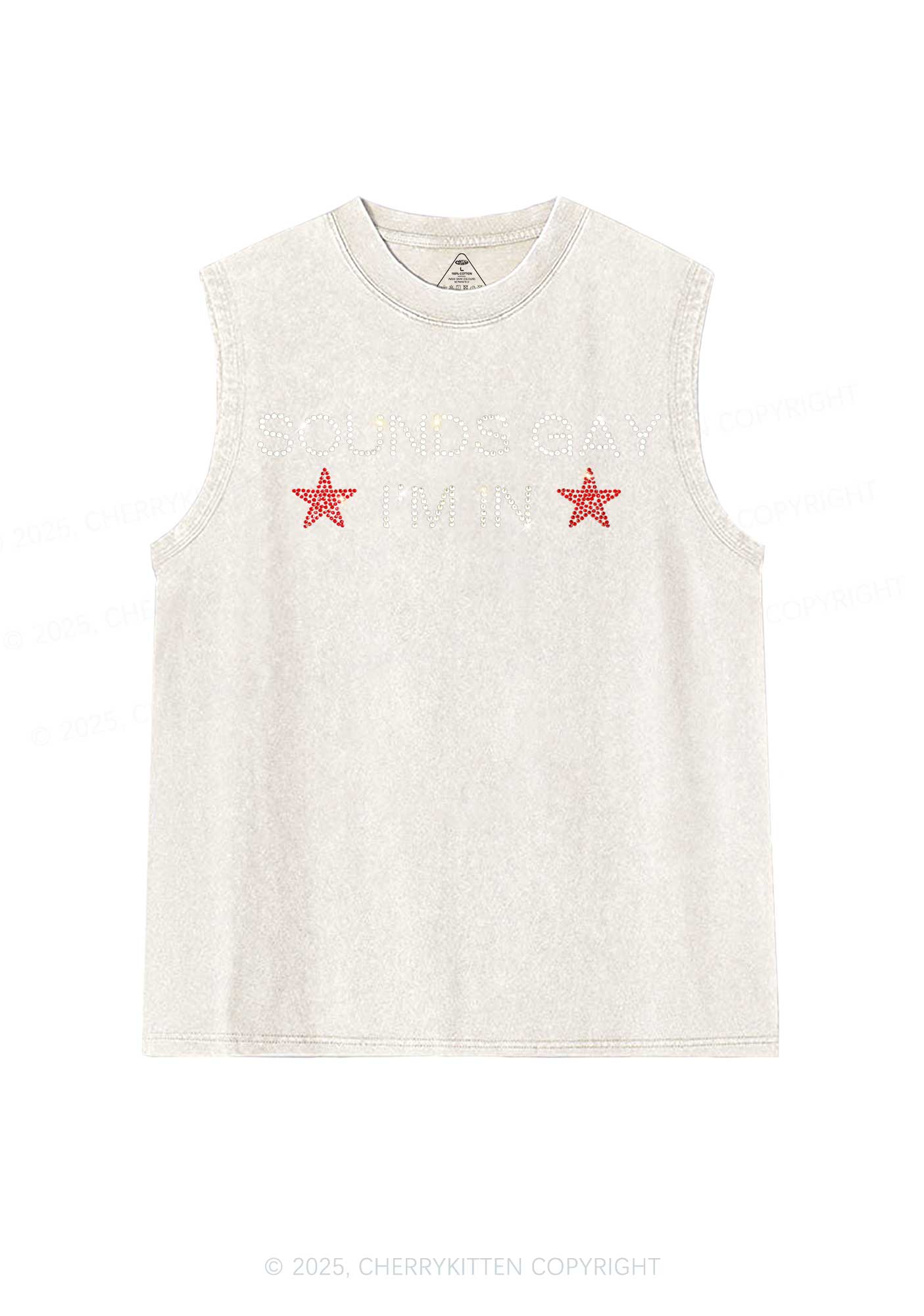 Rhinestone Sounds Gay Pride Y2K Washed Muscle Tank Cherrykitten