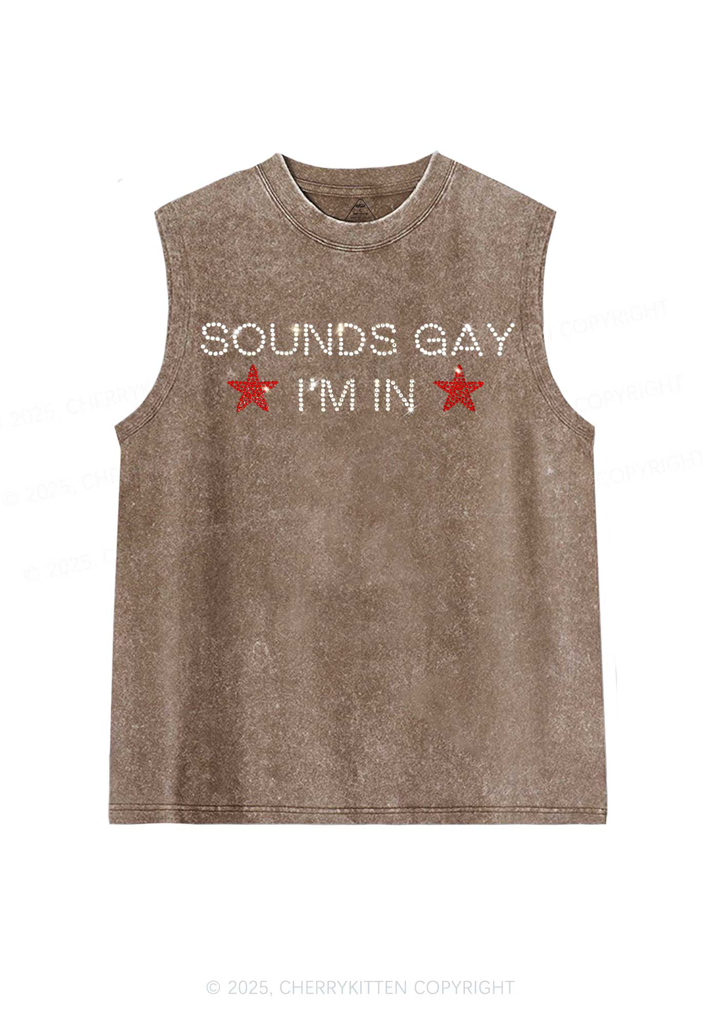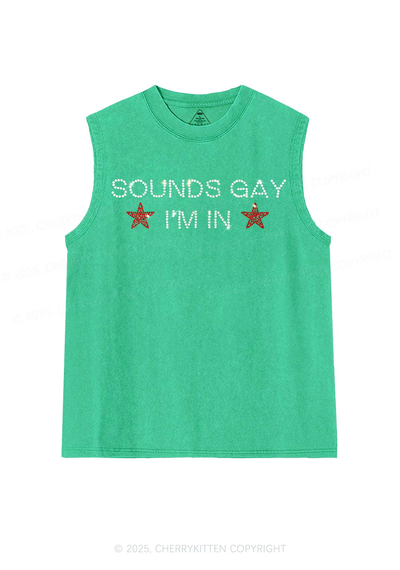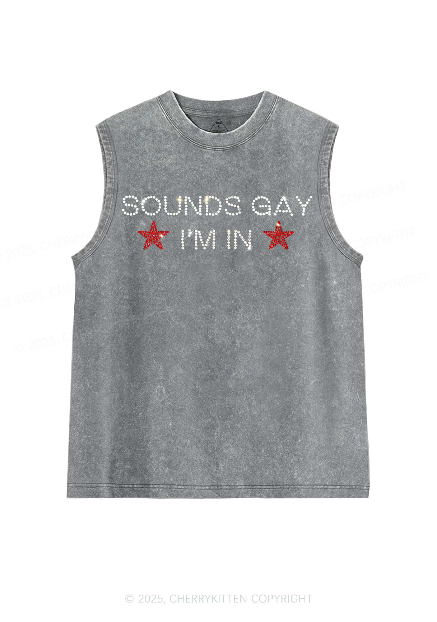 Rhinestone Sounds Gay Pride Y2K Washed Muscle Tank Cherrykitten