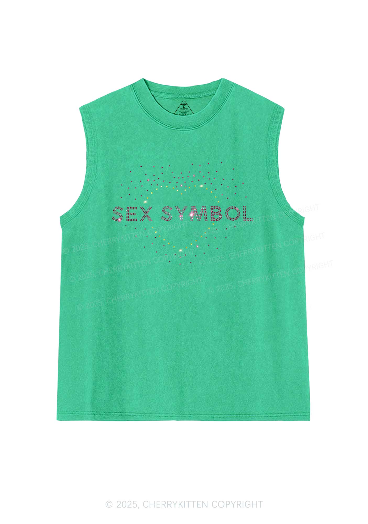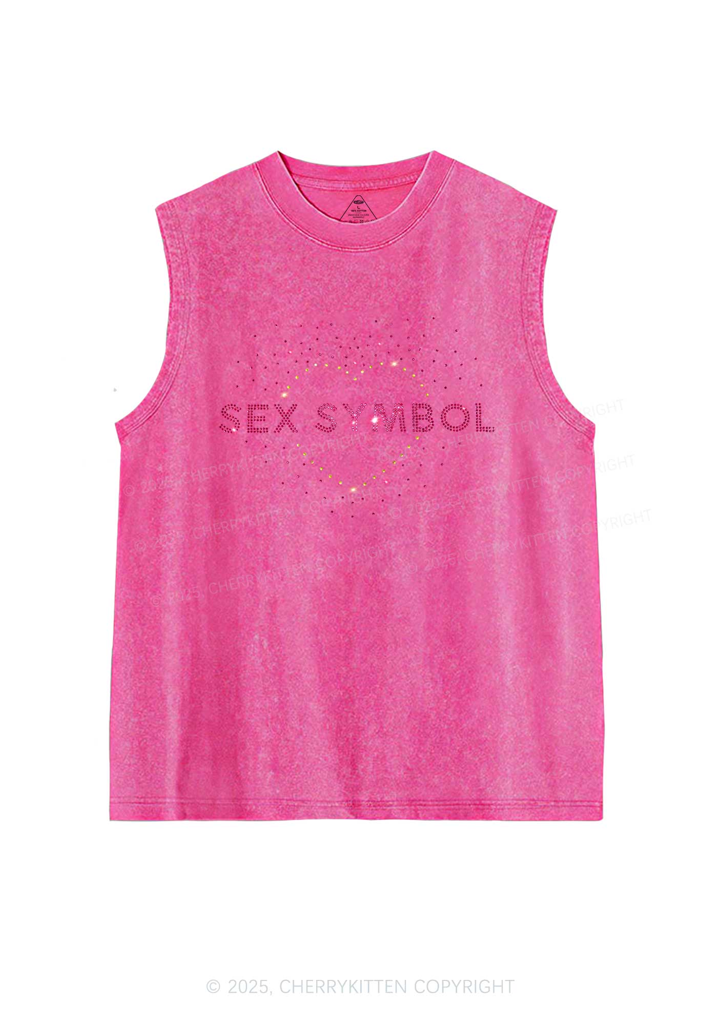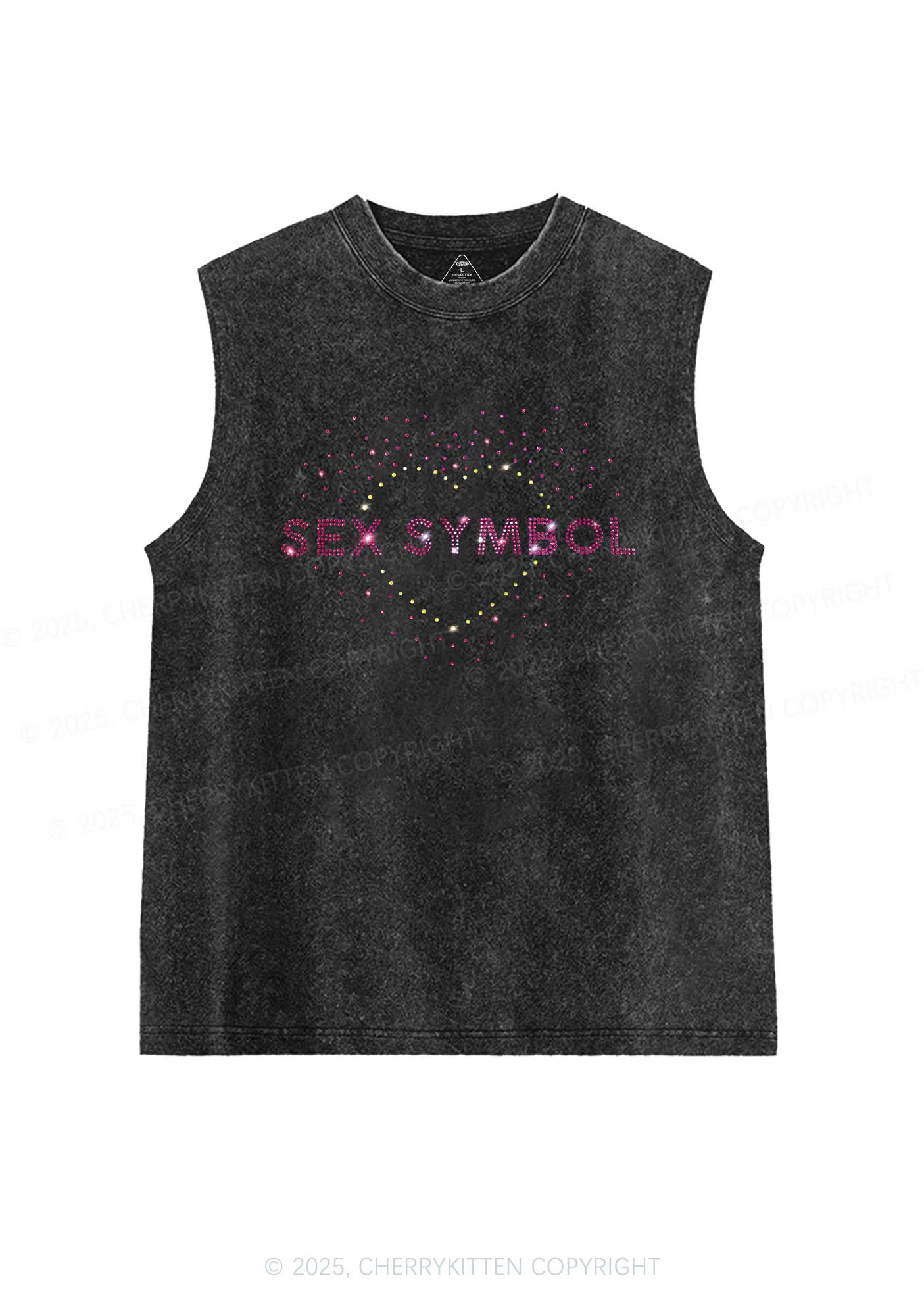 Rhinestone Sx Symbol Y2K Washed Muscle Tank Cherrykitten