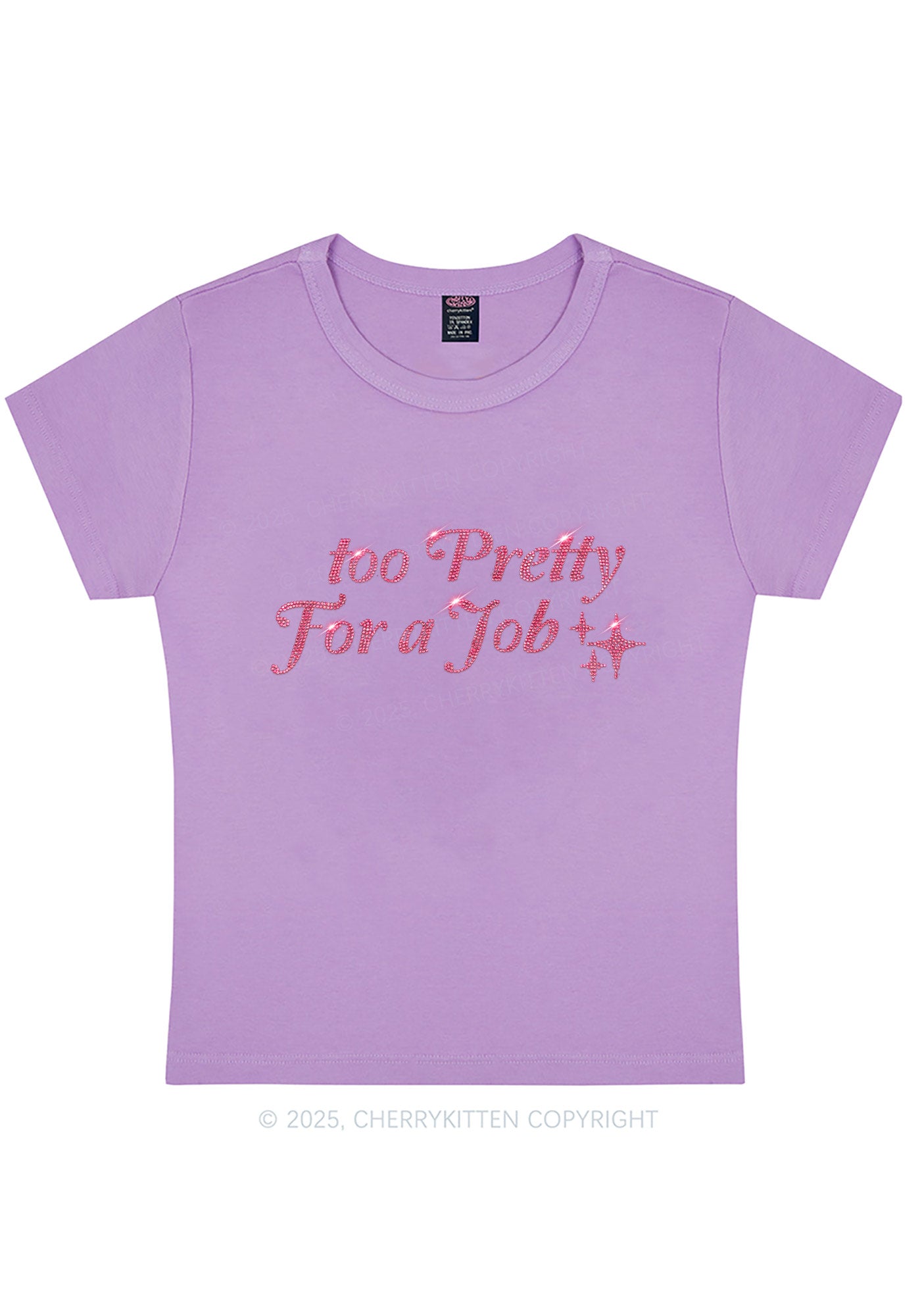 Rhinestone Too Pretty For Job Y2K Baby Tee Cherrykitten