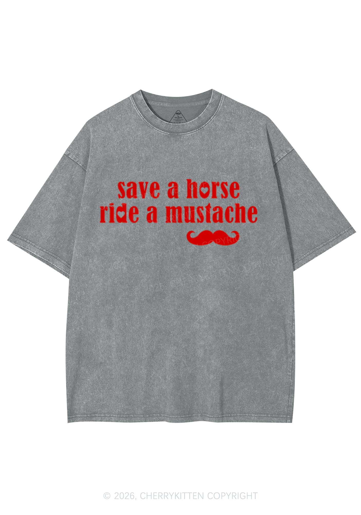 Ride A Mustache Valentine's Day Y2K Shirts Washed Tee Cherrykitten