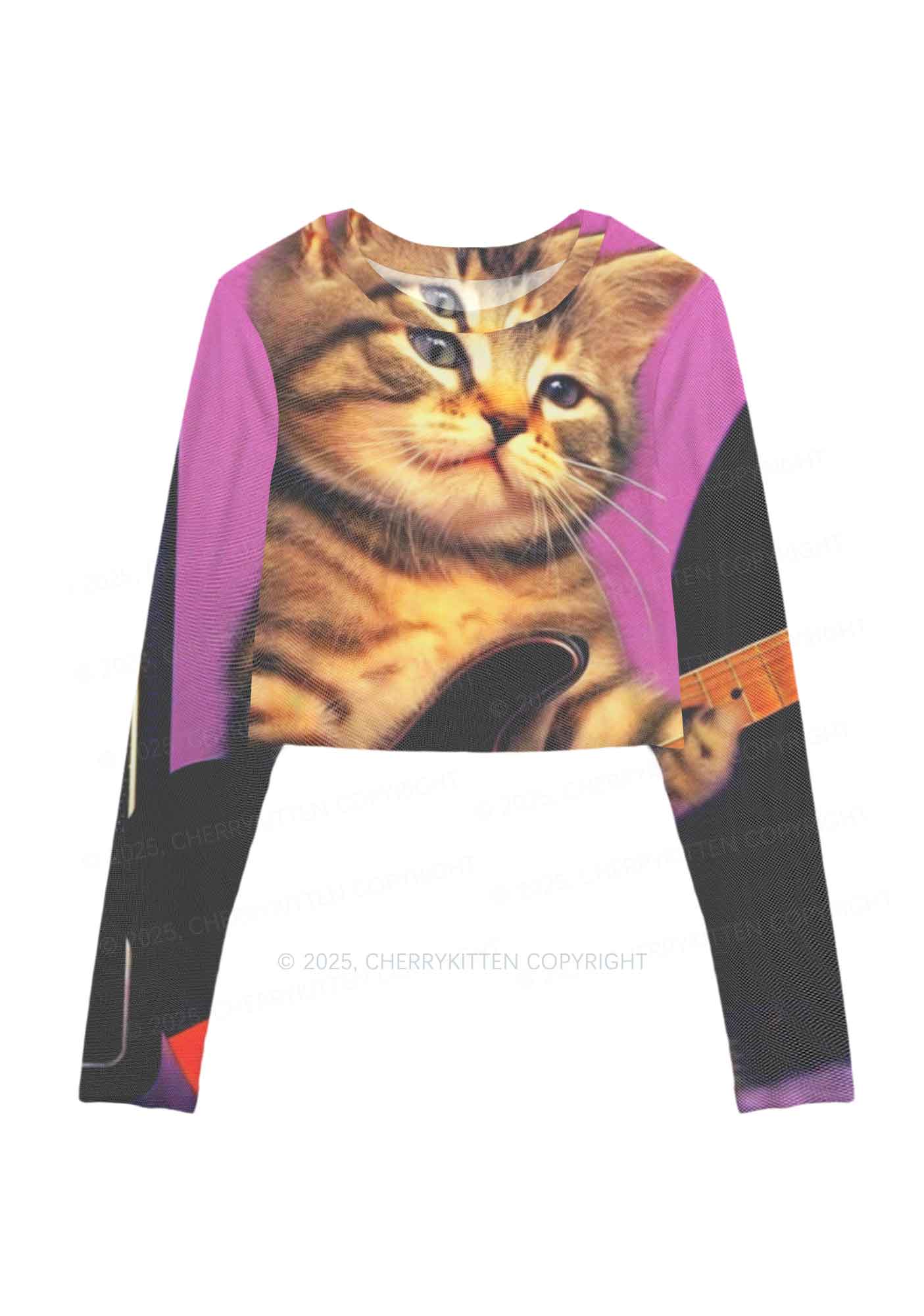 Rock Kitten Y2K Mesh Long Sleeve Crop Top Cherrykitten