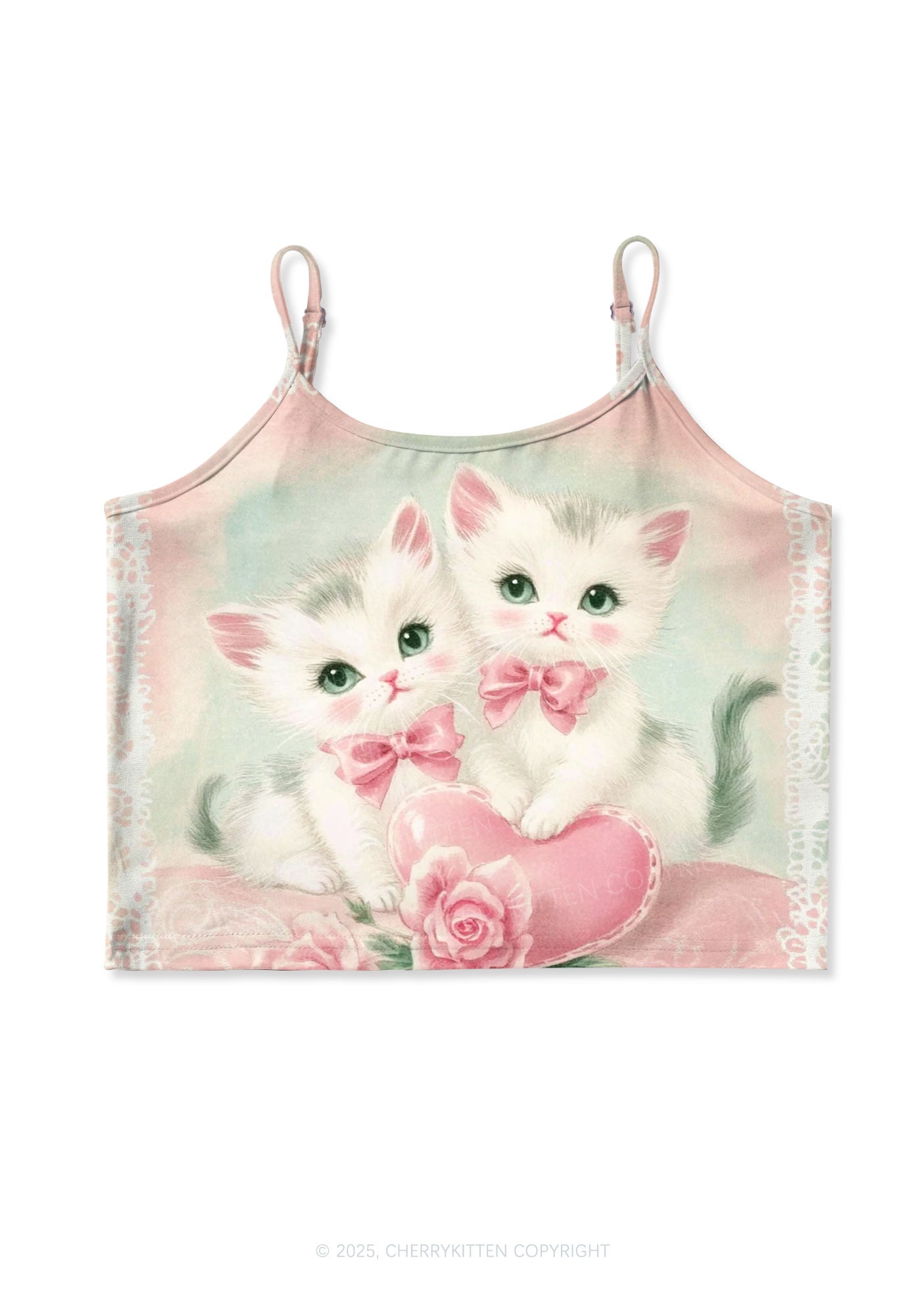 Rose Kitties Y2K Print Cami Crop Top Cherrykitten