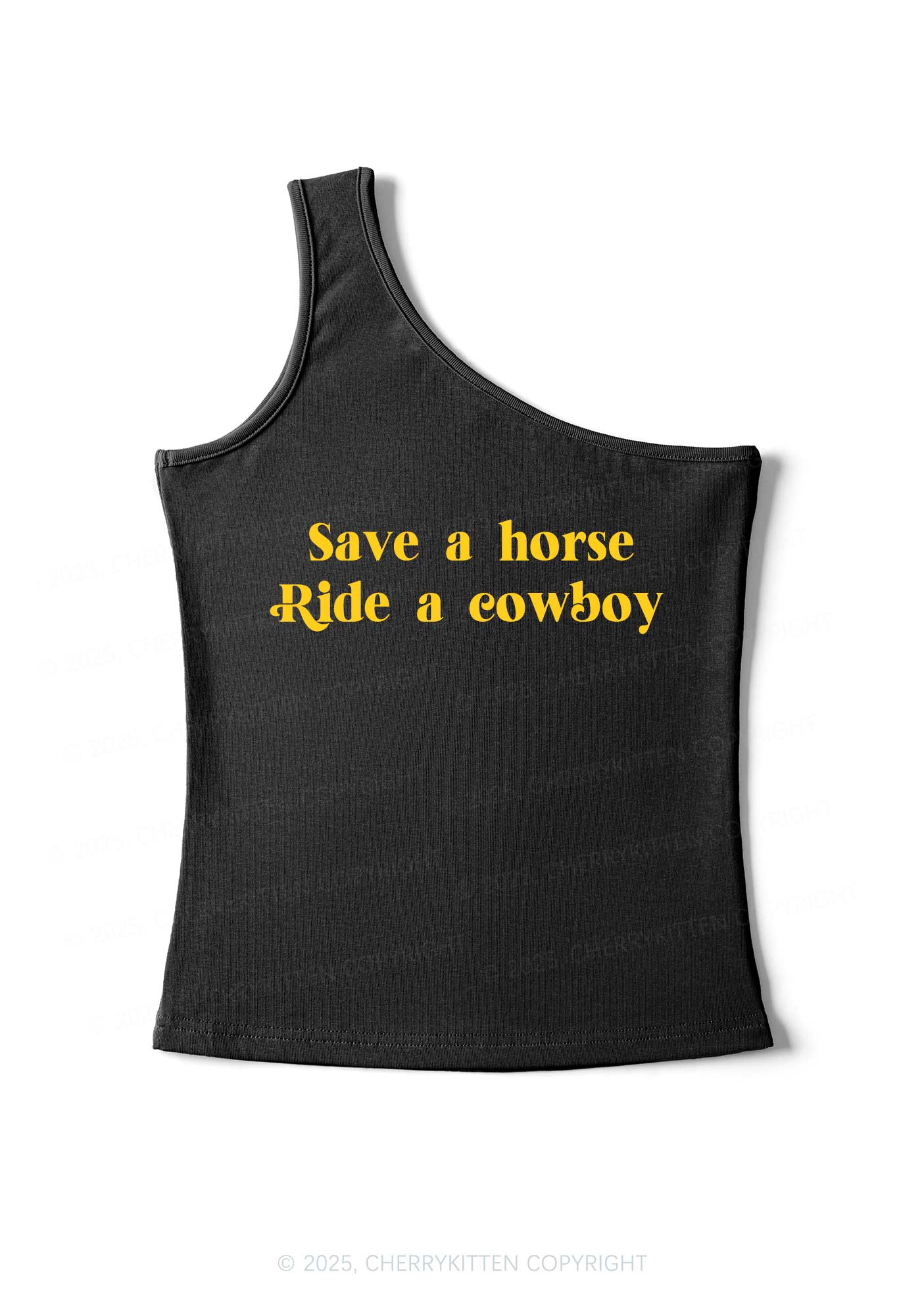 Save A Horse Ride A Cowboy Y2K One Shoulder Tank Top Cherrykitten
