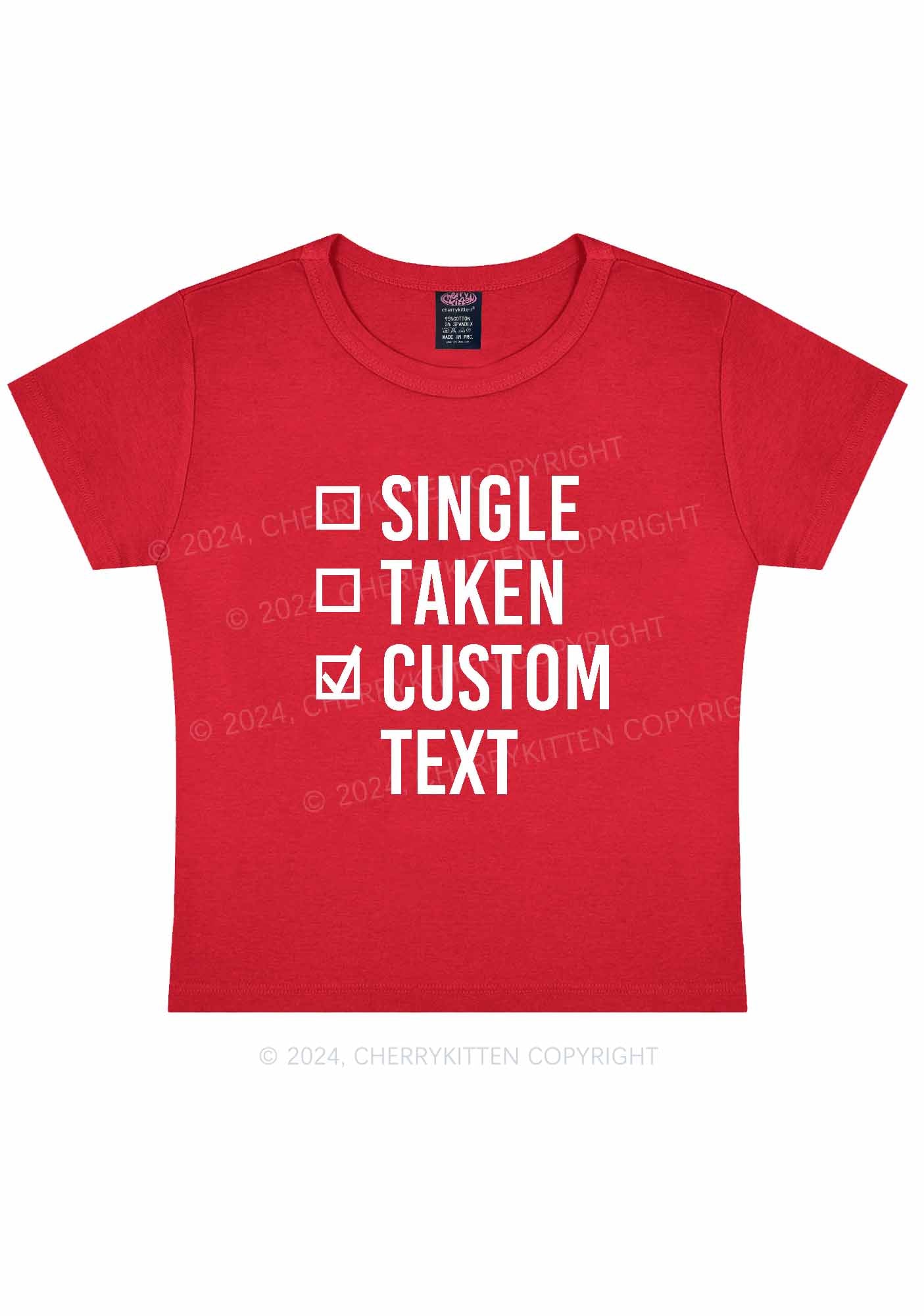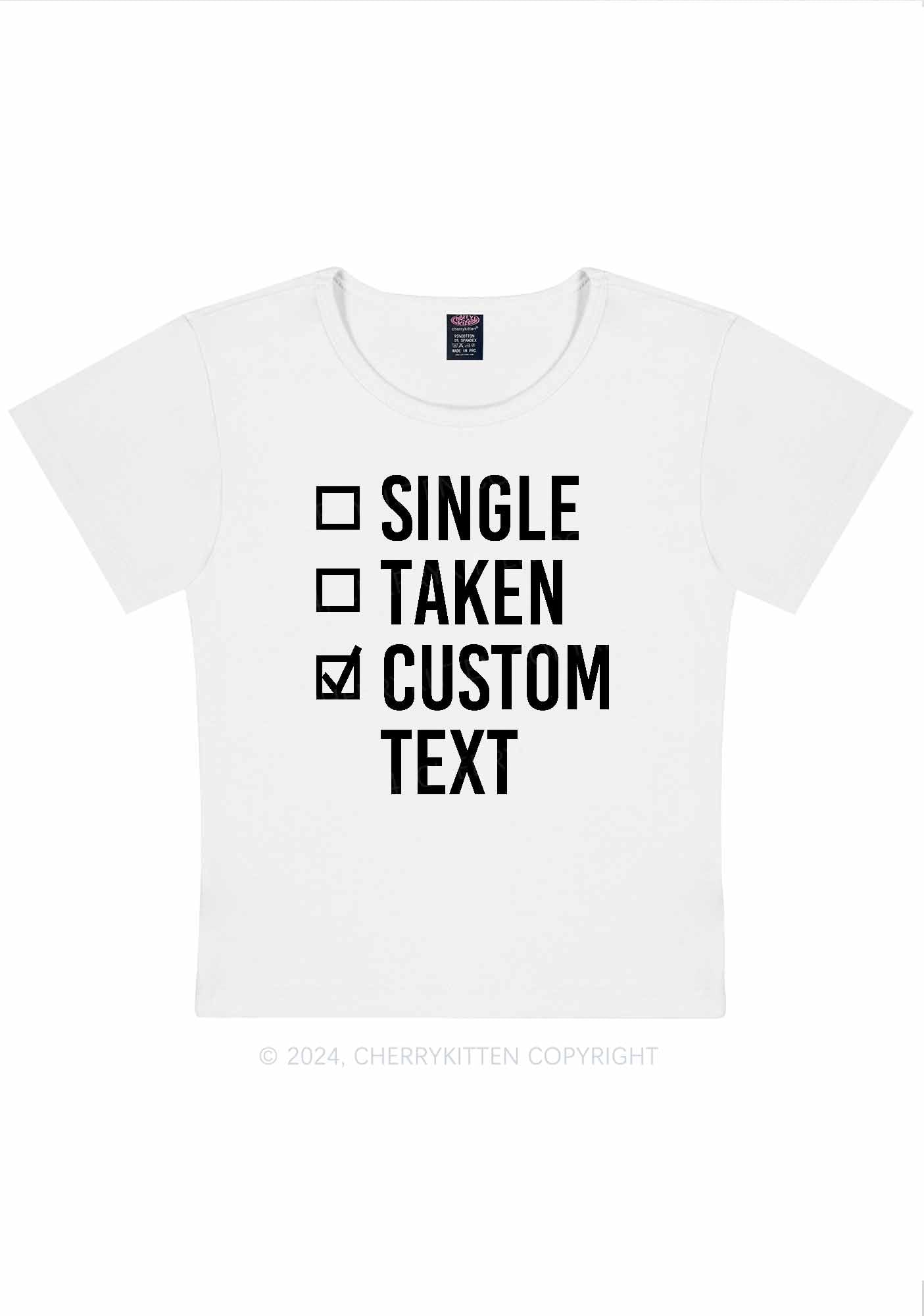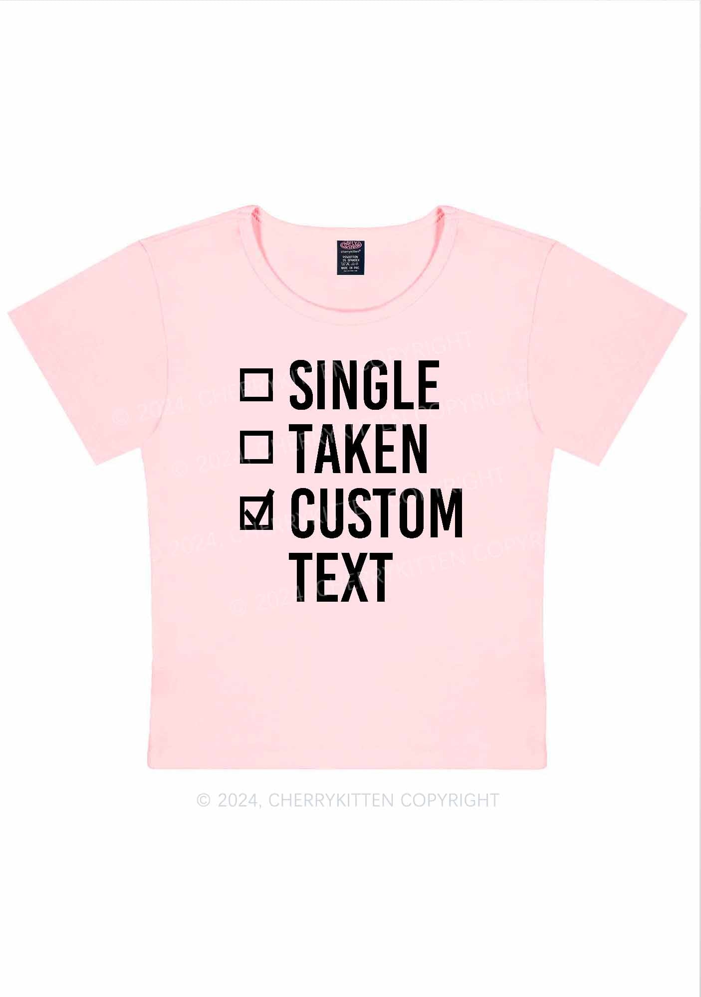 Single Taken Custom Text Y2K Valentine's Day Baby Tee Cherrykitten
