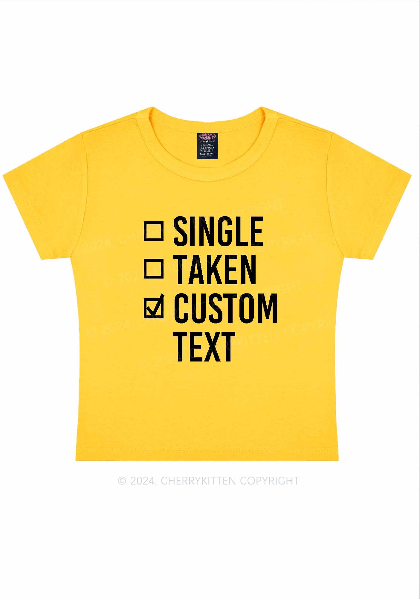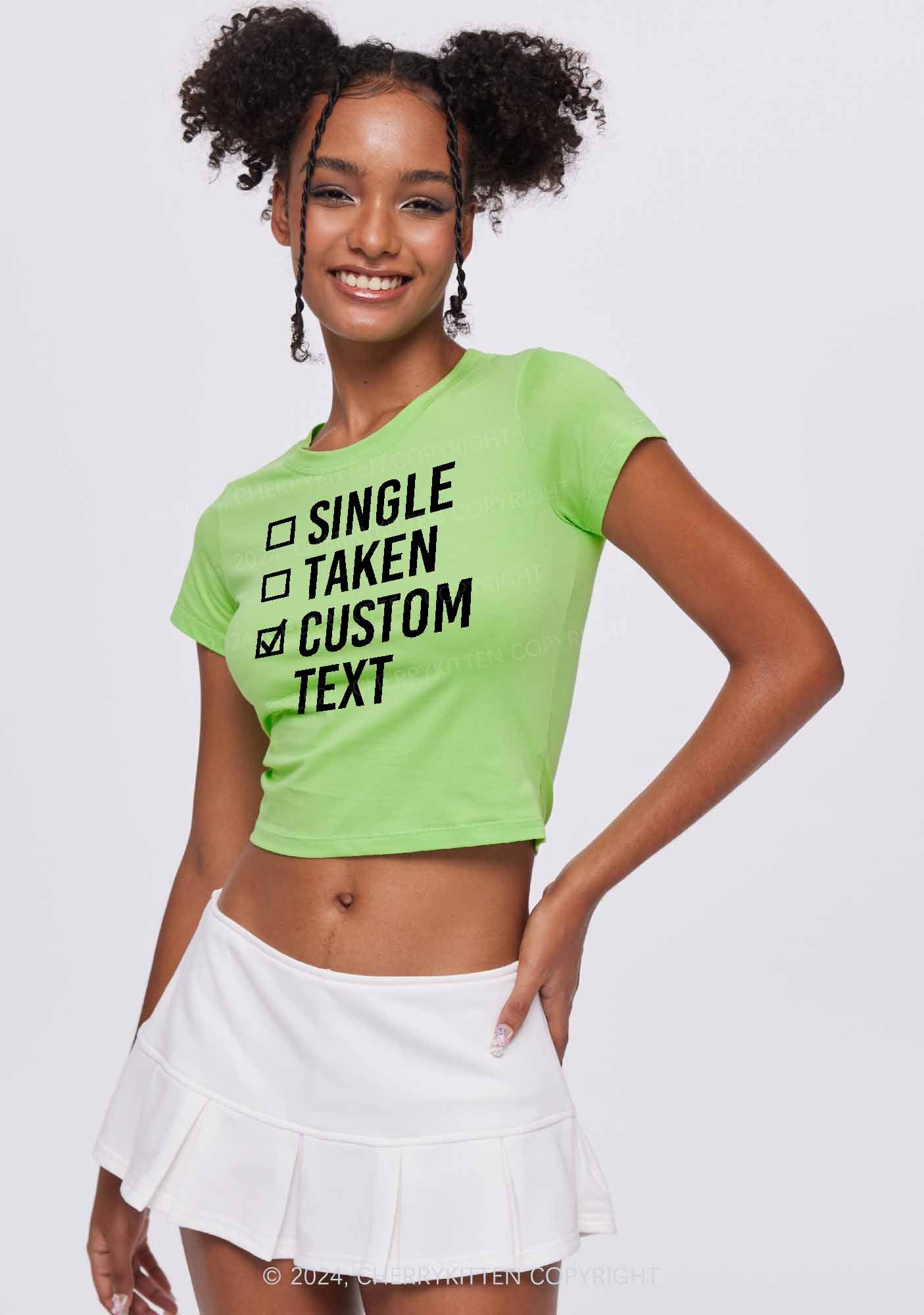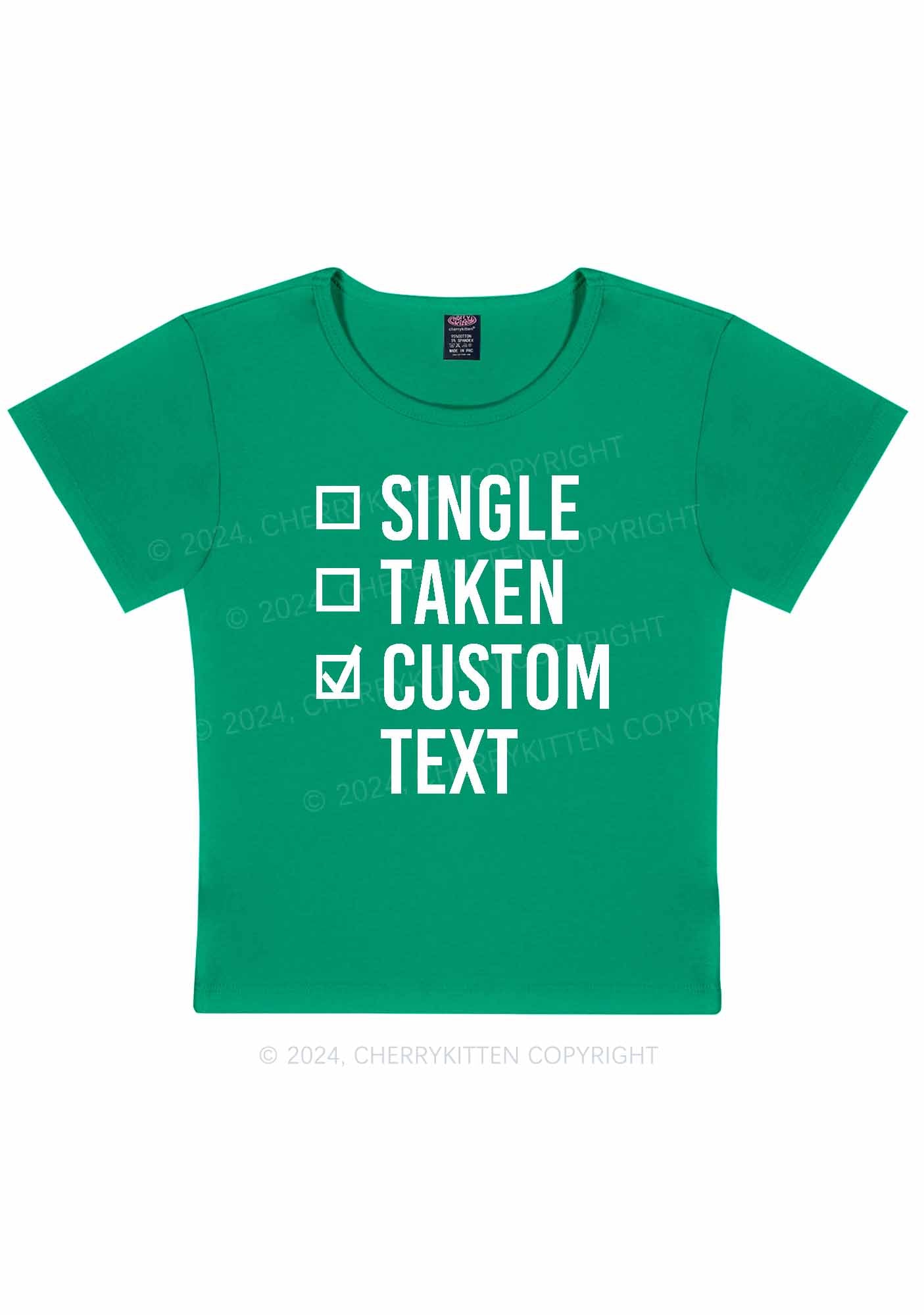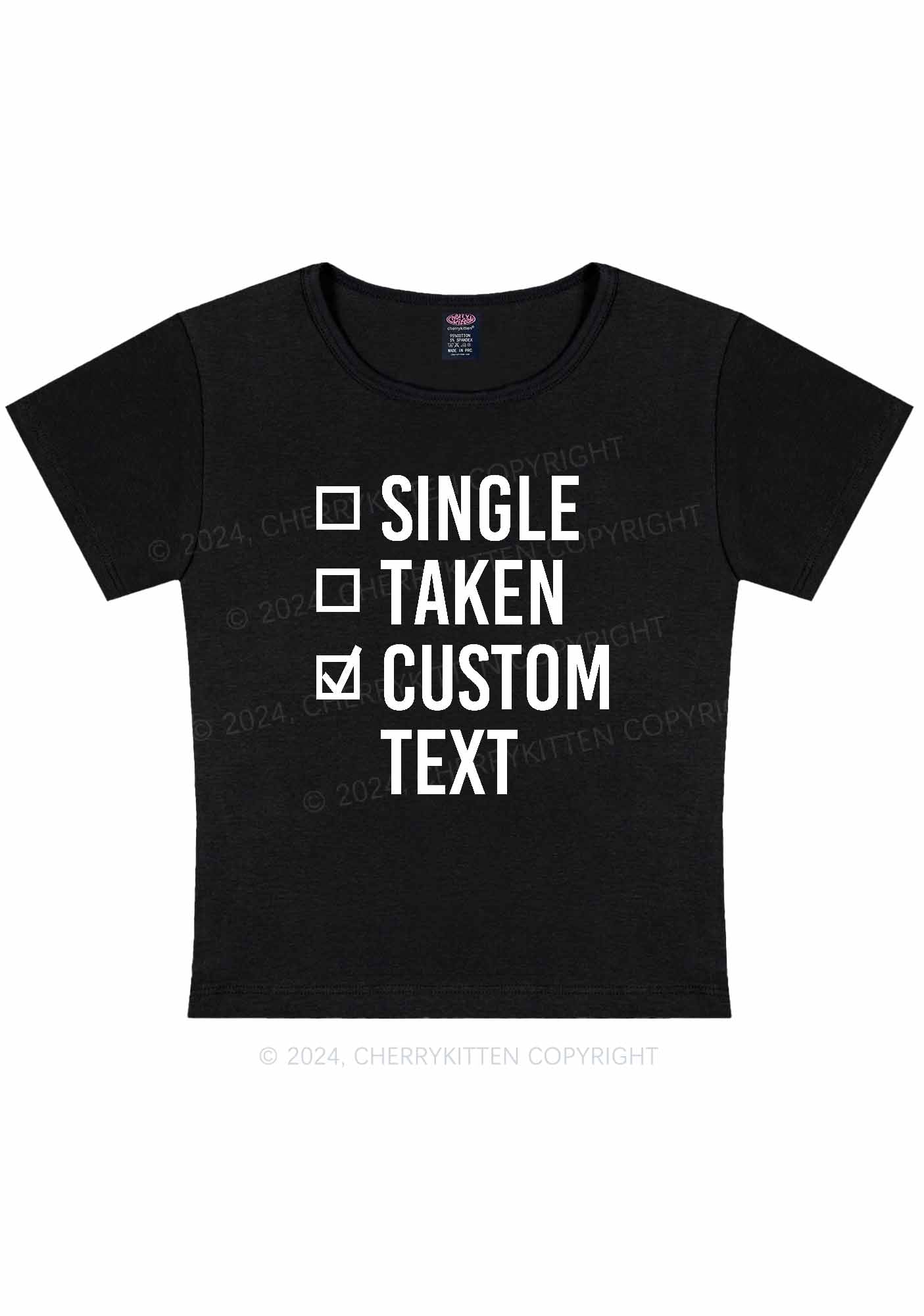 Single Taken Custom Text Y2K Valentine's Day Baby Tee Cherrykitten