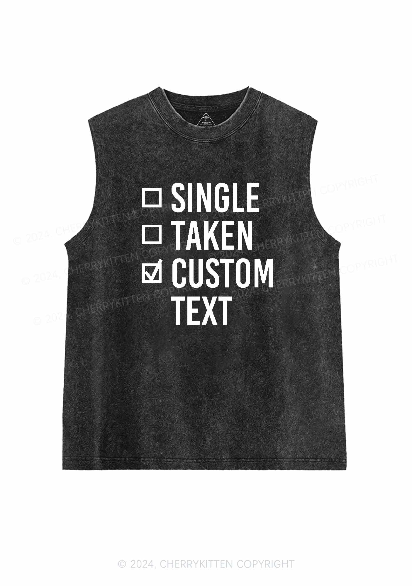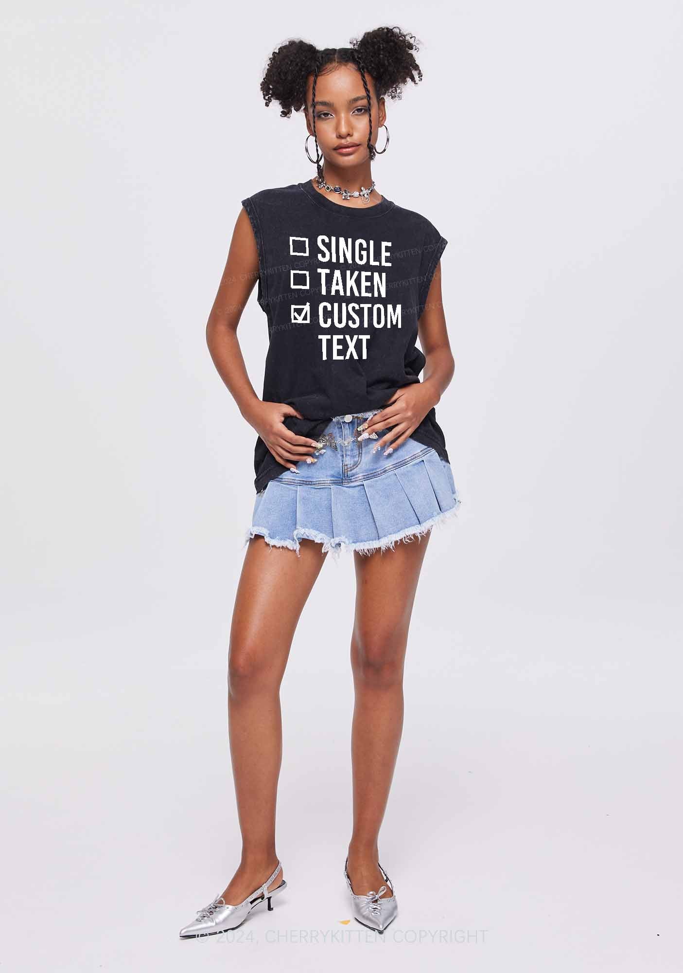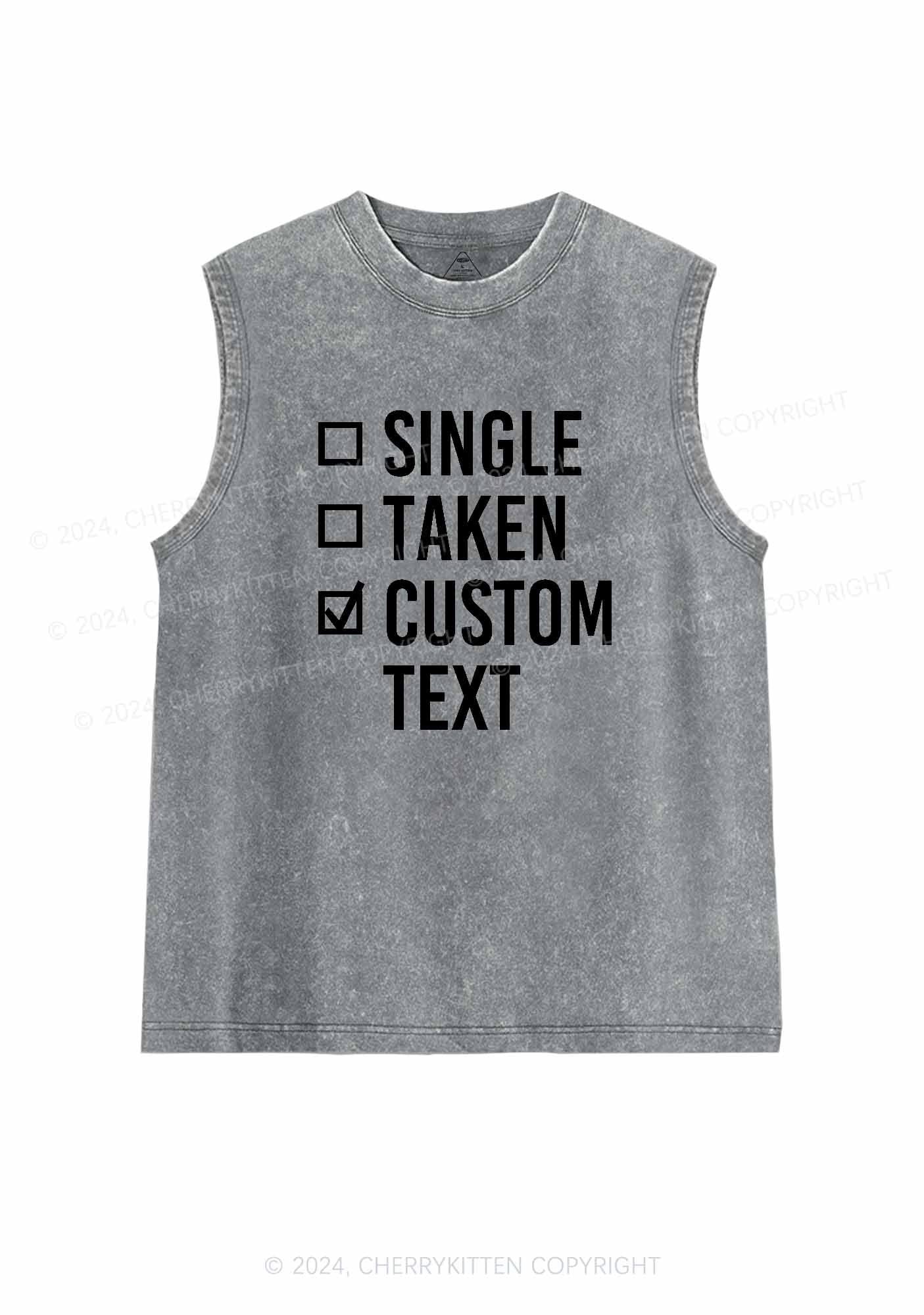 Single Taken Custom Text Y2K Valentine's Day Washed Tank Cherrykitten