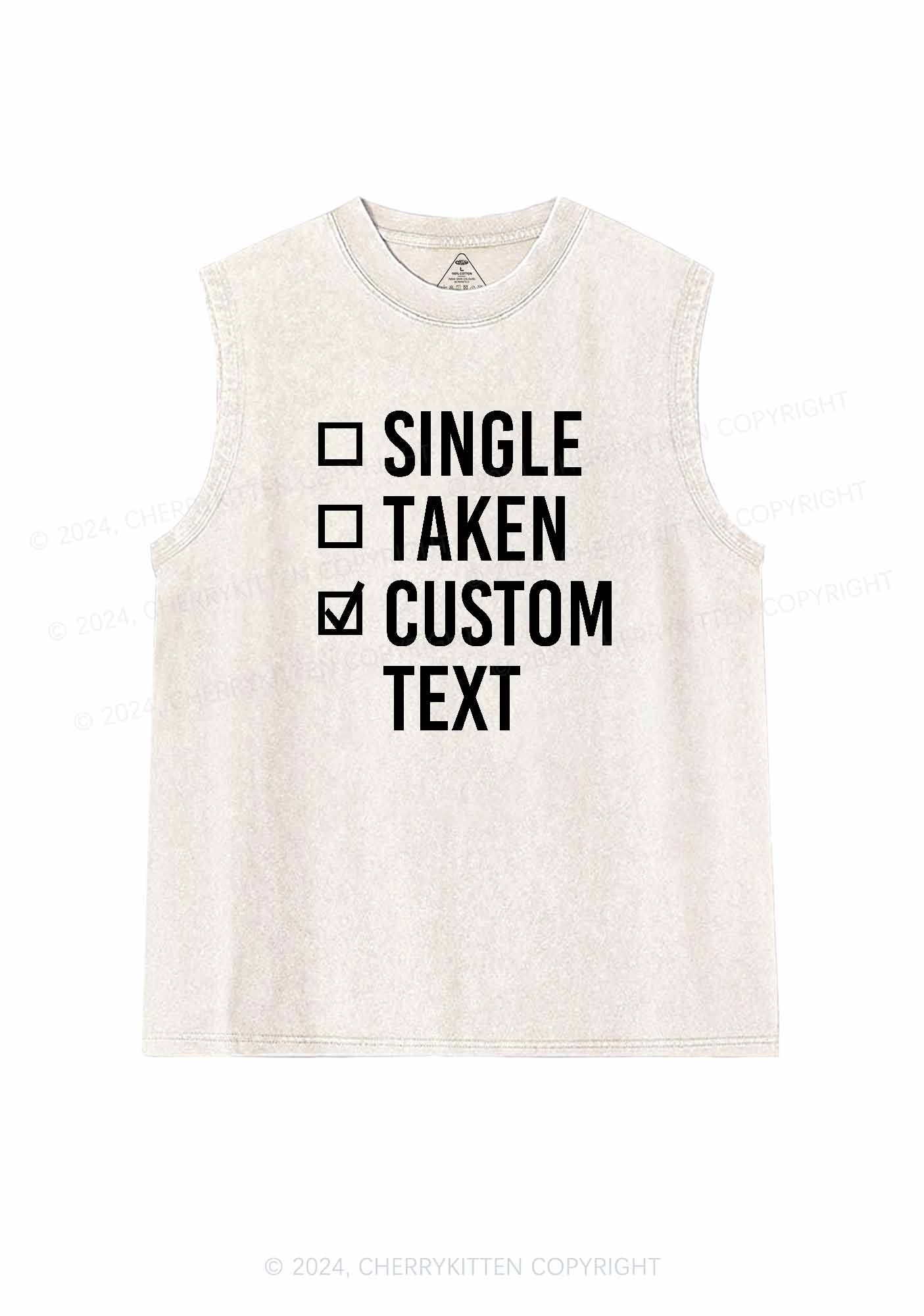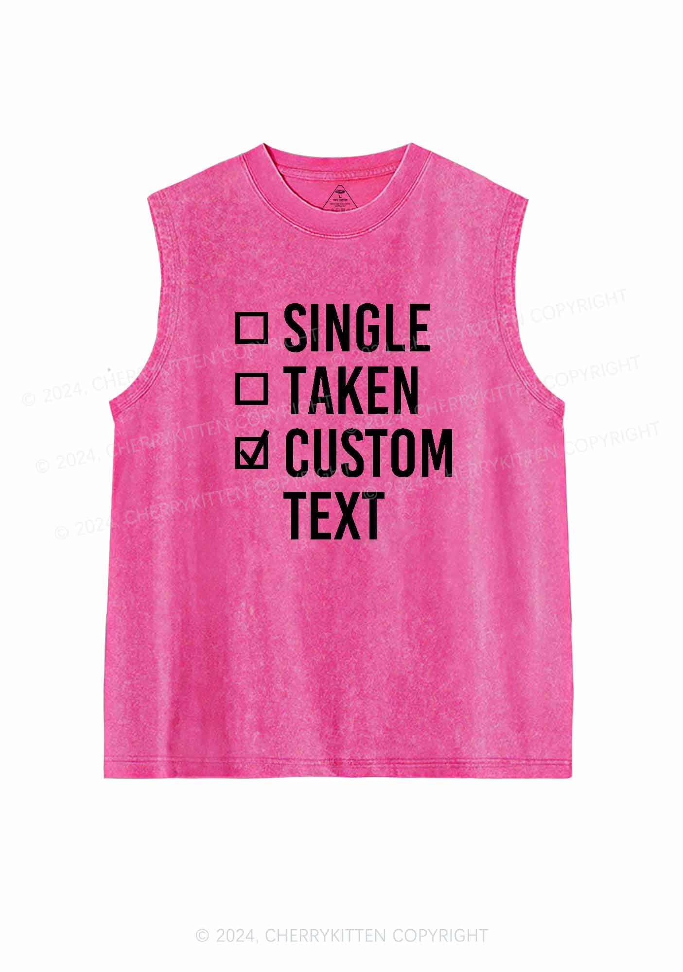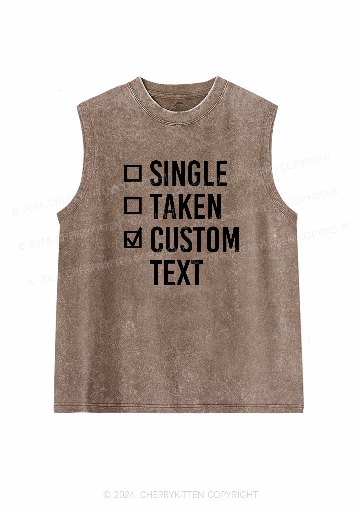 Single Taken Custom Text Y2K Valentine's Day Washed Tank Cherrykitten
