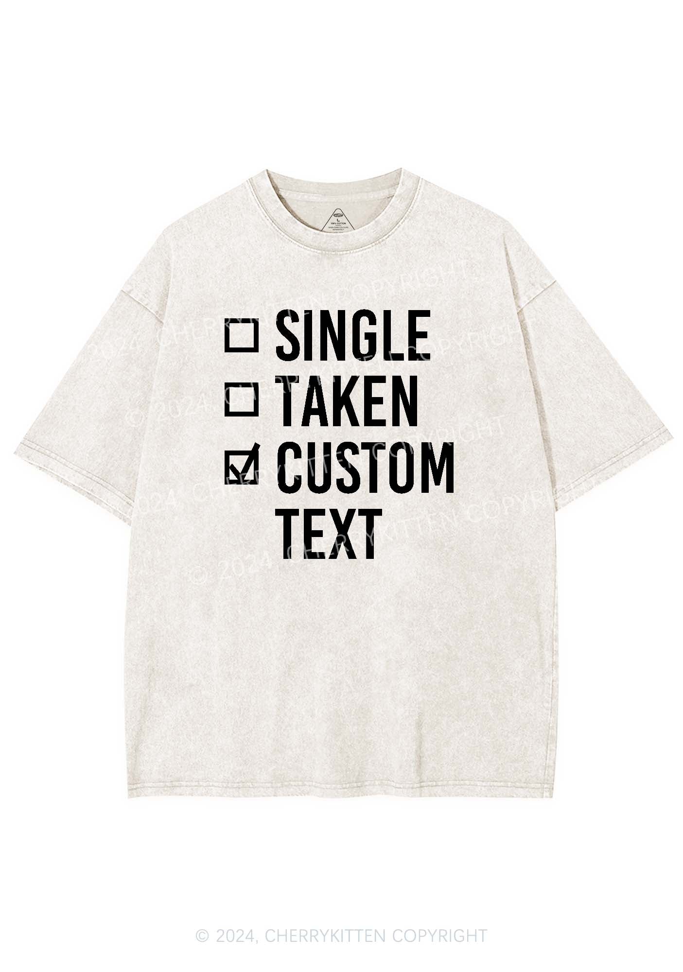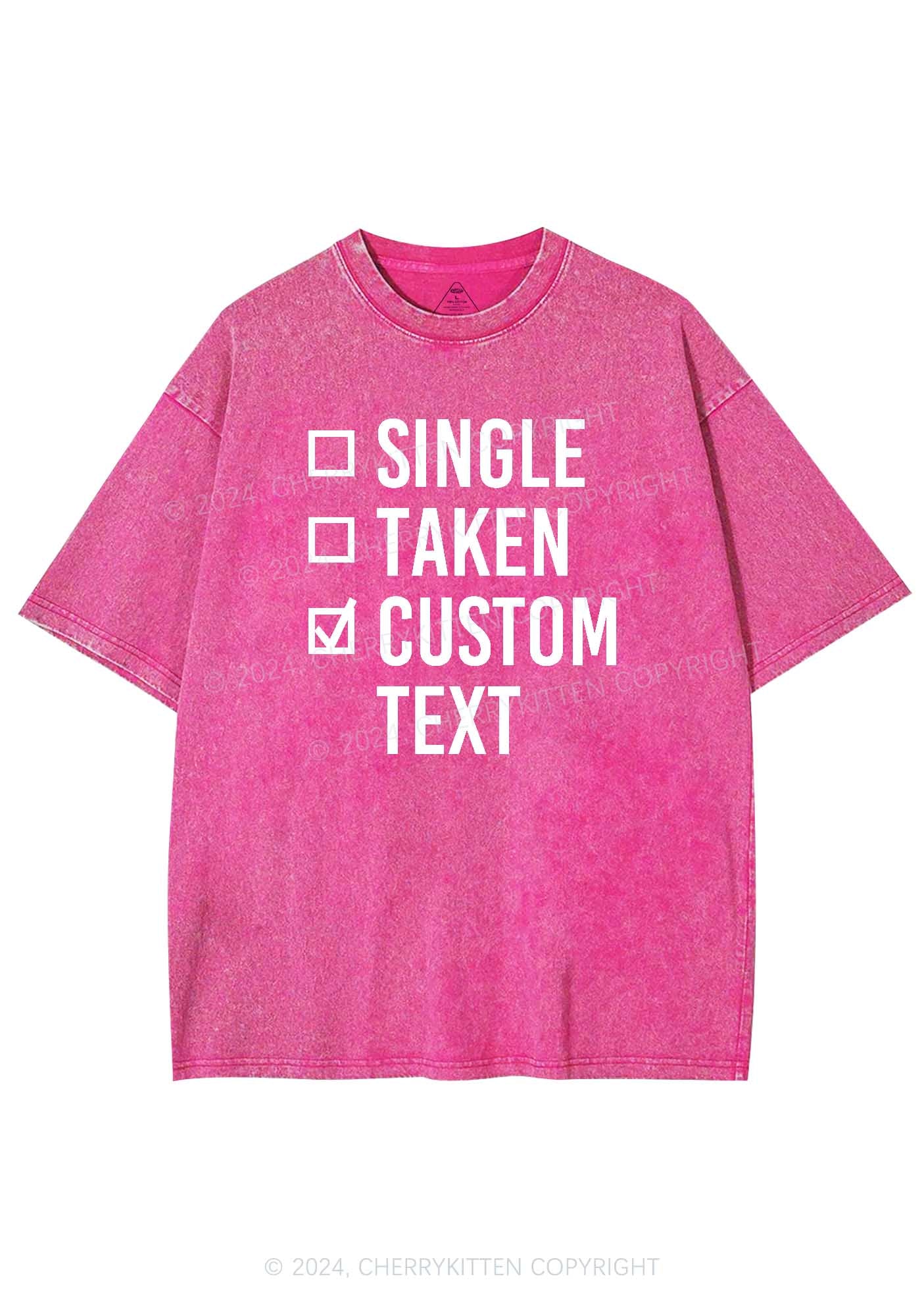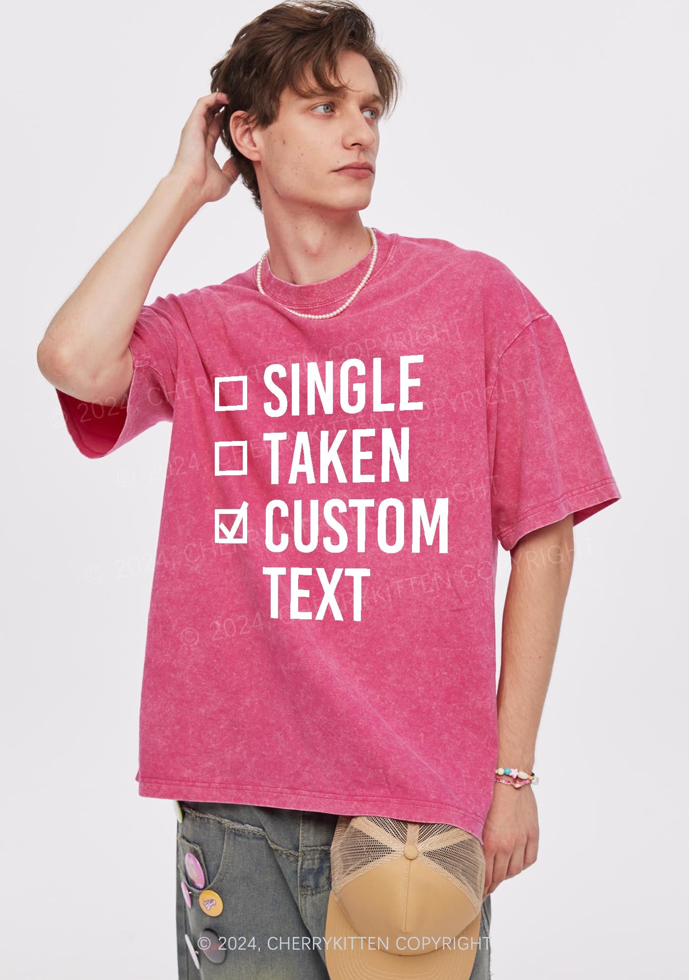 Single Taken Custom Text Y2K Valentine's Day Washed Tee Cherrykitten