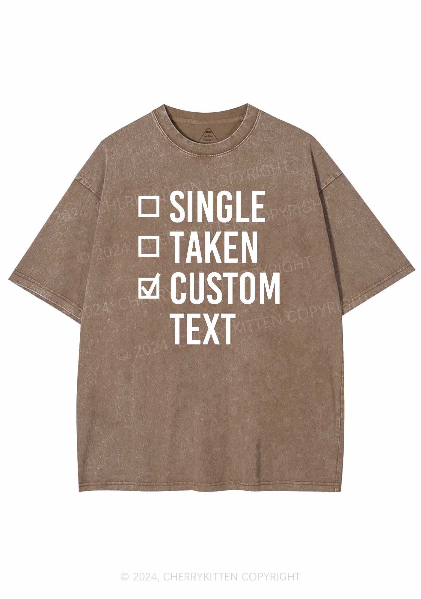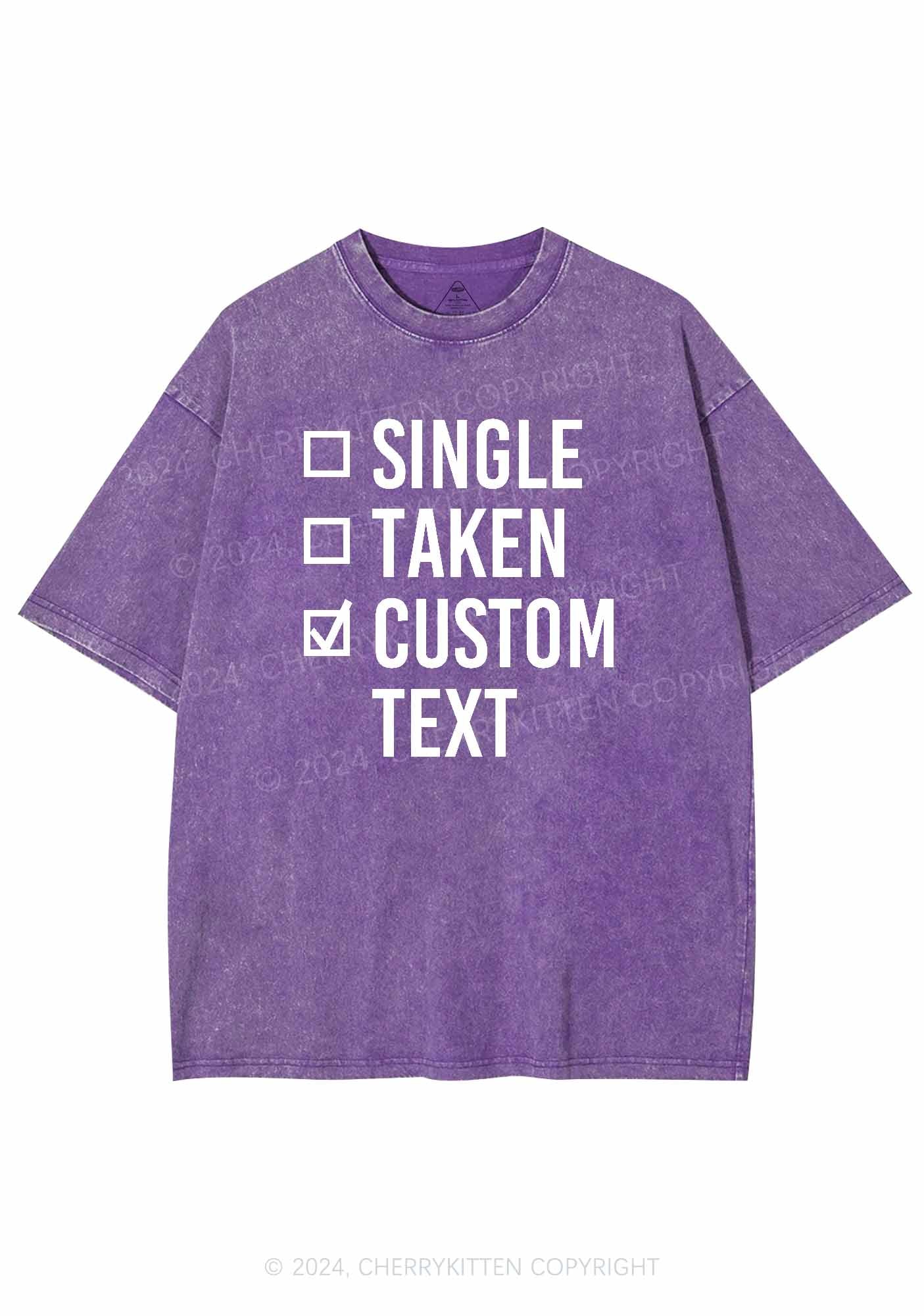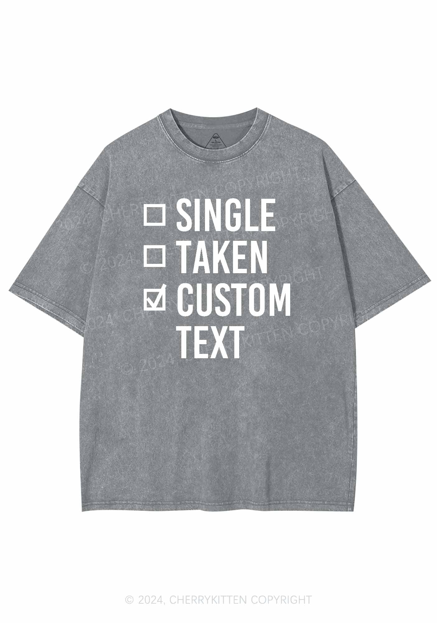 Single Taken Custom Text Y2K Valentine's Day Washed Tee Cherrykitten