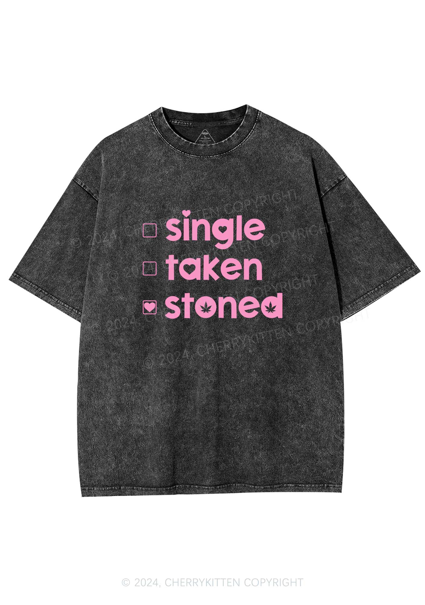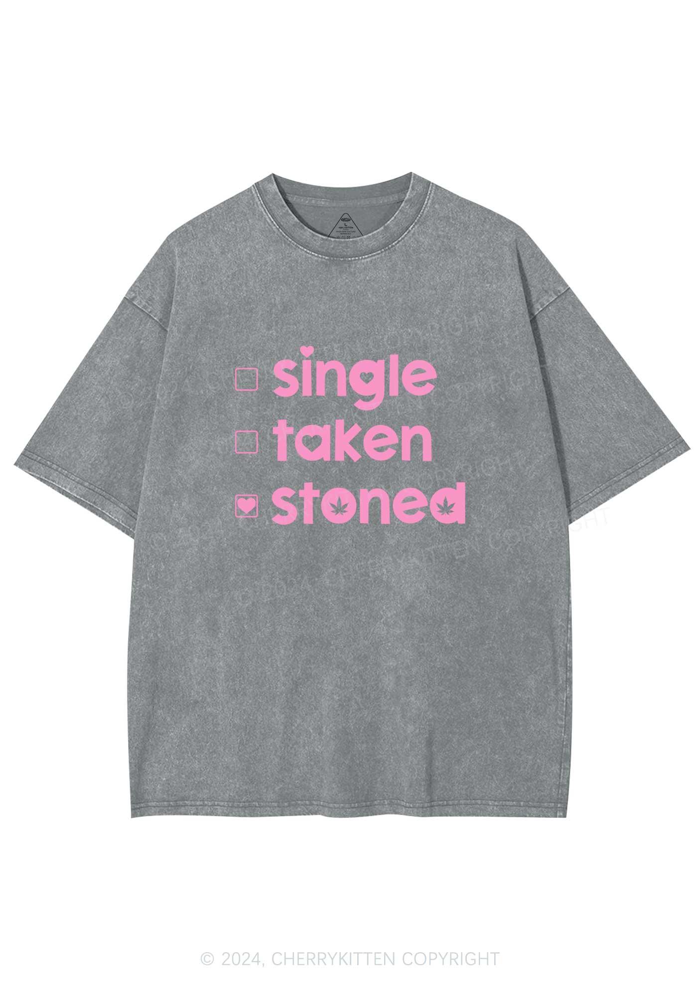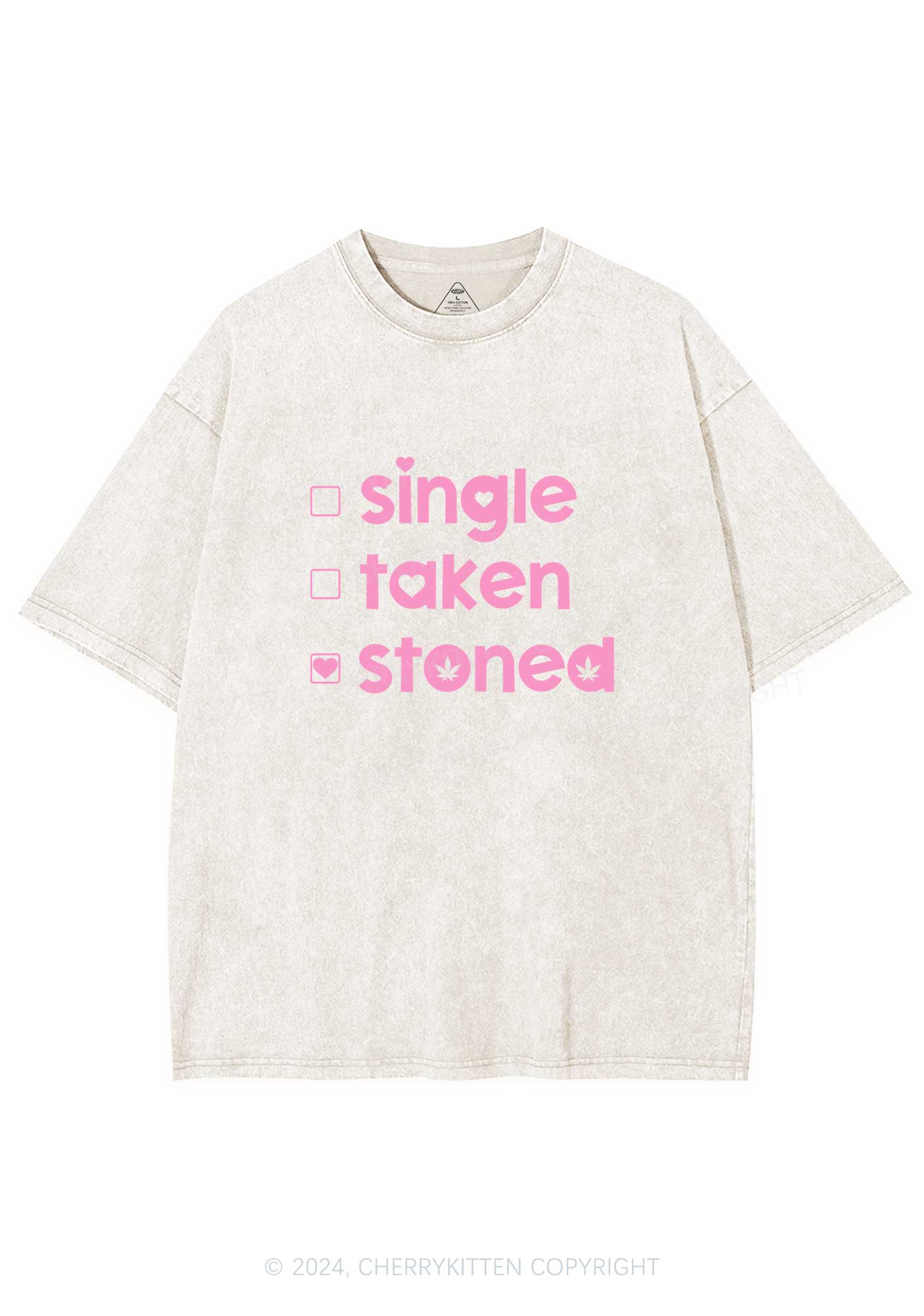 Single Taken Stoned Y2K Valentine's Day Washed Tee Cherrykitten