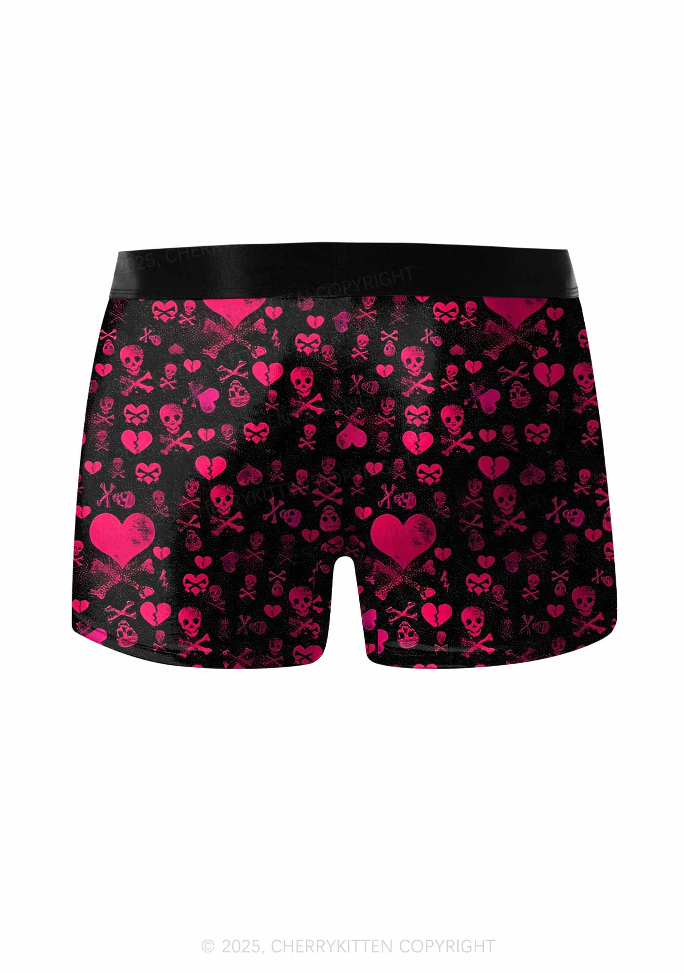 Skeleton Pink Love Valentine's Day Y2K Print Couples Boxer Thong Set Cherrykitten
