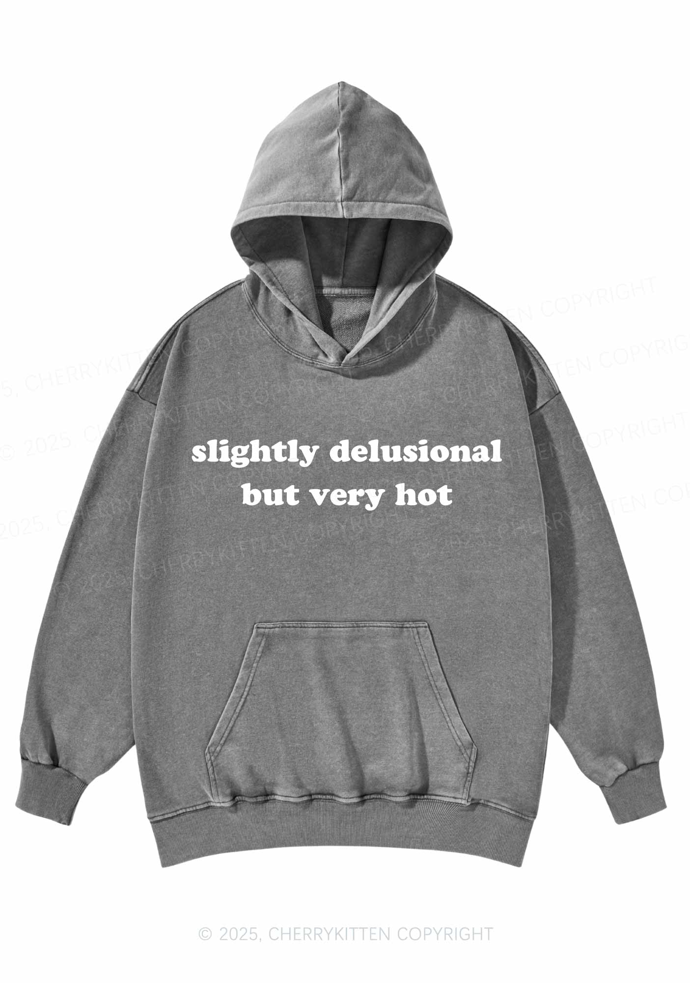 Slightly Delusional But Very Hot Y2K Washed Hoodie Cherrykitten