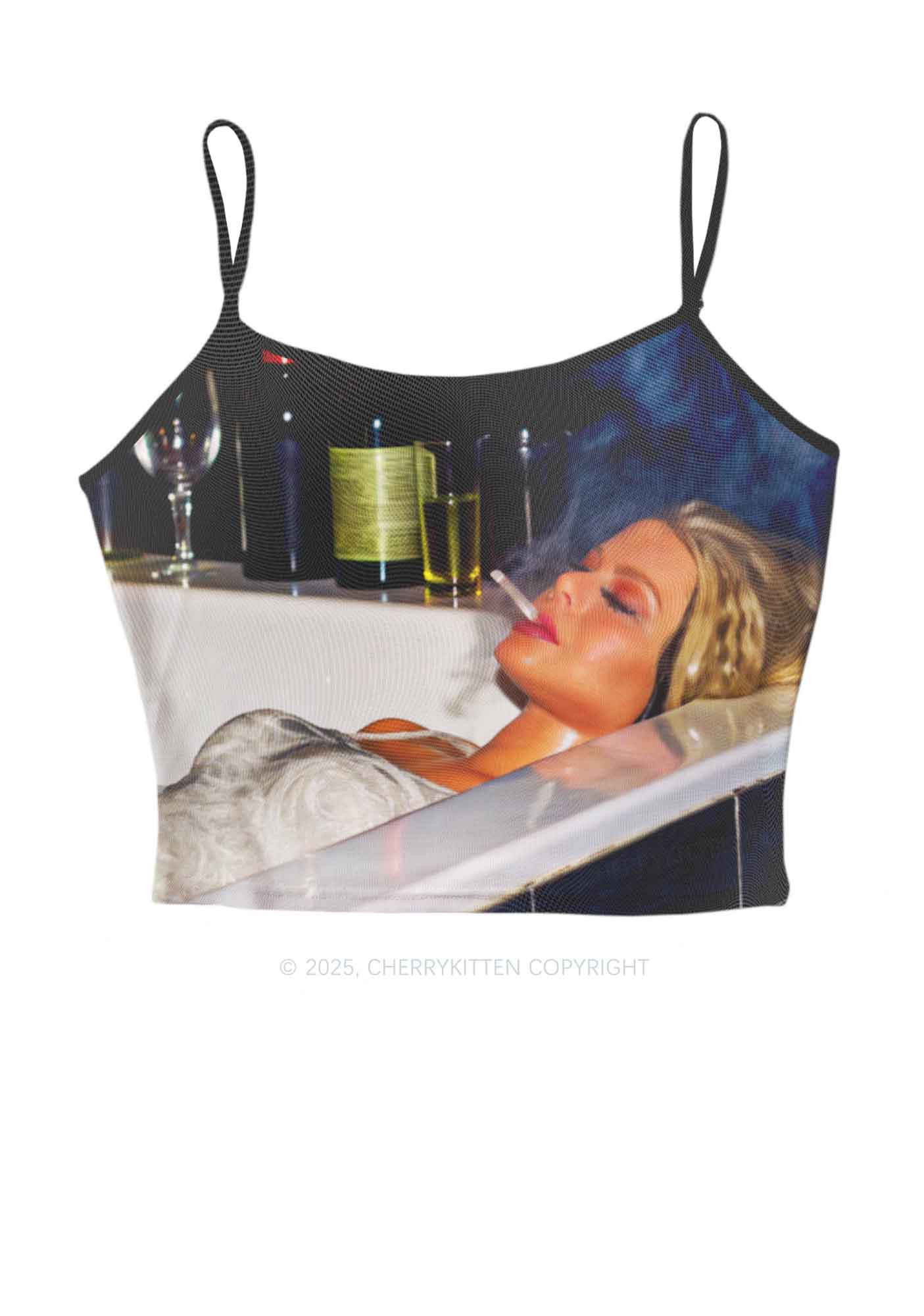 Smoking Woman Y2K Mesh Cami Tank Cherrykitten