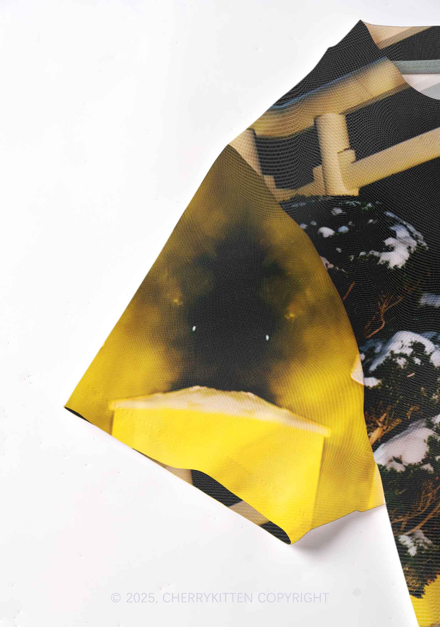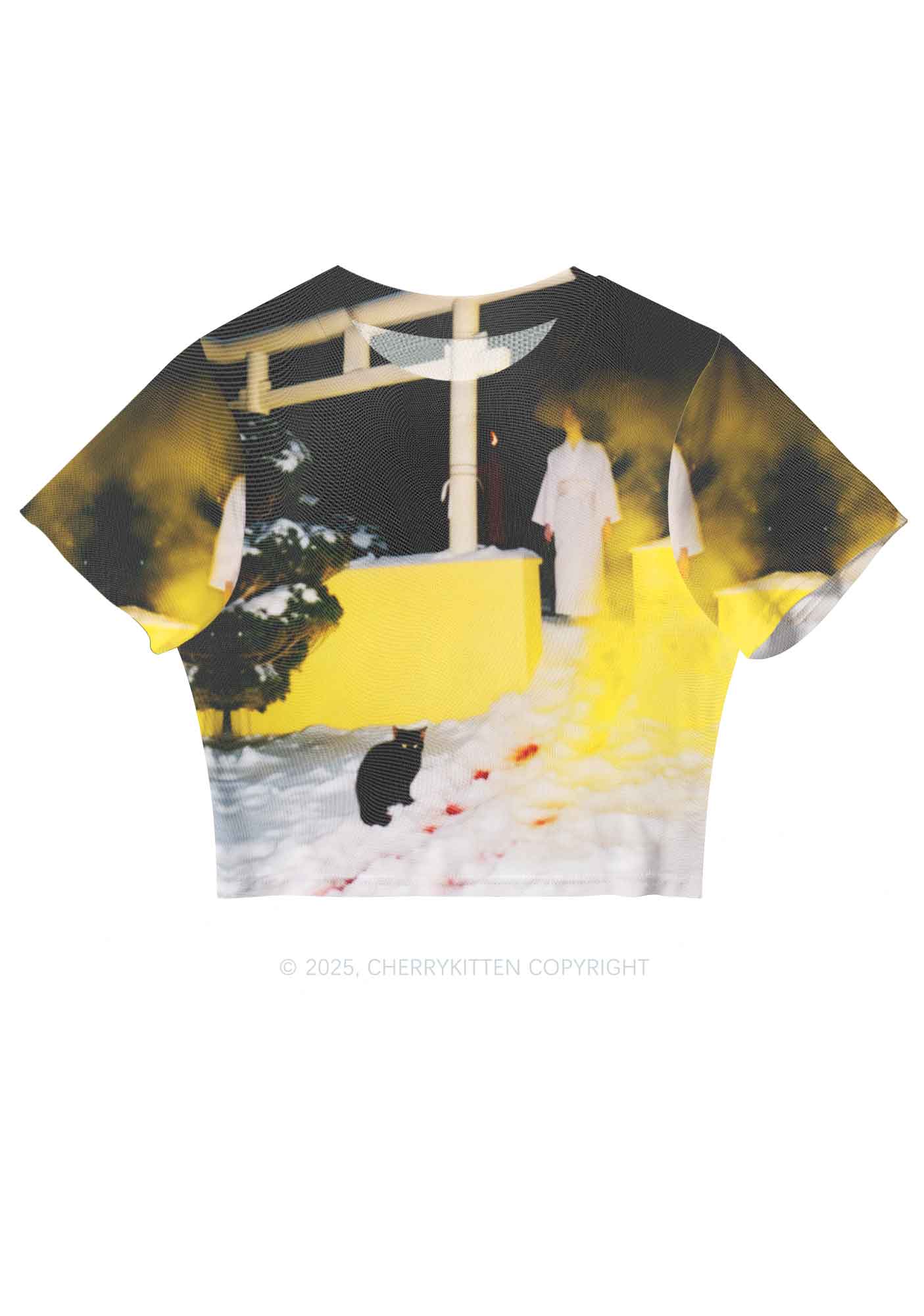 Snow Cat Y2K Mesh Crop Top Cherrykitten