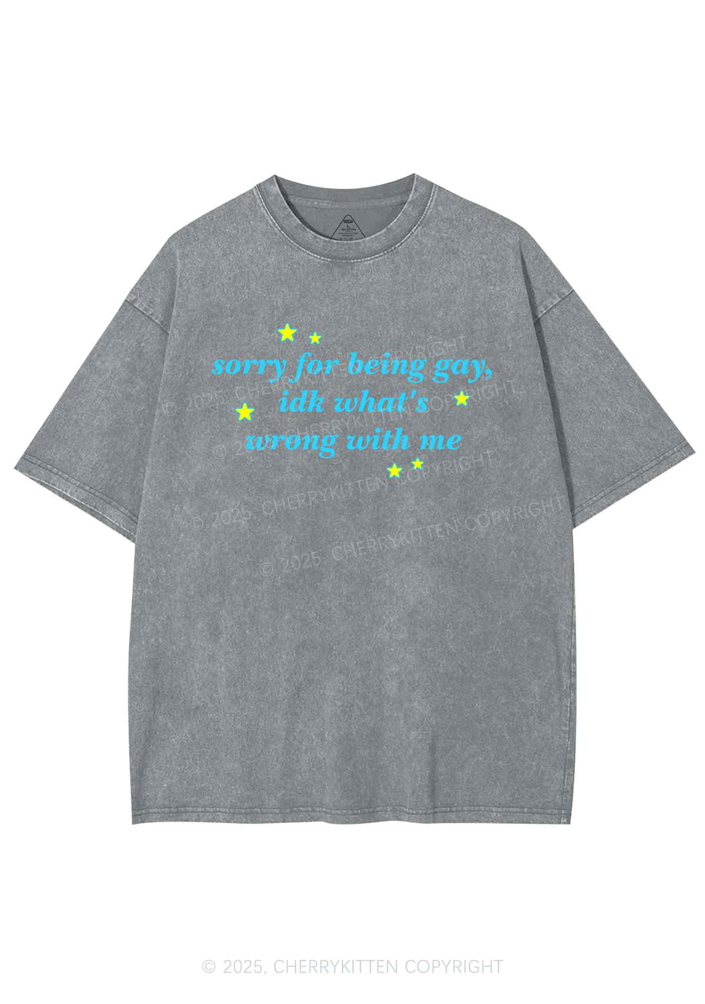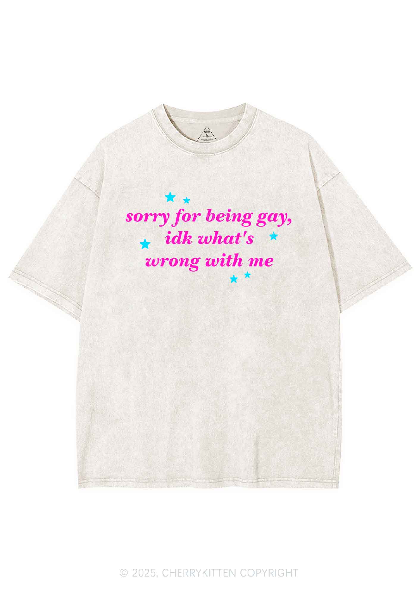 Sorry For Being Gay Pride Y2K Shirts Washed Tee Cherrykitten