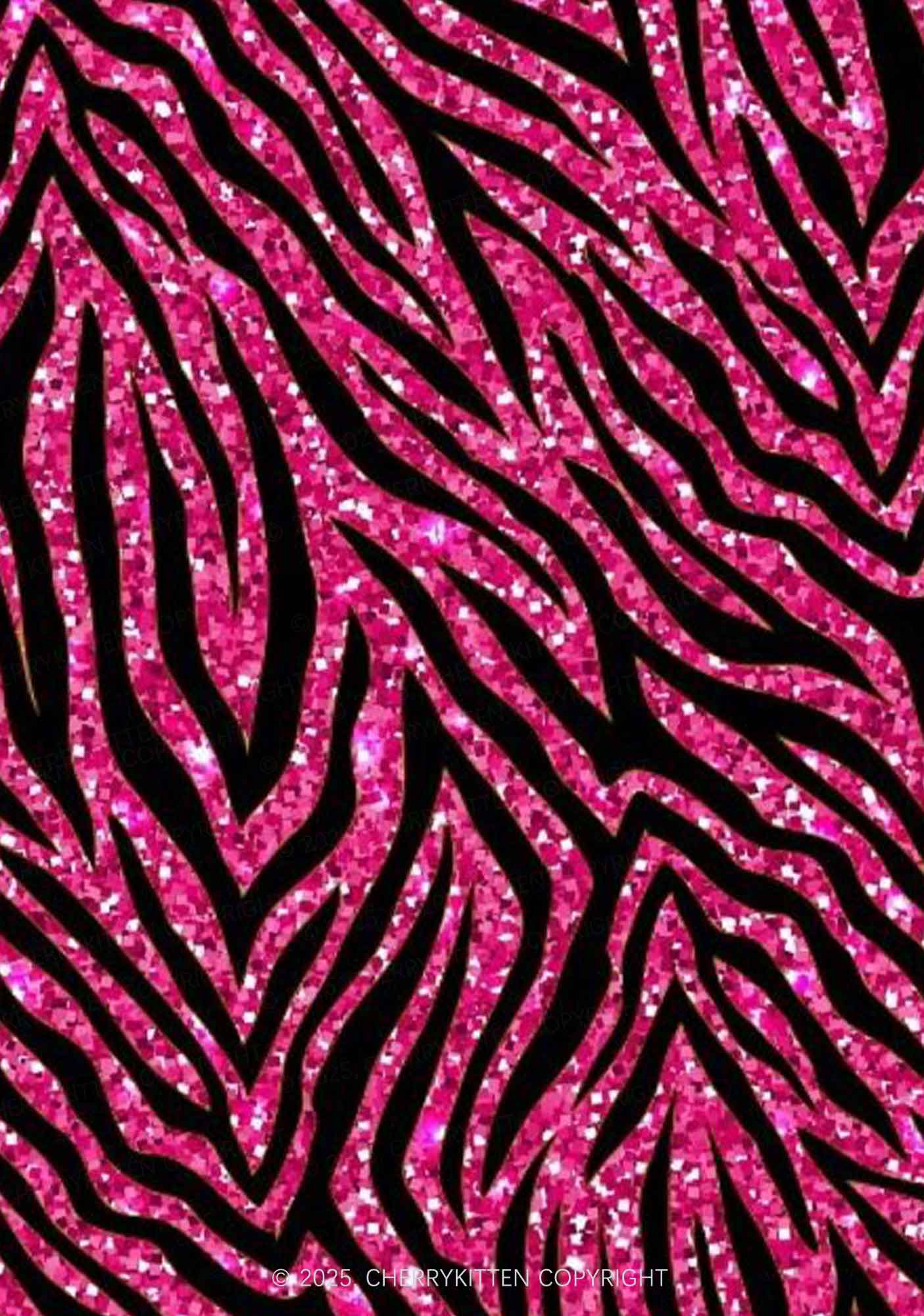 Sparkly Pink Zebra Y2K Print Mini Layered Skirt Cherrykitten
