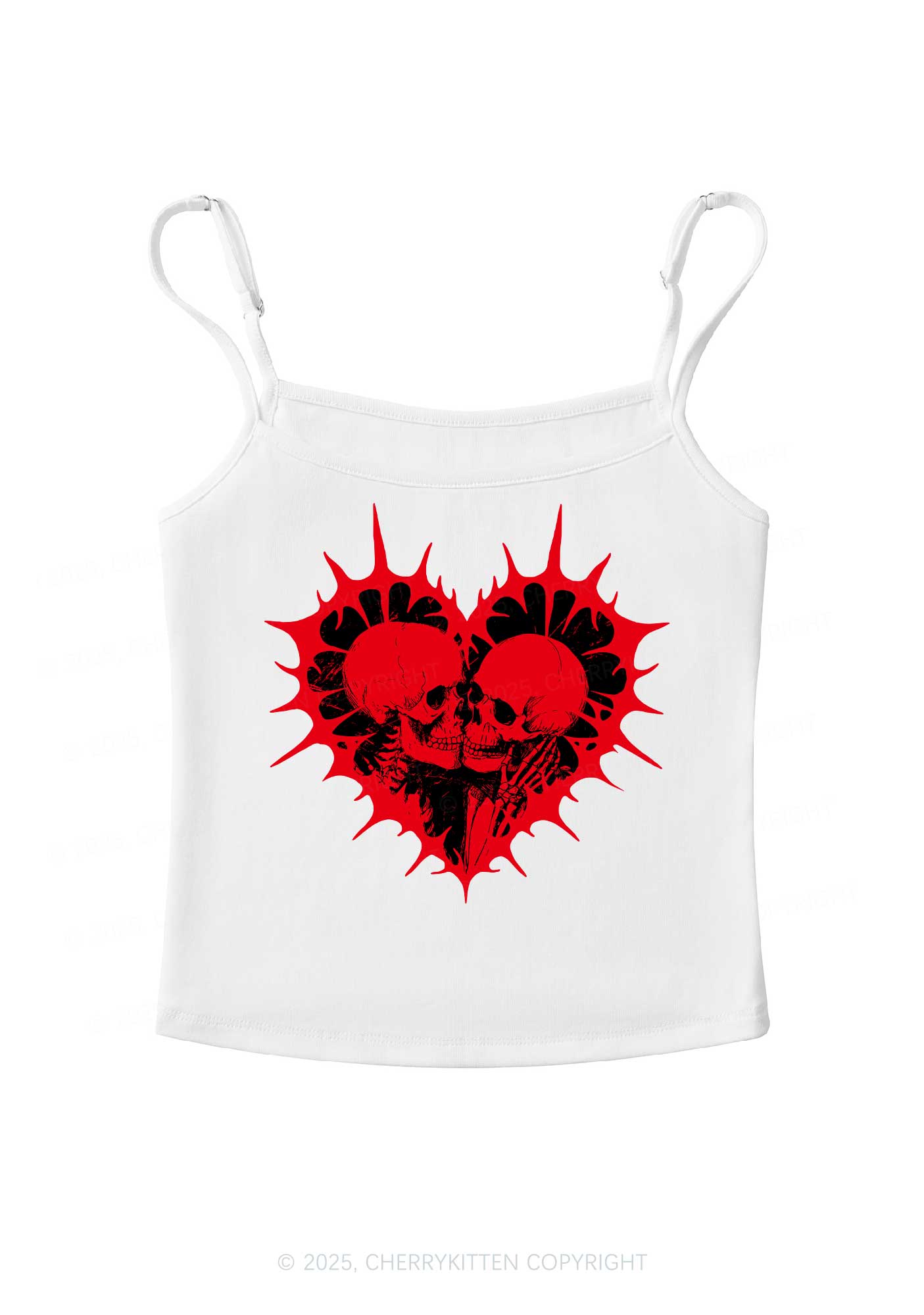 Spiked Heart Skulls Valentine's Day Y2K Spaghetti Strap Cami Cherrykitten