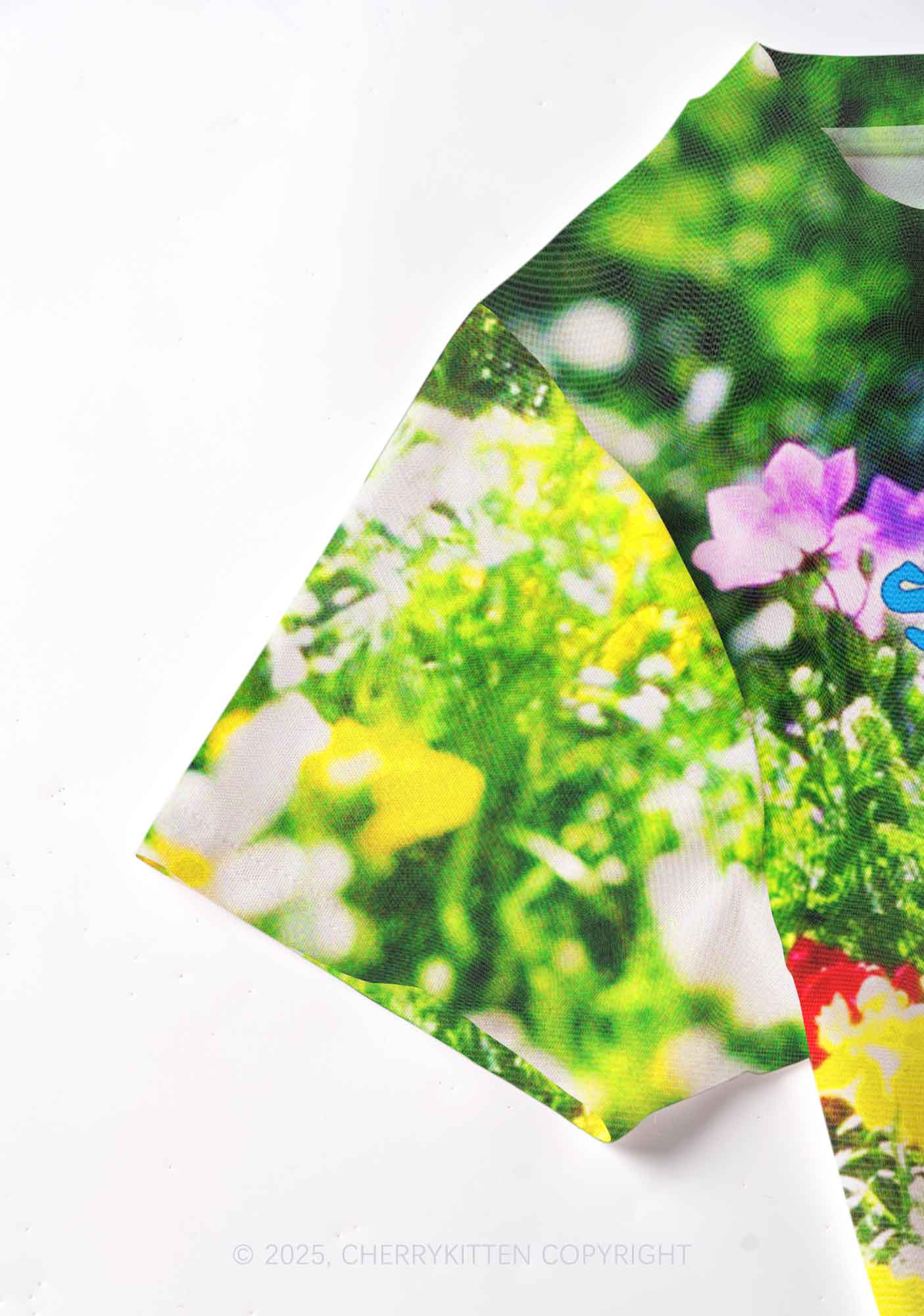 Spring Has Gone Y2K Mesh Crop Top Cherrykitten