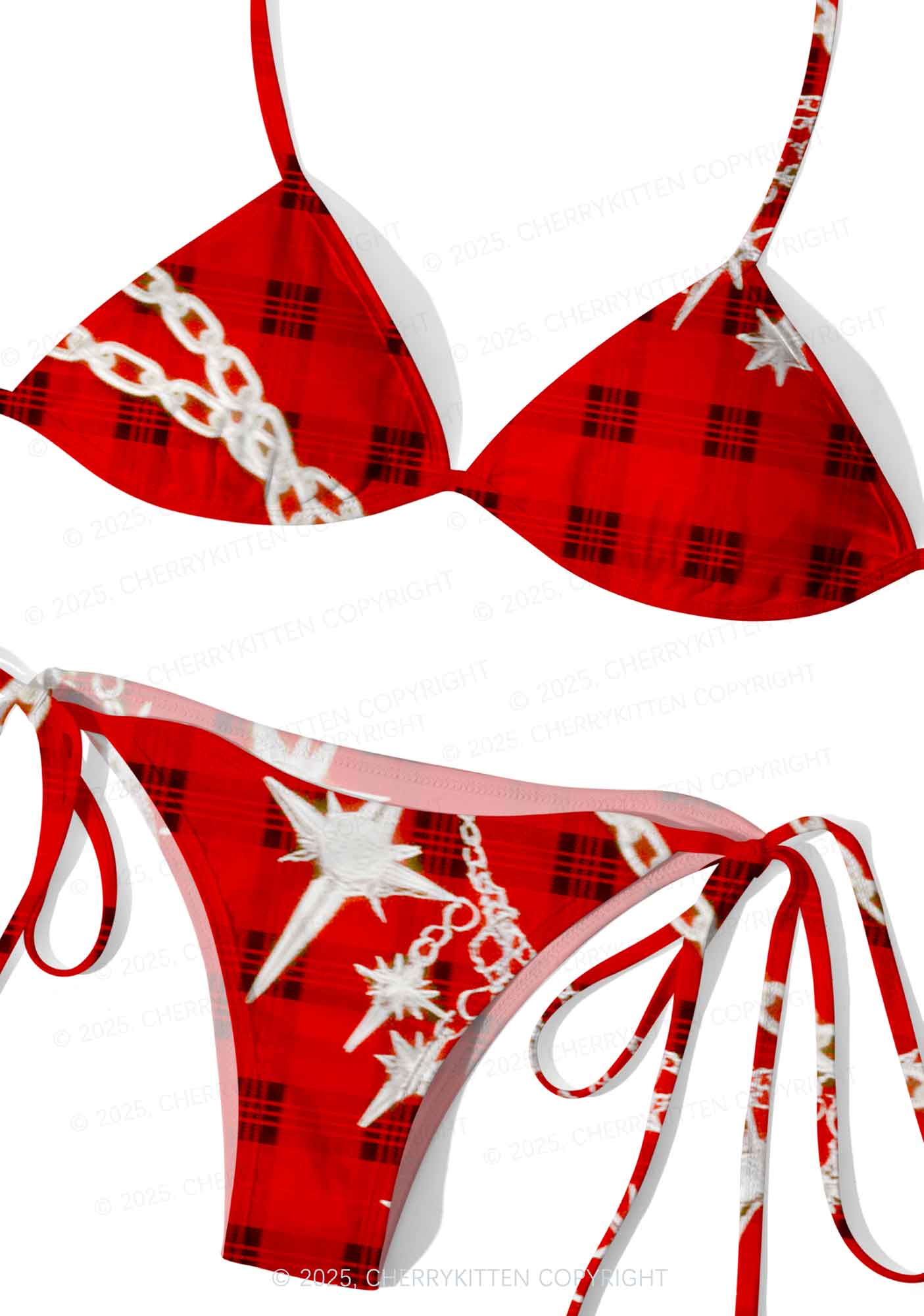 Star Chain Black Pattern Y2K Print Bikini Set Cherrykitten