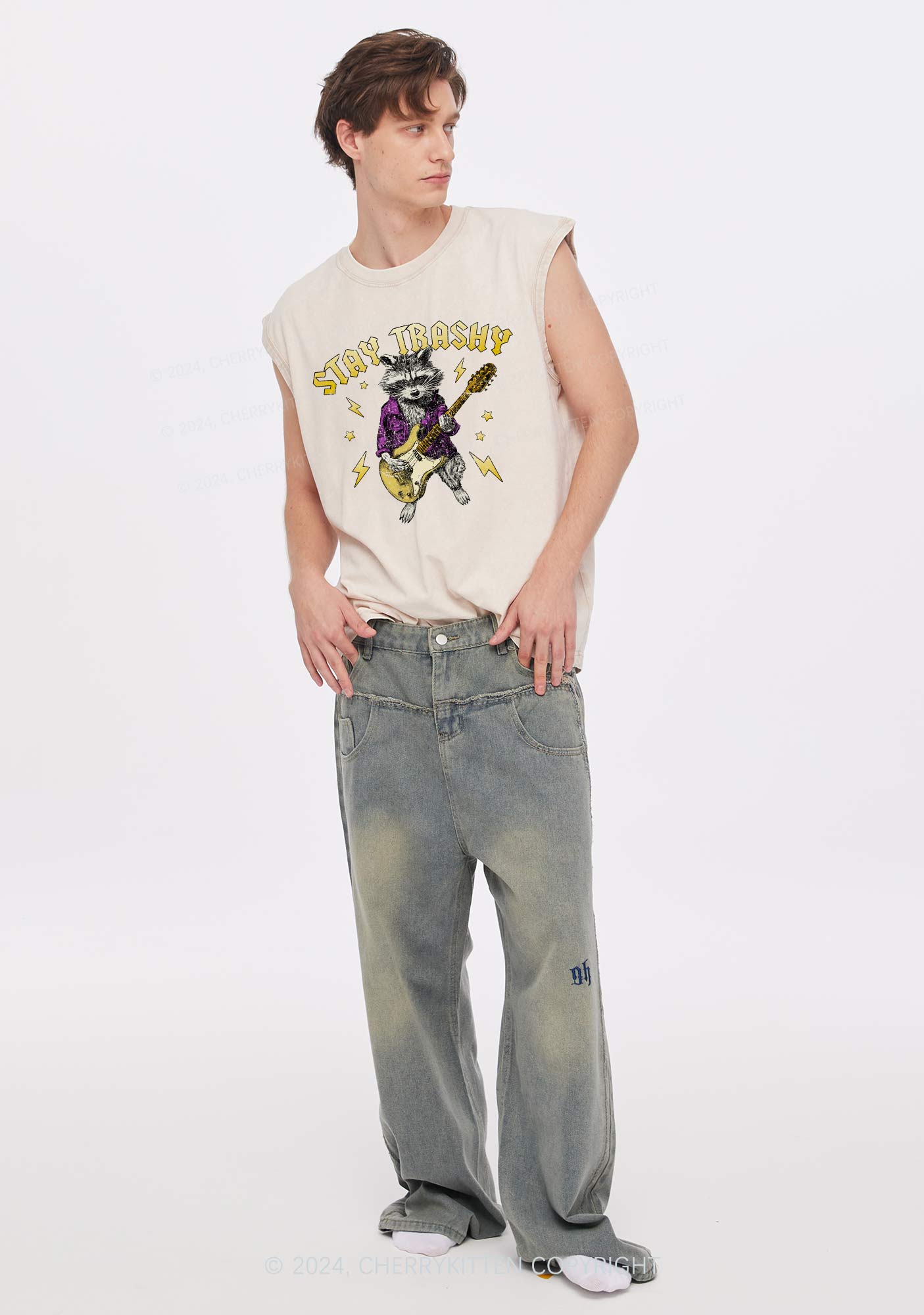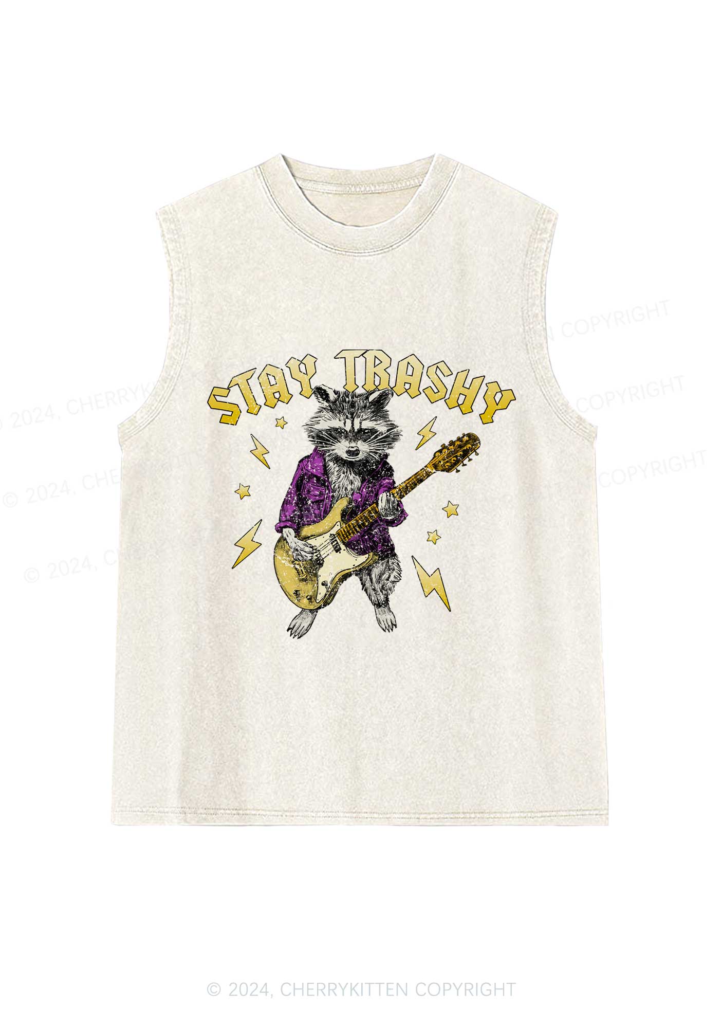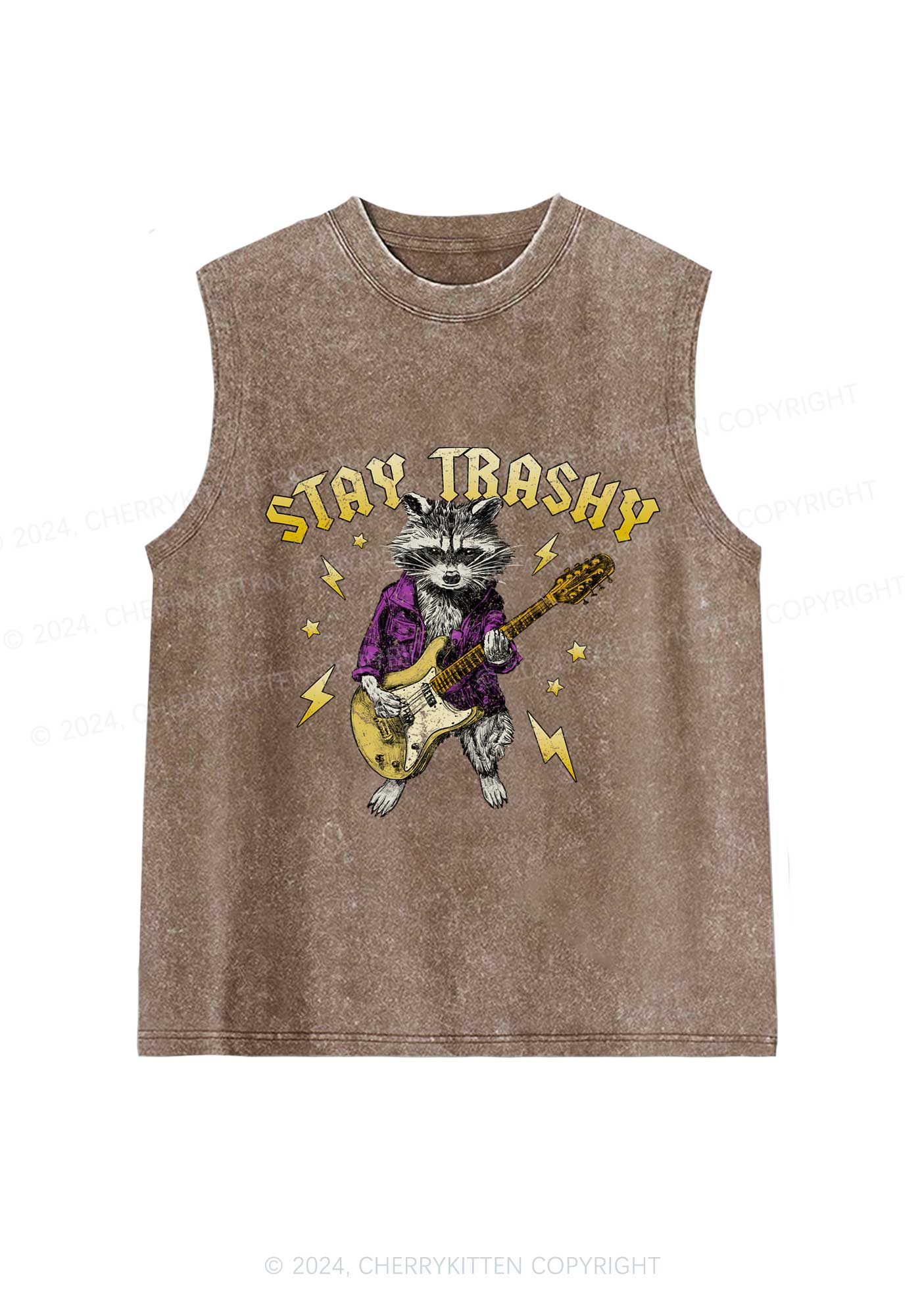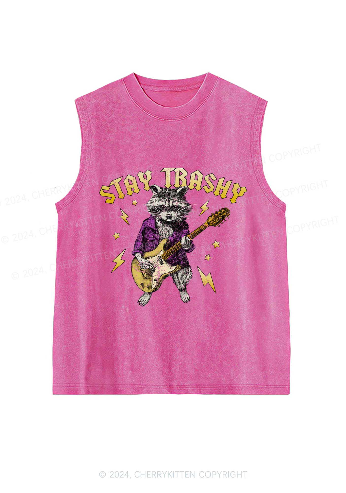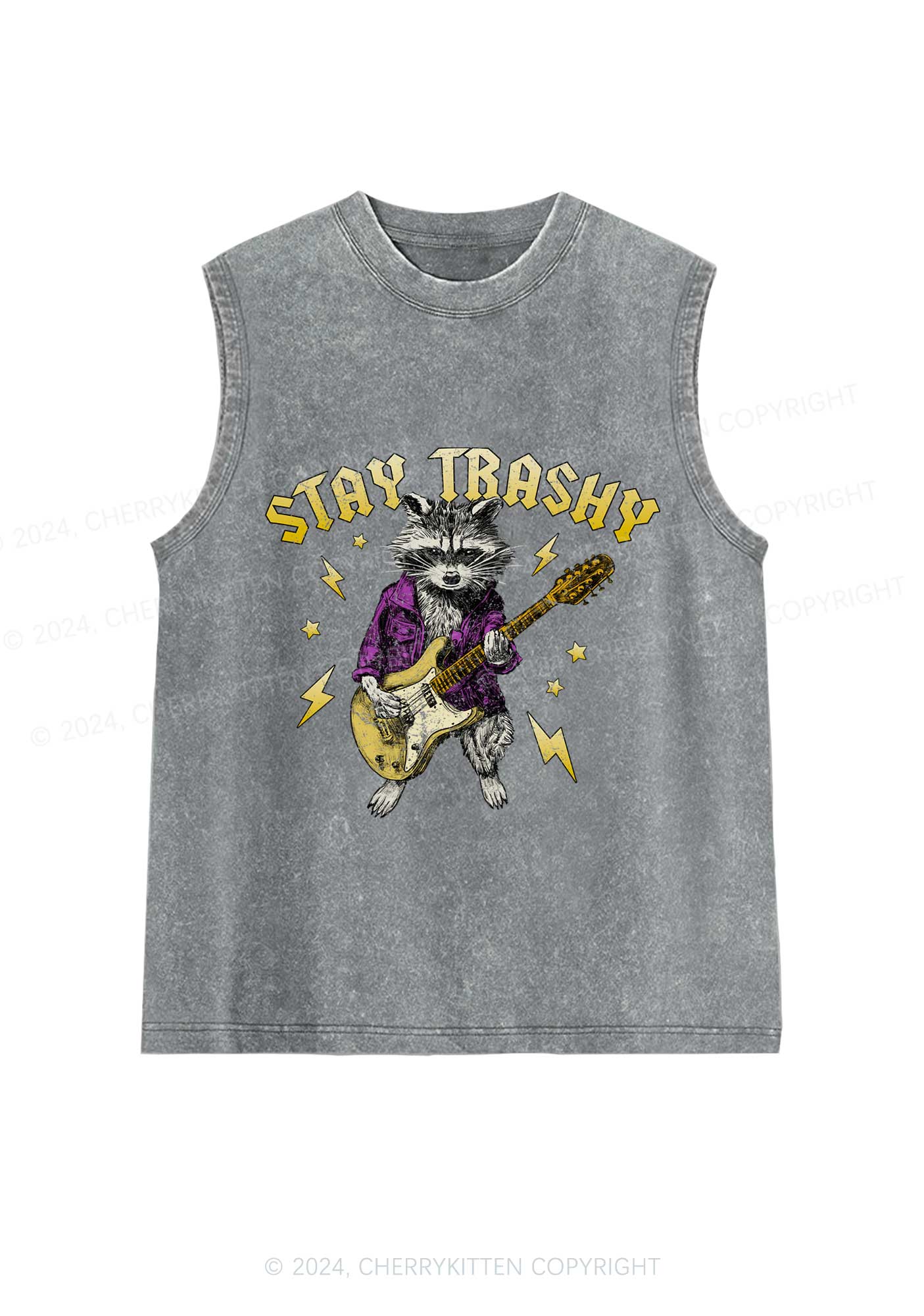 Stay Trashy Guitar Raccoon Y2K Washed Tank Cherrykitten