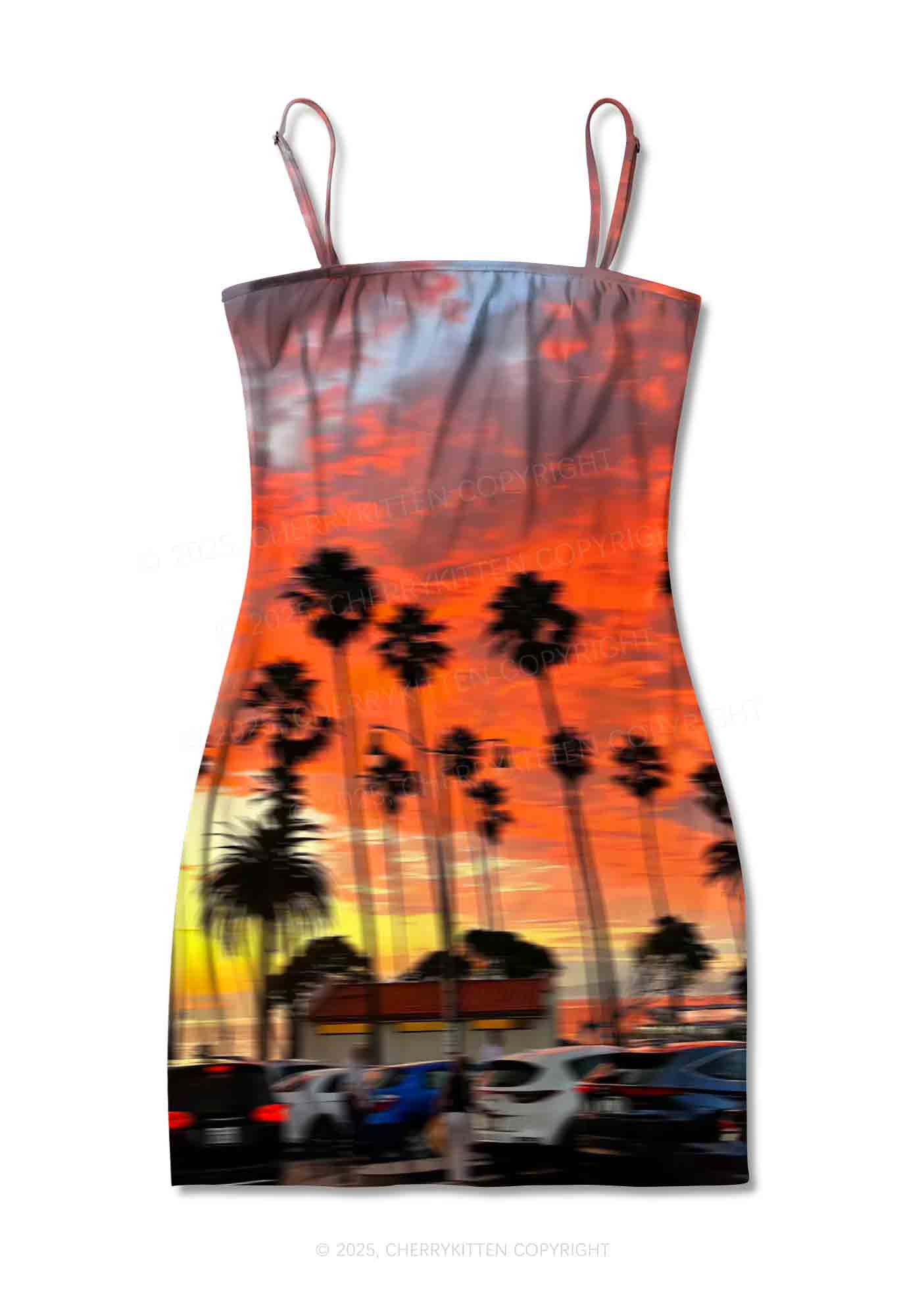 Sunset Palms Y2K Print Slip Dress Cherrykitten