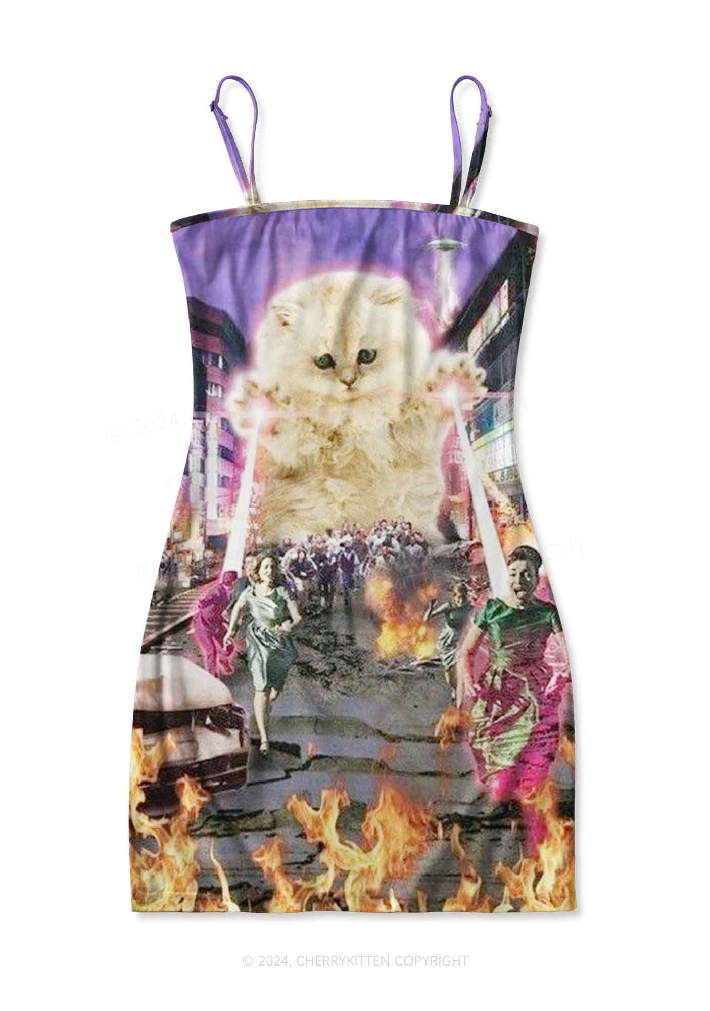 Super Power Kitten Y2K Print Slip Dress Cherrykitten
