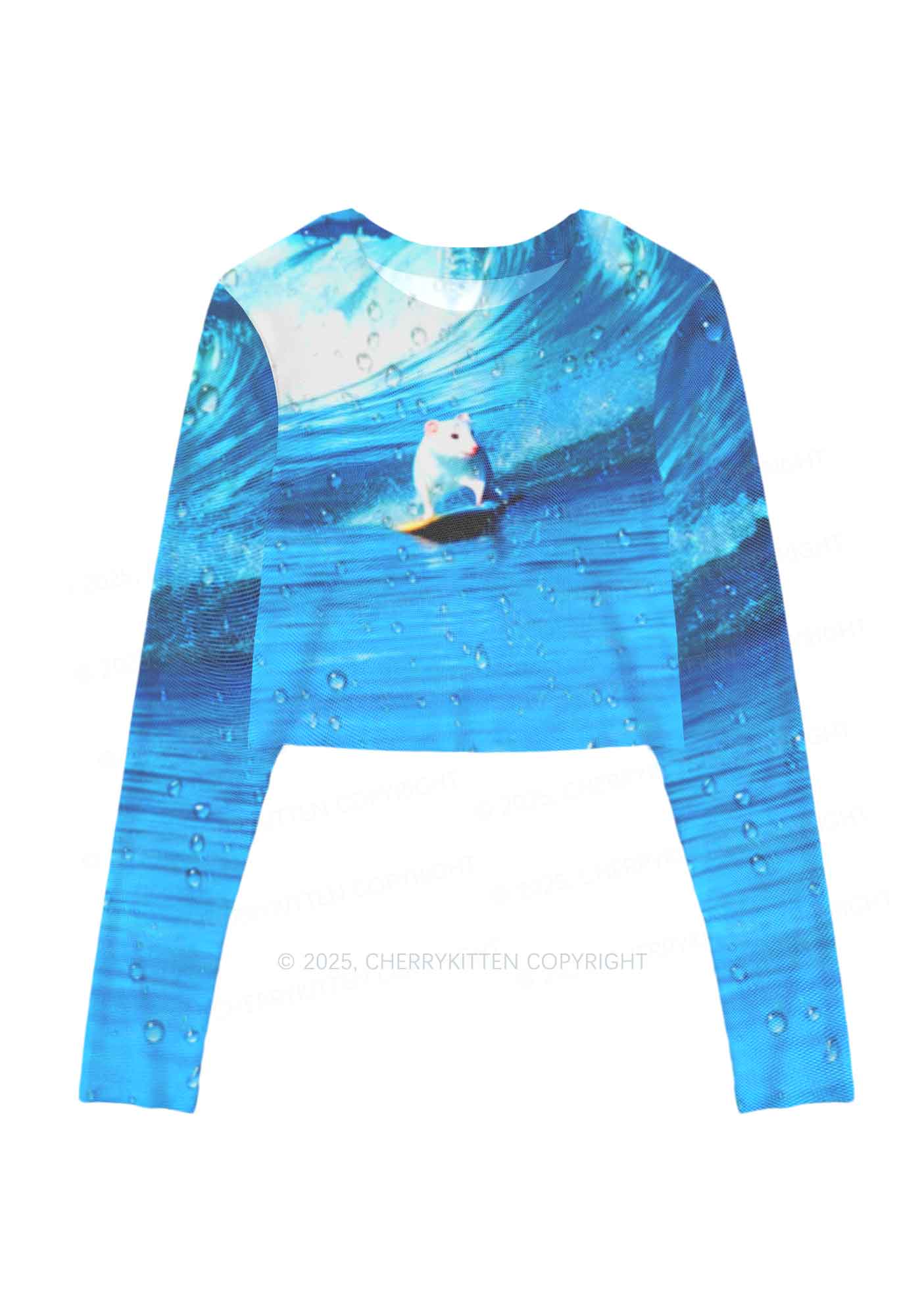 Surfing Mouse Y2K Mesh Long Sleeve Crop Top Cherrykitten
