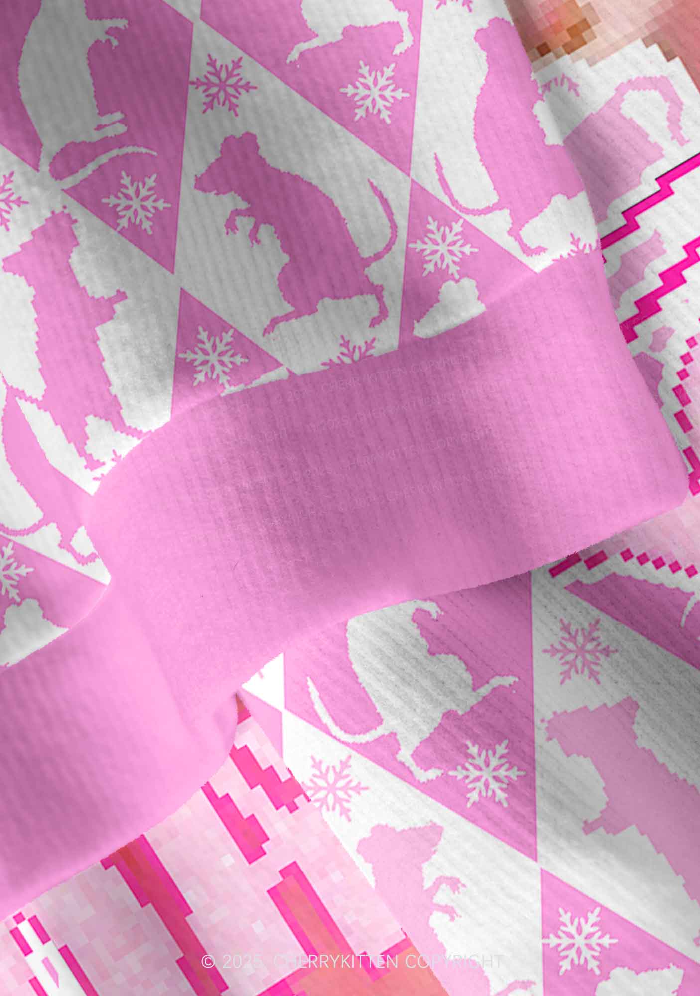 Sweet Pink Ratz Y2K Christmas Cardigan Knit Sweatshirt Cherrykitten