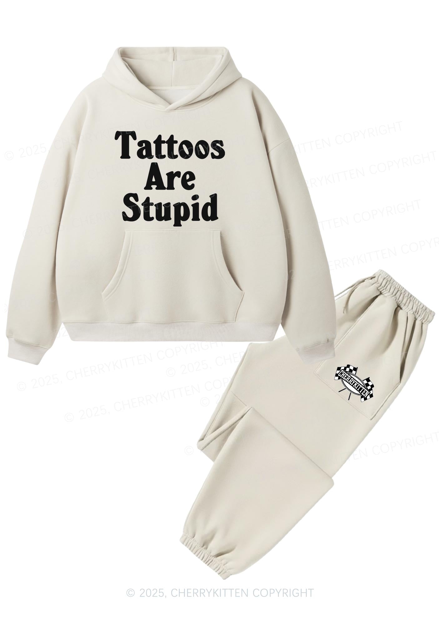 Tattoos Are Stupid Y2K Fleece Hoodie Set Cherrykitten
