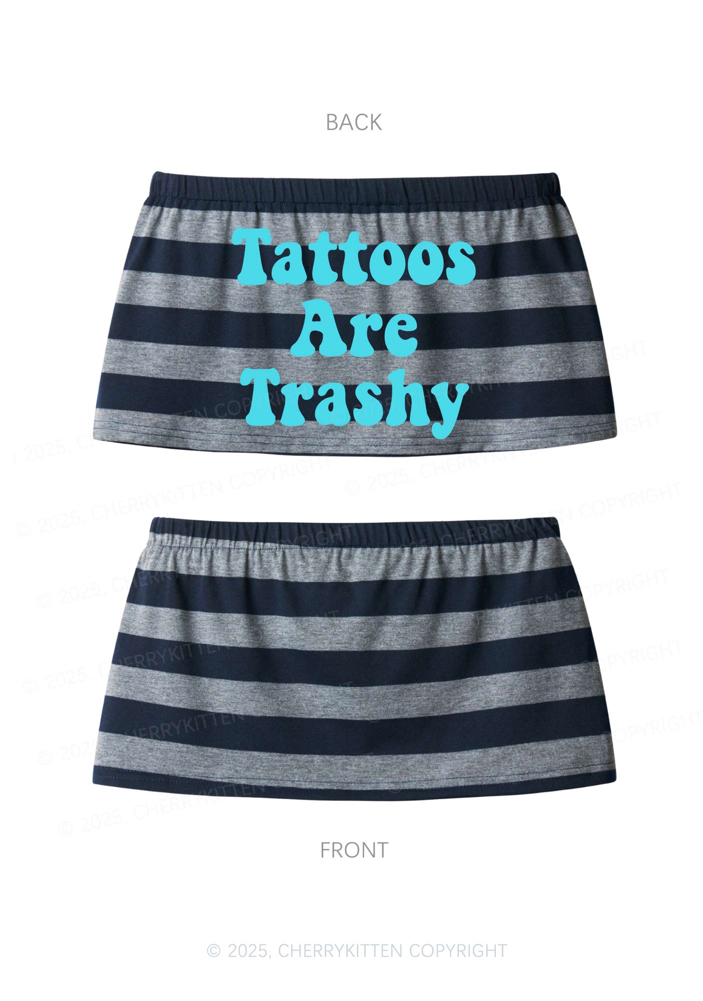 Tattoos Are Trashy Y2K Navy Grey Striped Mini Skirt Cherrykitten