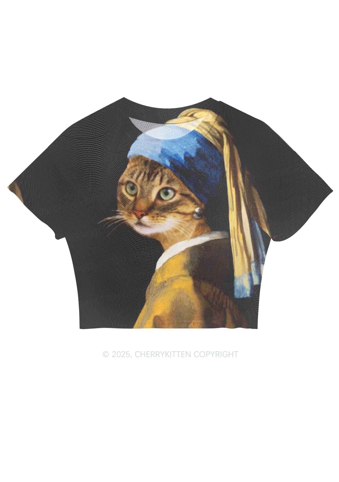 The Lady Cat Y2K Mesh Crop Top Cherrykitten