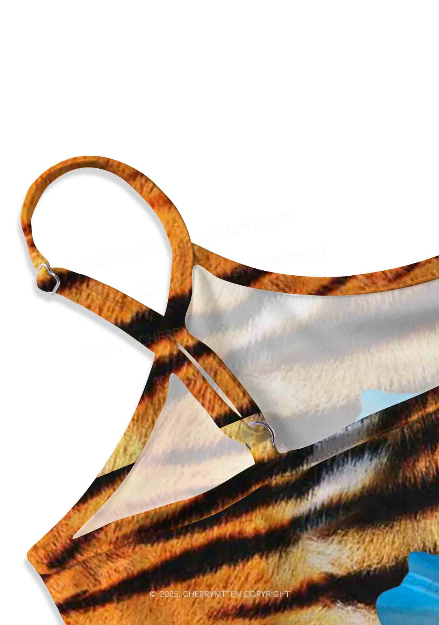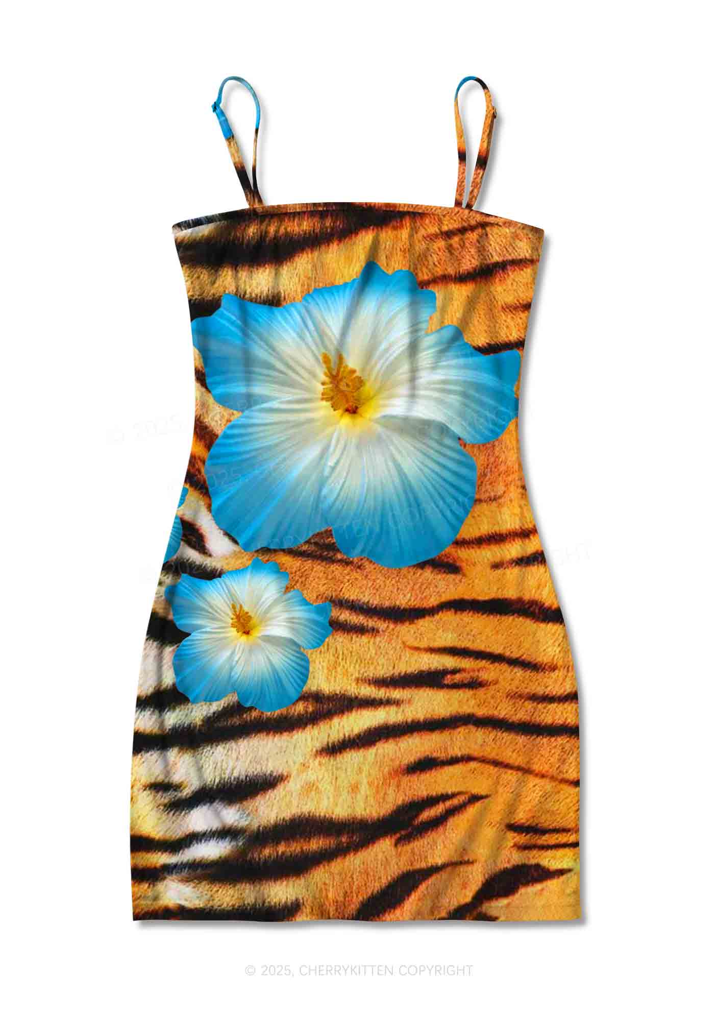 Tiger With Flowers Y2K Print Slip Dress Cherrykitten