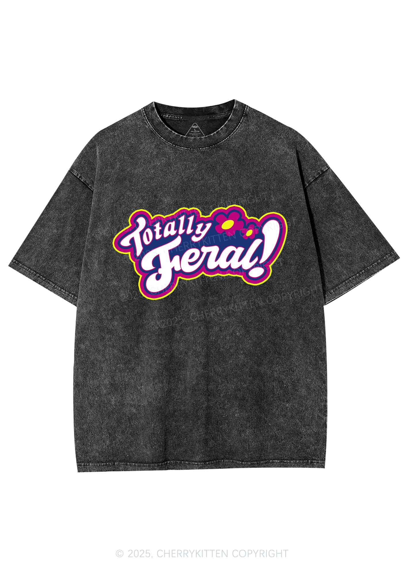 Totally Feral Y2K Shirts Washed Tee Cherrykitten