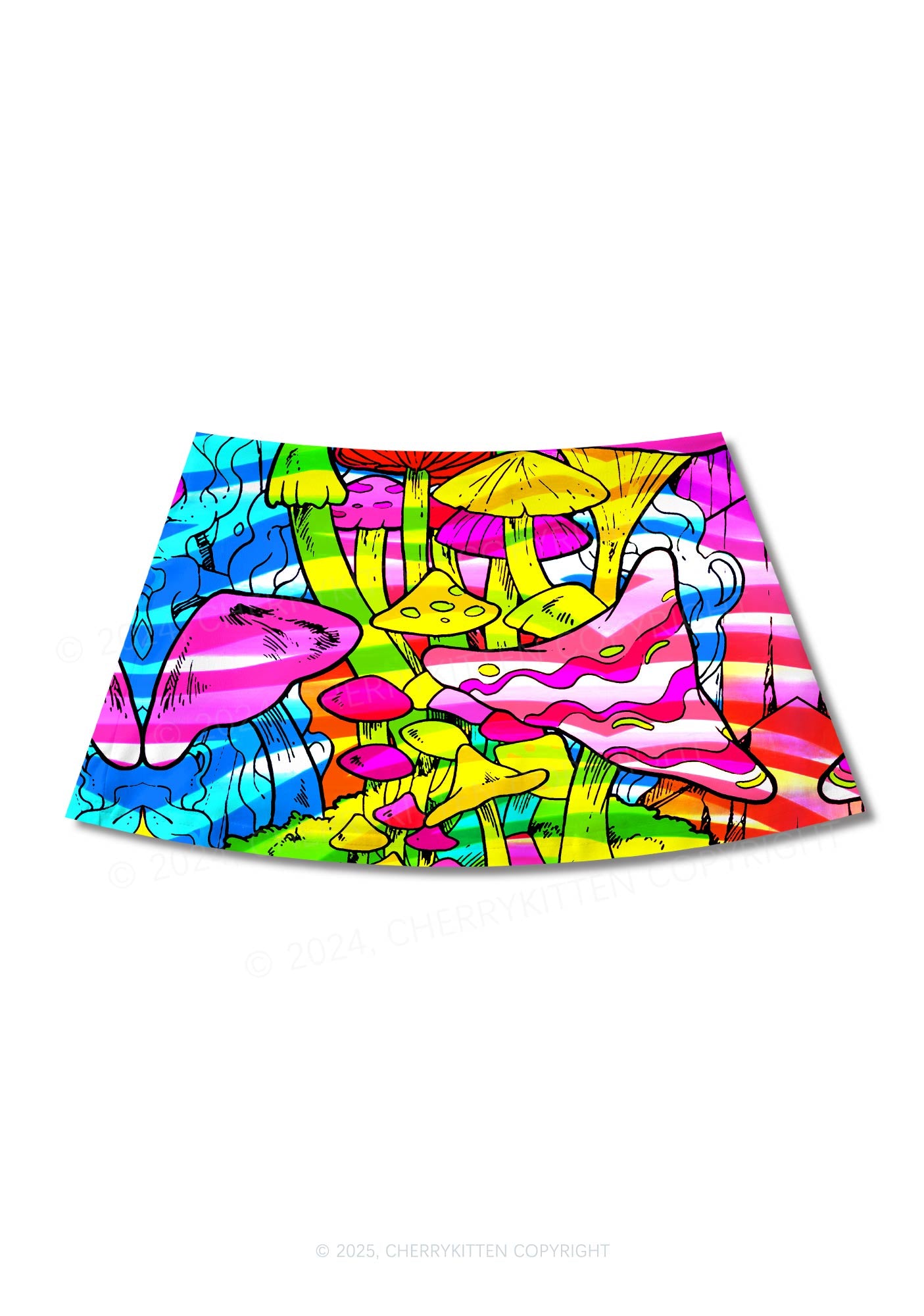 Trippy Colorful Mushrooms Y2K Print Mini Skirt Cherrykitten