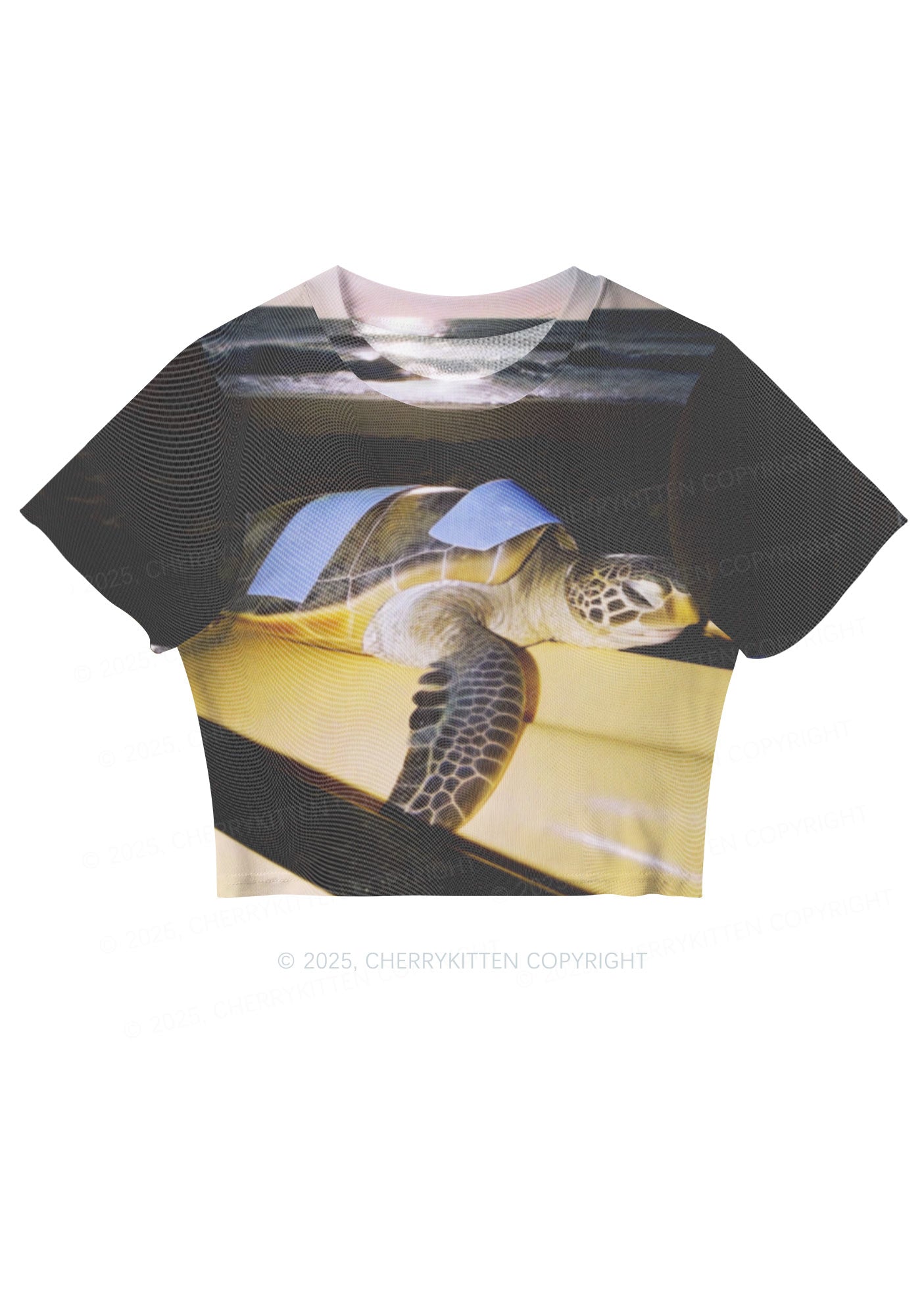 Turtle On Surfboard Y2K Mesh Crop Top Cherrykitten