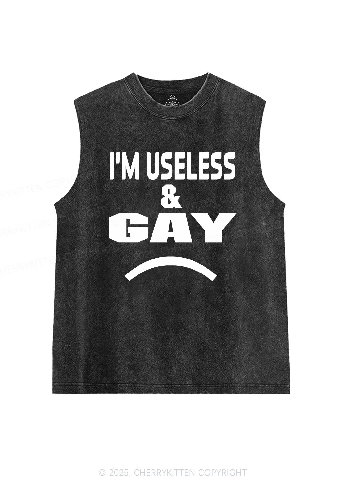 Useless Gay Pride Y2K Washed Muscle Tank Cherrykitten
