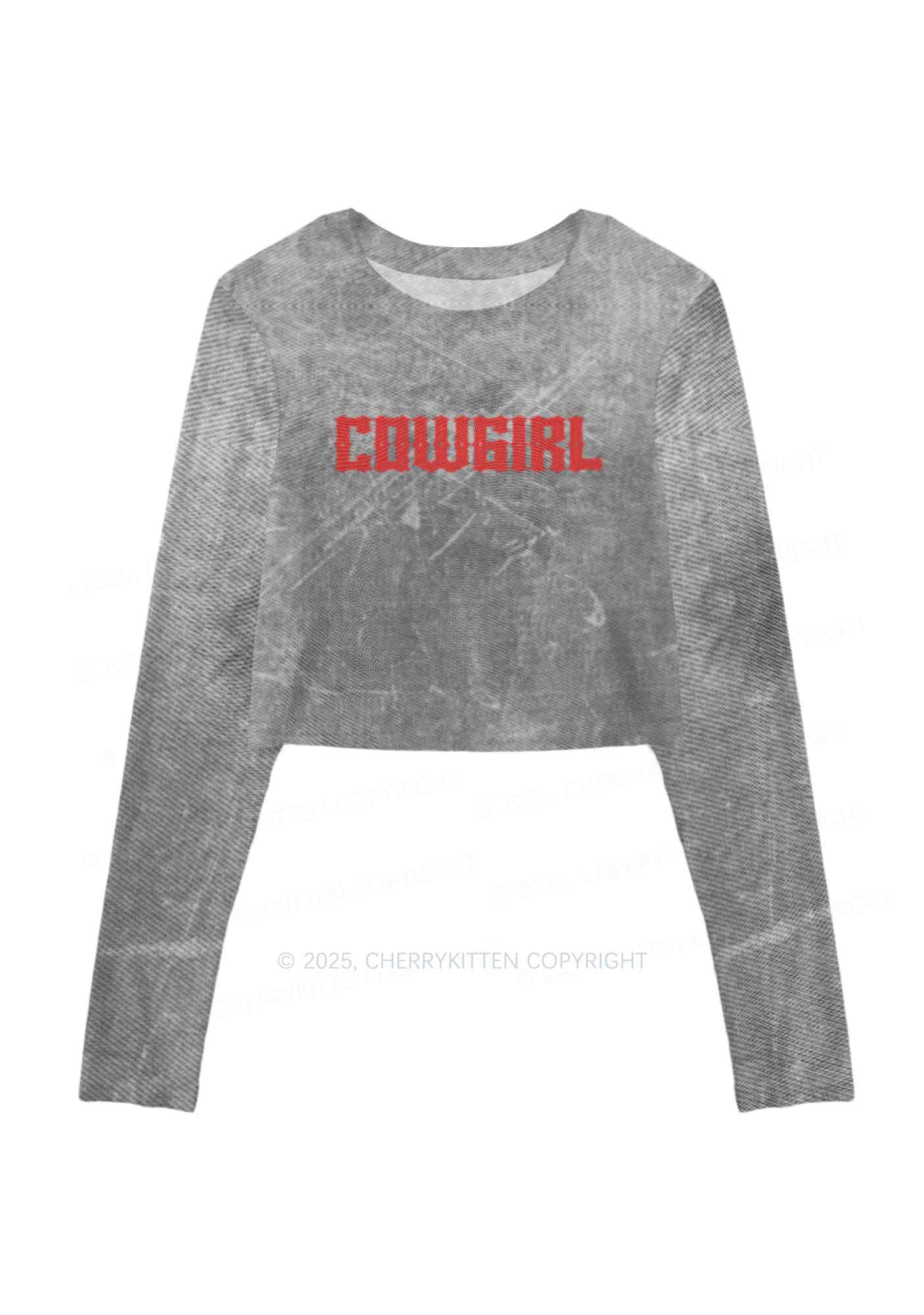 Vintage Cowgirl Y2K Mesh Long Sleeve Crop Top Cherrykitten