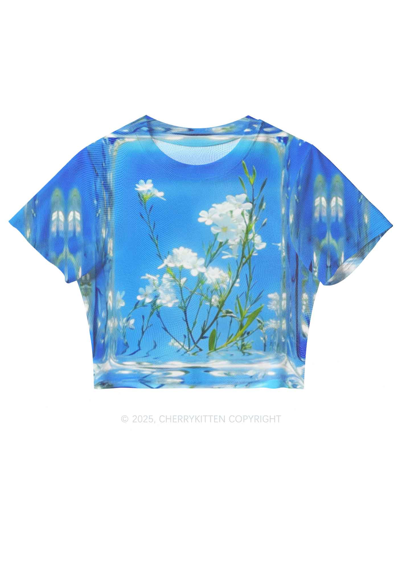 White Flowers Y2K Mesh Crop Top Cherrykitten